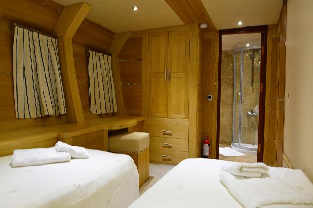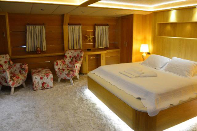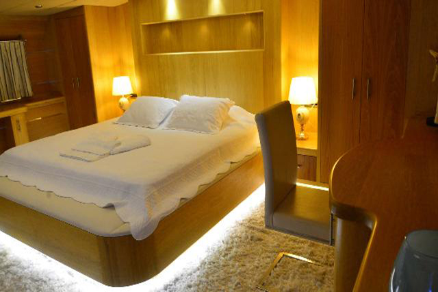| 10 Gäste; 5 Kabinen; 1 Master-, 2 VIP-, 1 Doppel-, 1 Zweibettkabine mit Dusche und WC |