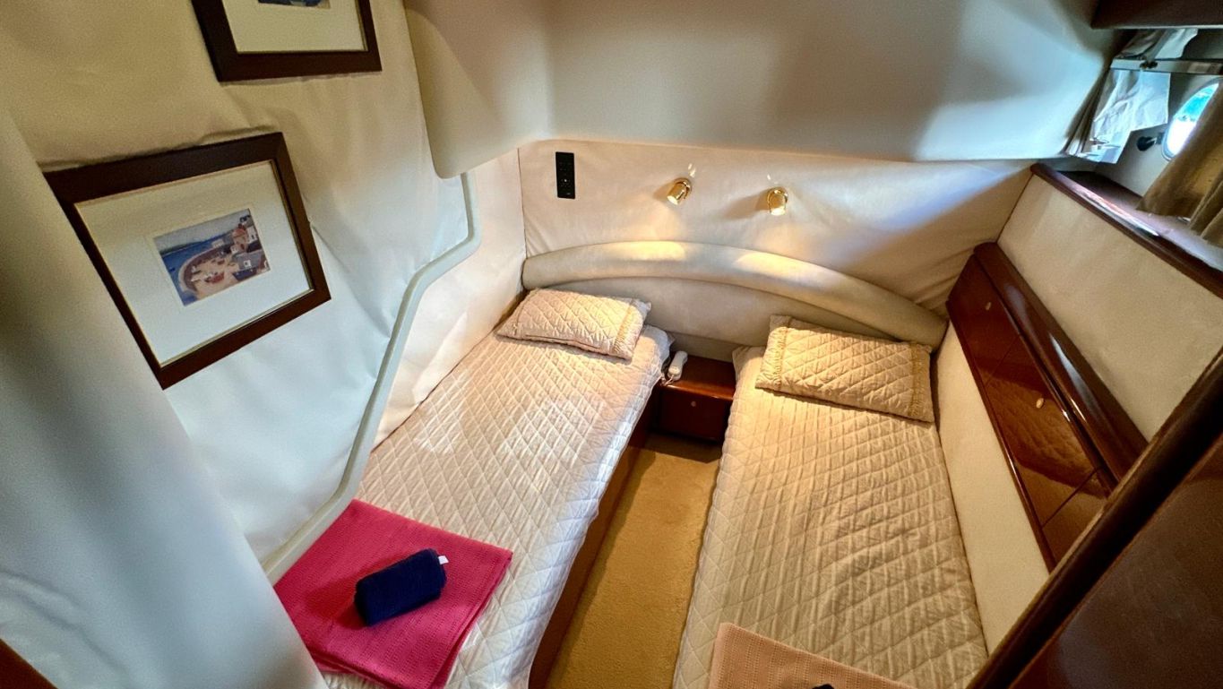 | Bis zu 4 Gäste; 3 Kabinen. Alle Kabinen sind ausgestattet mit Bad, WC und Klimaanlage. Separate Crewkabinen. |