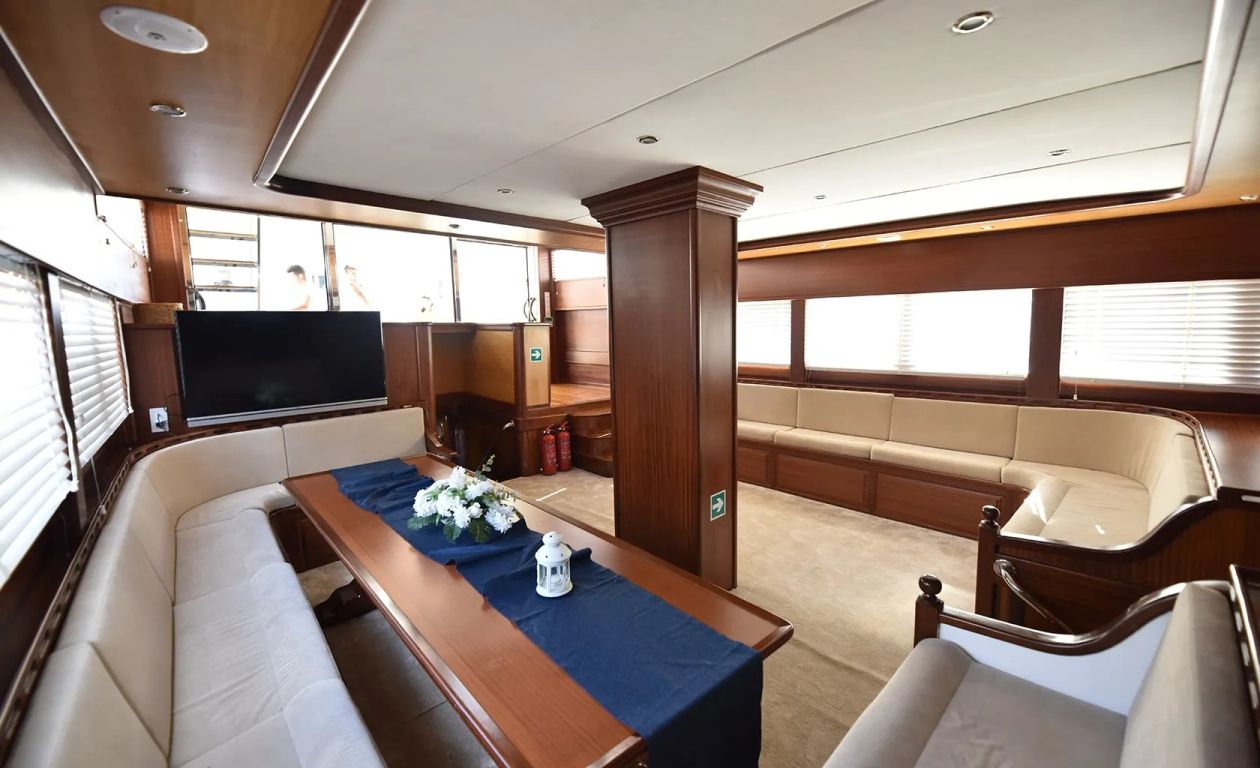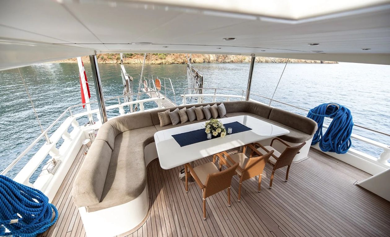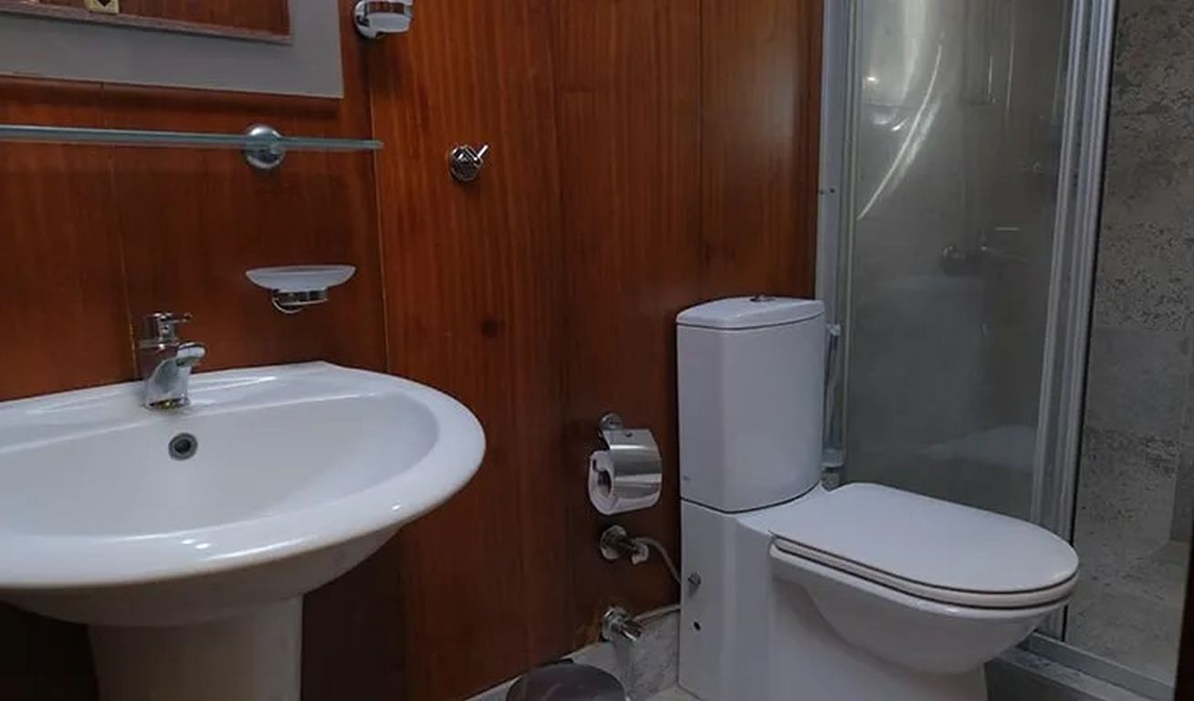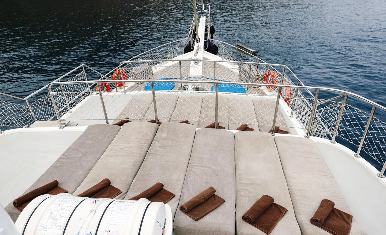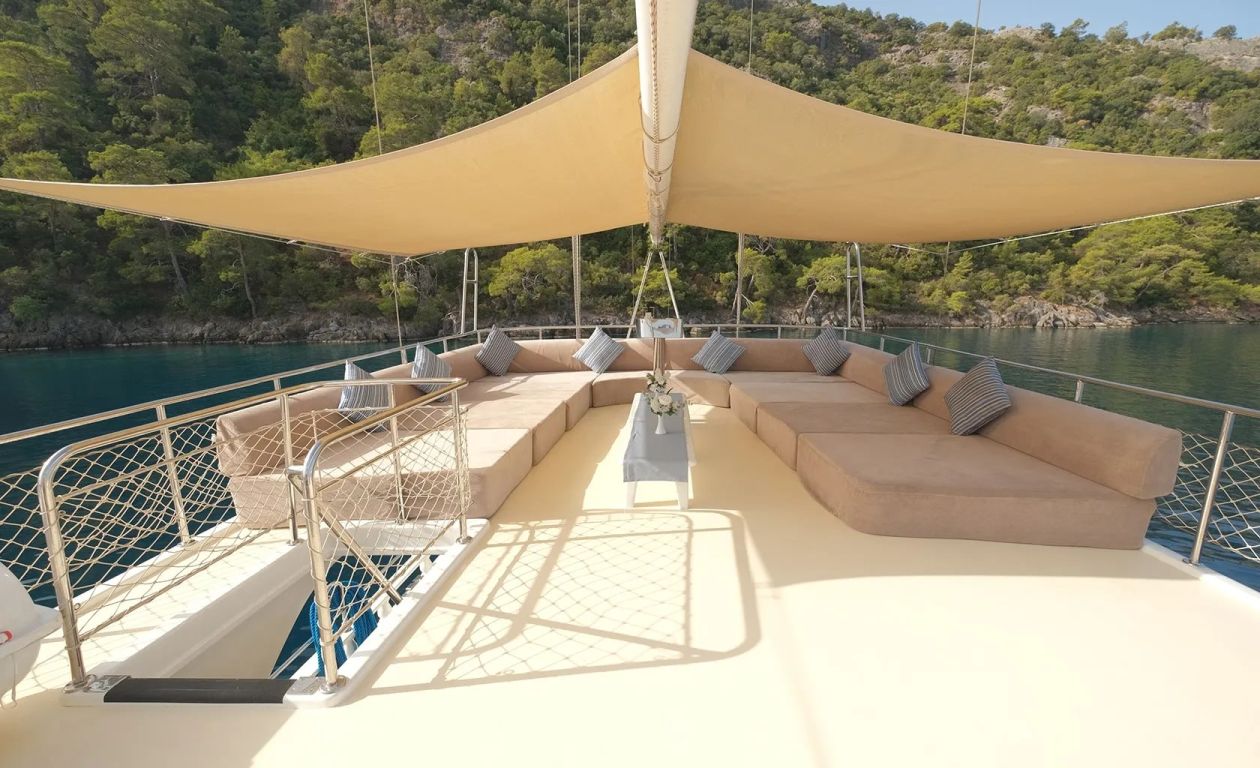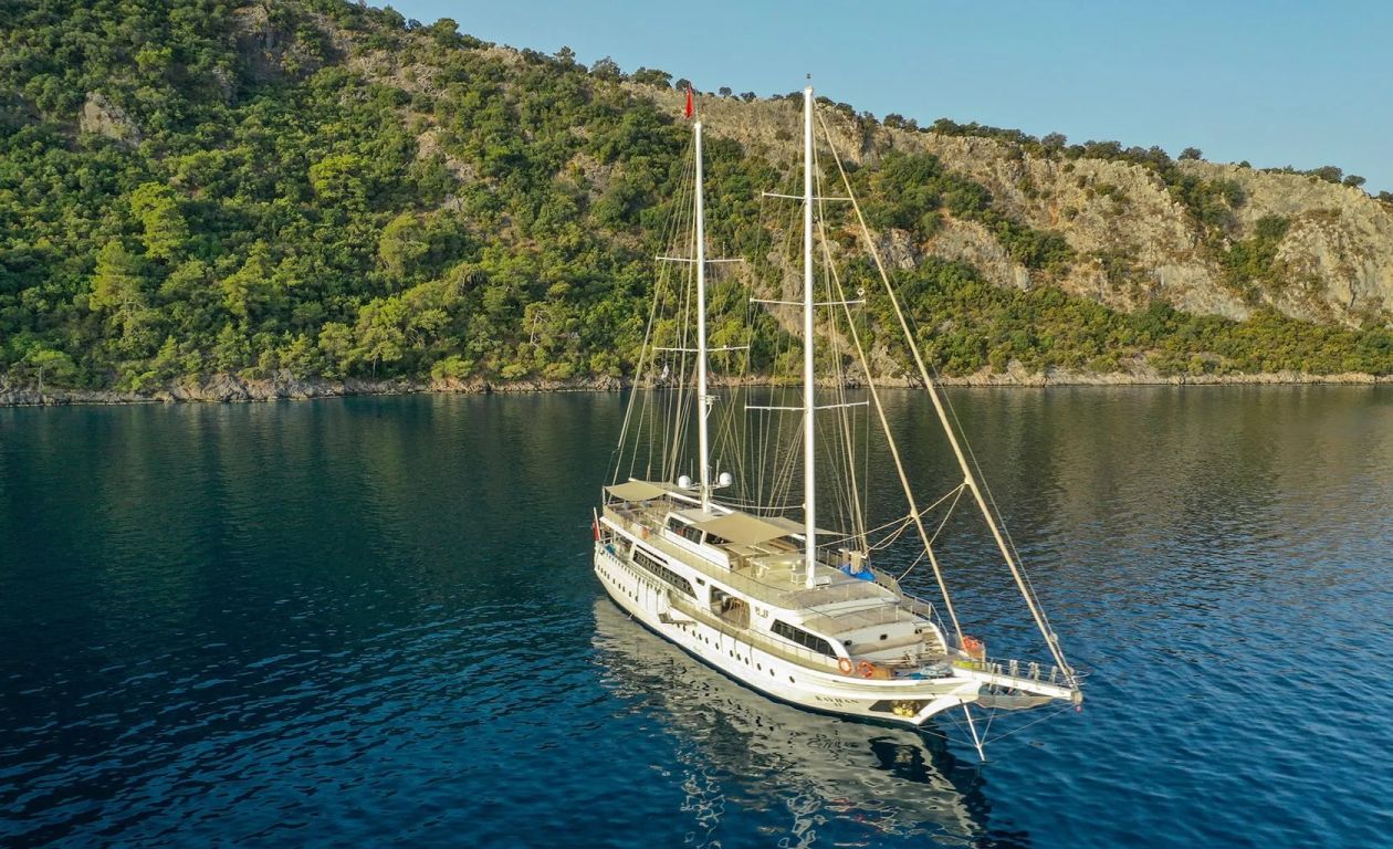 | Die Gulet Kayhan 11 ist eine 34 Meter lange Ketch, gebaut 2002 und 2017 umfassend renoviert. Sie verfügt über 10 Kabinen – sechs Doppel- und vier Zweibettkabinen – mit einer Gesamtkapazität von 20 Gästen. Jede Kabine ist mit Klimaanlage, Bad und Dusche ausgestattet. Die Klimaanlage ist acht Stunden täglich verfügbar (erweiterbar gegen Aufpreis). Das Deck ist großzügig gestaltet, mit schattigen Essbereichen, gepolsterten Sitzgelegenheiten und großen Sonnenflächen. Der Salon verfügt über einen Esstisch, eine Bar und gemütliche Sitzbereiche. Zu den Wassersportarten gehören Kanu und Wasserski, weitere Aktivitäten wie Wakeboard, Ringo oder SUP sind gegen Aufpreis erhältlich. Schnorchel- und Angelausrüstung stehen ebenfalls zur Verfügung. Angetrieben von zwei 450 PS Iveco-Motoren und zwei 45 kW Onan-Generatoren, erreicht sie eine Geschwindigkeit von 11 Knoten. Die Kayhan 11 ist eine hervorragende Wahl für große Gruppen, die eine elegante und serviceorientierte Blaue Reise suchen. |