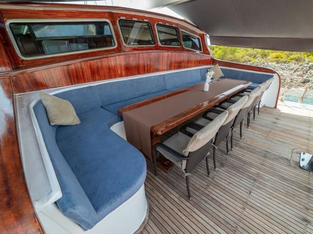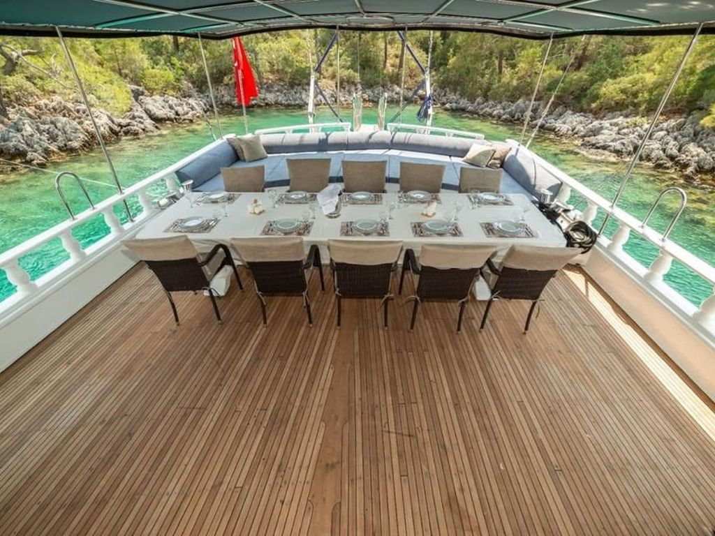 | Die Gulet Milo M ist 36 Meter lang, wurde ursprünglich 2002 gebaut und 2024 komplett renoviert. Sie verfügt über 10 Kabinen – sechs Doppel-, zwei Dreibett- und zwei Zweibettkabinen – und bietet Platz für bis zu 20 Gäste. Jede Kabine ist mit einem privaten Bad und Klimaanlage ausgestattet, nutzbar für sechs Stunden täglich. Mit einer Breite von 7,5 Metern bietet sie reichlich Platz auf den Decks, die mit schattigen Essbereichen, gepolsterten Sitzgelegenheiten und weiten Sonnenflächen ausgestattet sind. Im Inneren verfügt der Salon über eine Lounge und einen Essbereich. Das Wassersportpaket umfasst zwei Beiboote (9,9 PS und 50 PS), SUP-Board, Kanu, Schnorchel- und Angelausrüstung. Angetrieben wird sie von zwei 330 PS Cummins-Motoren und einem 25 kVA Generator, mit einer Reisegeschwindigkeit von 8 Knoten. Die Milo M ist ideal für große Gruppen, die Komfort und Abenteuer kombinieren möchten. |