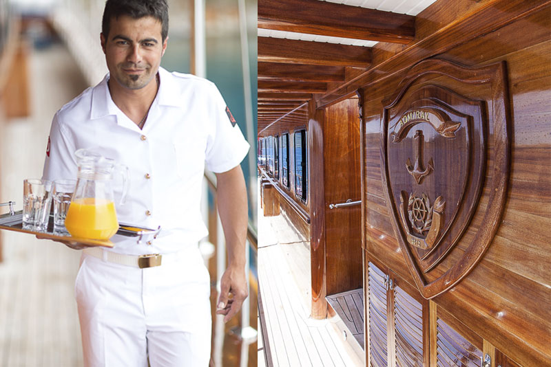 | Die Gulet Admiral ist 47 Meter lang, wurde 2013 gebaut und 2024 renoviert. Sie verfügt über 16 Kabinen – zwei Master-, acht Doppel-, vier Dreibett- und zwei Zweibettkabinen – und bietet Platz für bis zu 36 Gäste. Jede Kabine hat ein eigenes Bad, Klimaanlage ist 18 Stunden pro Tag verfügbar. Mit einer Breite von 9,4 Metern bietet sie großzügige Außenflächen mit schattigen Essbereichen, gepolsterten Lounges und Sonnenbereichen. Der Salon ist elegant gestaltet und bietet reichlich Platz zum Sitzen und Essen. Zur Wassersportausstattung gehören hochwertige Beiboote von Marken wie Yamaha und Mercury, sowie SUP-Boards, Wasserski, Ringo, Banane, Kanus, Schnorchel- und Angelausrüstung. Angetrieben von zwei 500 PS Cummins-Motoren und 33 + 24 kVA Generatoren, erreicht sie 10 Knoten. Die Admiral ist eine Premium-Wahl für große Gruppen, die Luxus und Unterhaltung kombinieren möchten. |