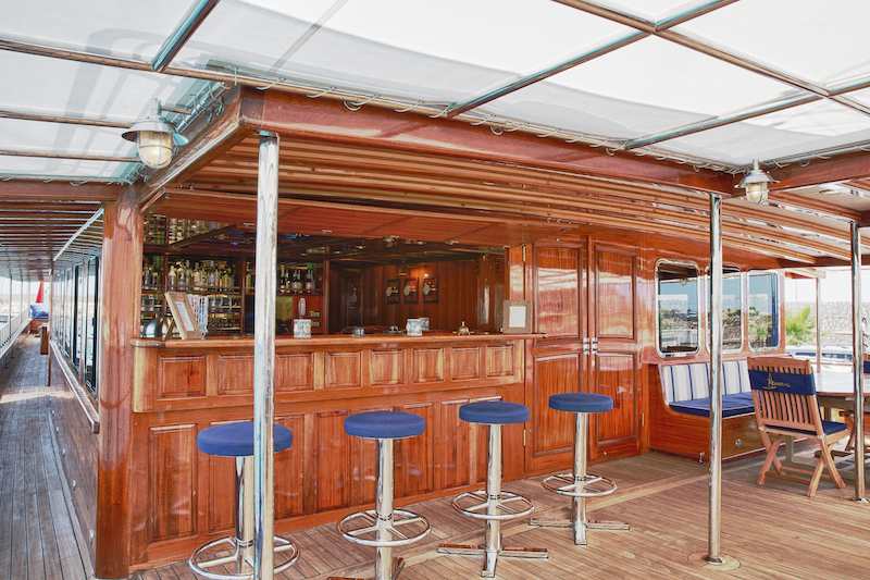 | Bis zu 36 Gäste; 10 Doppelkabinen; 4 Dreibettkabinen, 2 Zweibettkabinen, Salon und alle Kabinen mit Klimaanlage, TV & DVD-Player in der Kabine, Musikanlage in allen Kabinen, Duschkabine und Toiletten im Haushaltsstil in allen Kabinen, separate Mannschaftskabinen |