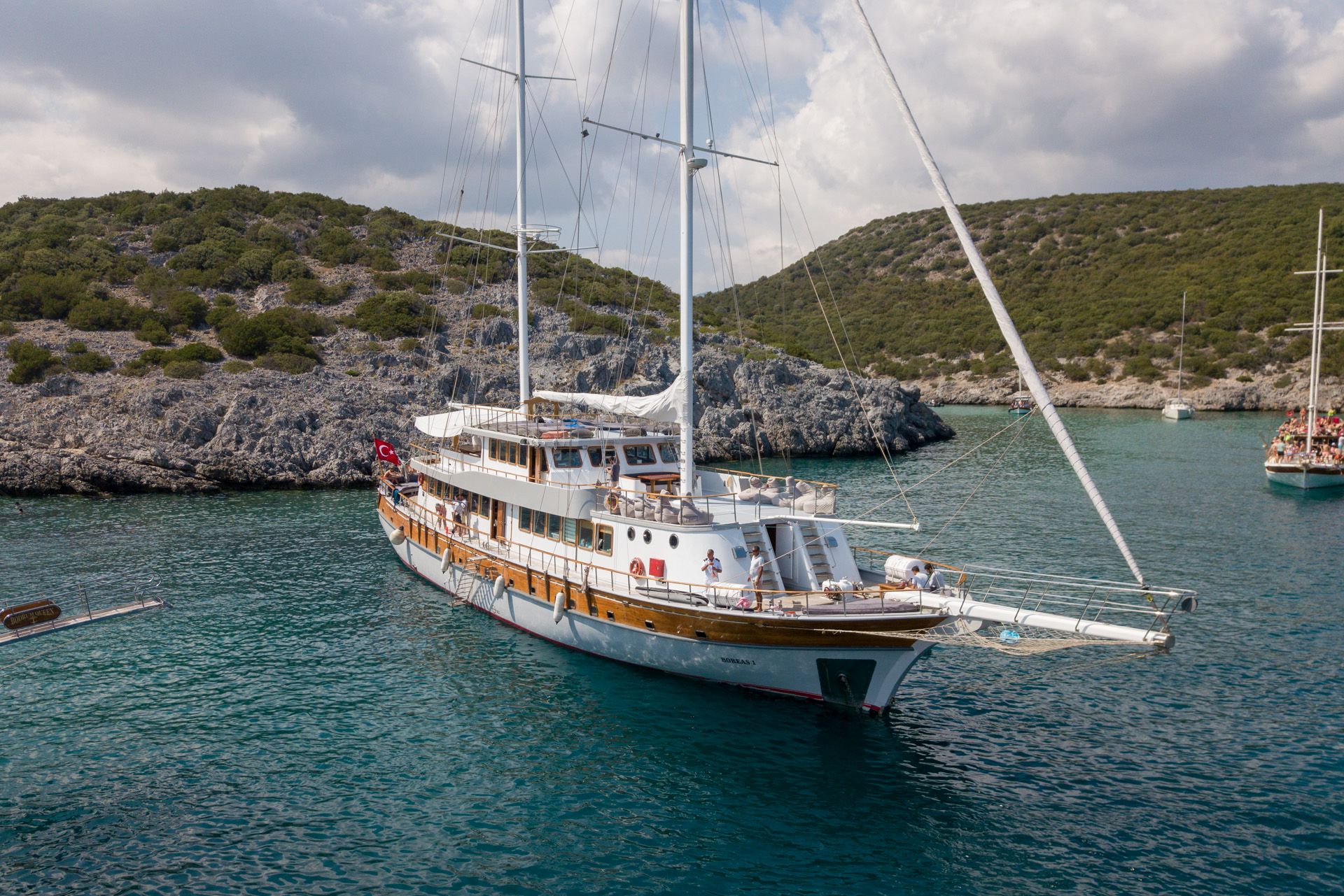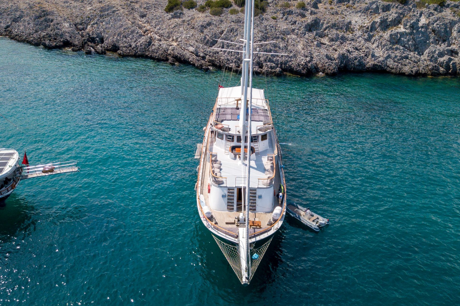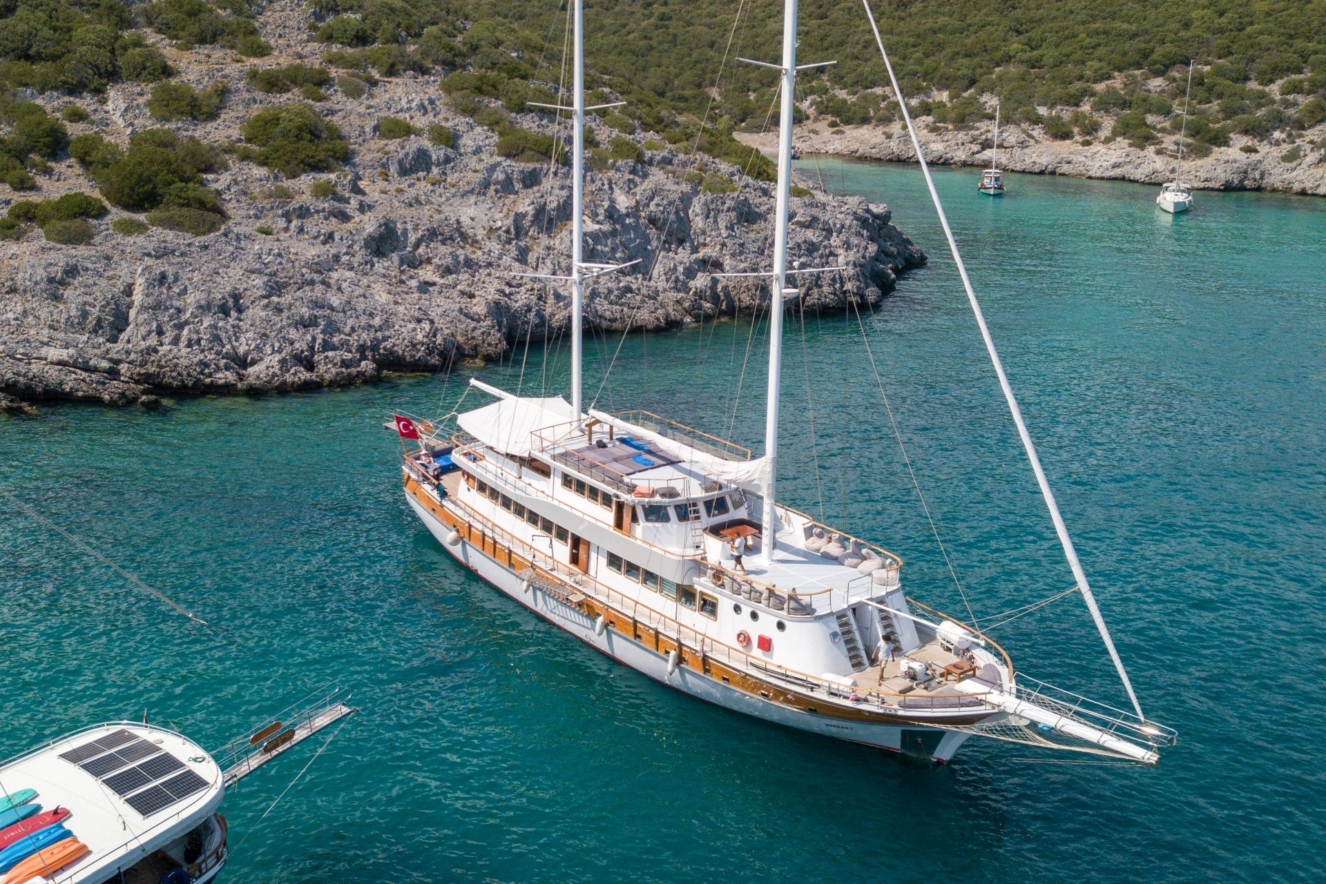 | Die Gulet Boreas ist 43 Meter lang, 2010 gebaut und 2023 renoviert. Sie verfügt über 16 Kabinen – acht Doppel-, sechs Dreibett- und zwei Einzelkabinen – und bietet Platz für bis zu 36 Gäste. Jede Kabine hat ein eigenes Bad, Klimaanlage ist 18 Stunden täglich verfügbar. Mit einer Breite von 10 Metern bietet sie große Außenflächen mit Essbereichen im Schatten, gepolsterten Sitzplätzen und weiten Sonnenbereichen. Der Salon ist geschmackvoll eingerichtet und bietet eine Lounge und einen Essbereich. Zur Wassersportausstattung gehören ein 50 PS Beiboot, SUP-Board, Wasserski, Ringo, Kanu, Schnorchel- und Angelausrüstung. Angetrieben von zwei 450 PS Cummins-Motoren und 115 + 41 + 13 kVA Generatoren, erreicht sie 10 Knoten. Die Boreas ist ideal für große Gruppen, die Komfort und eine unvergessliche Blaue Reise erleben möchten. |
