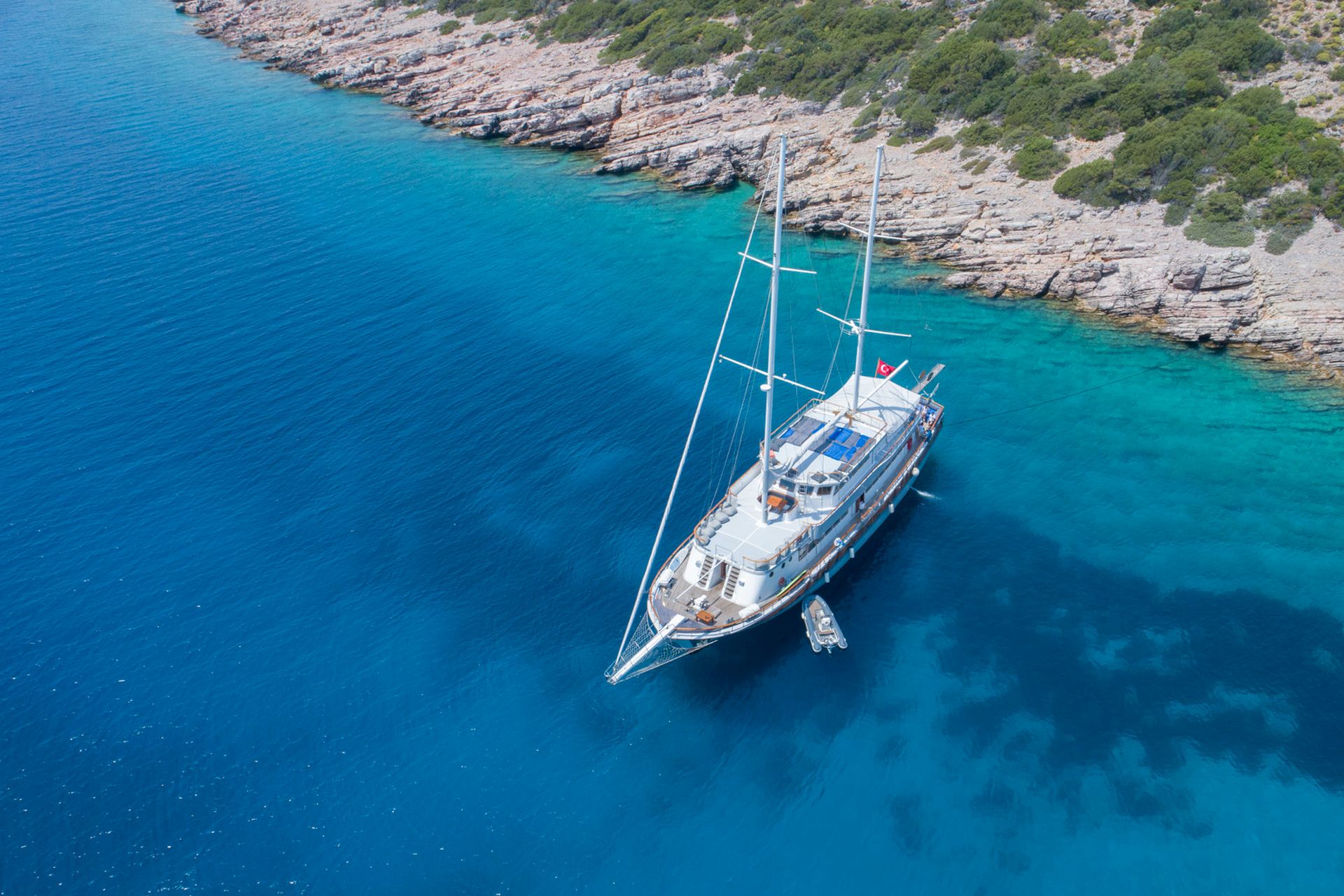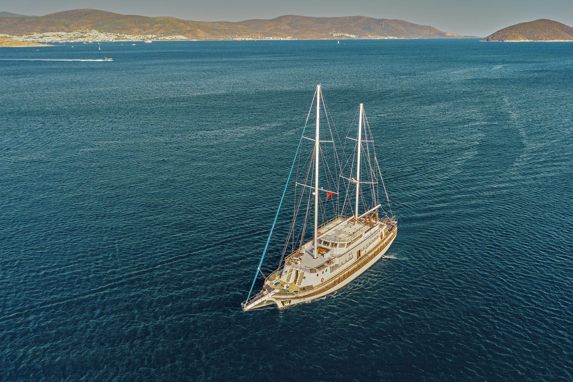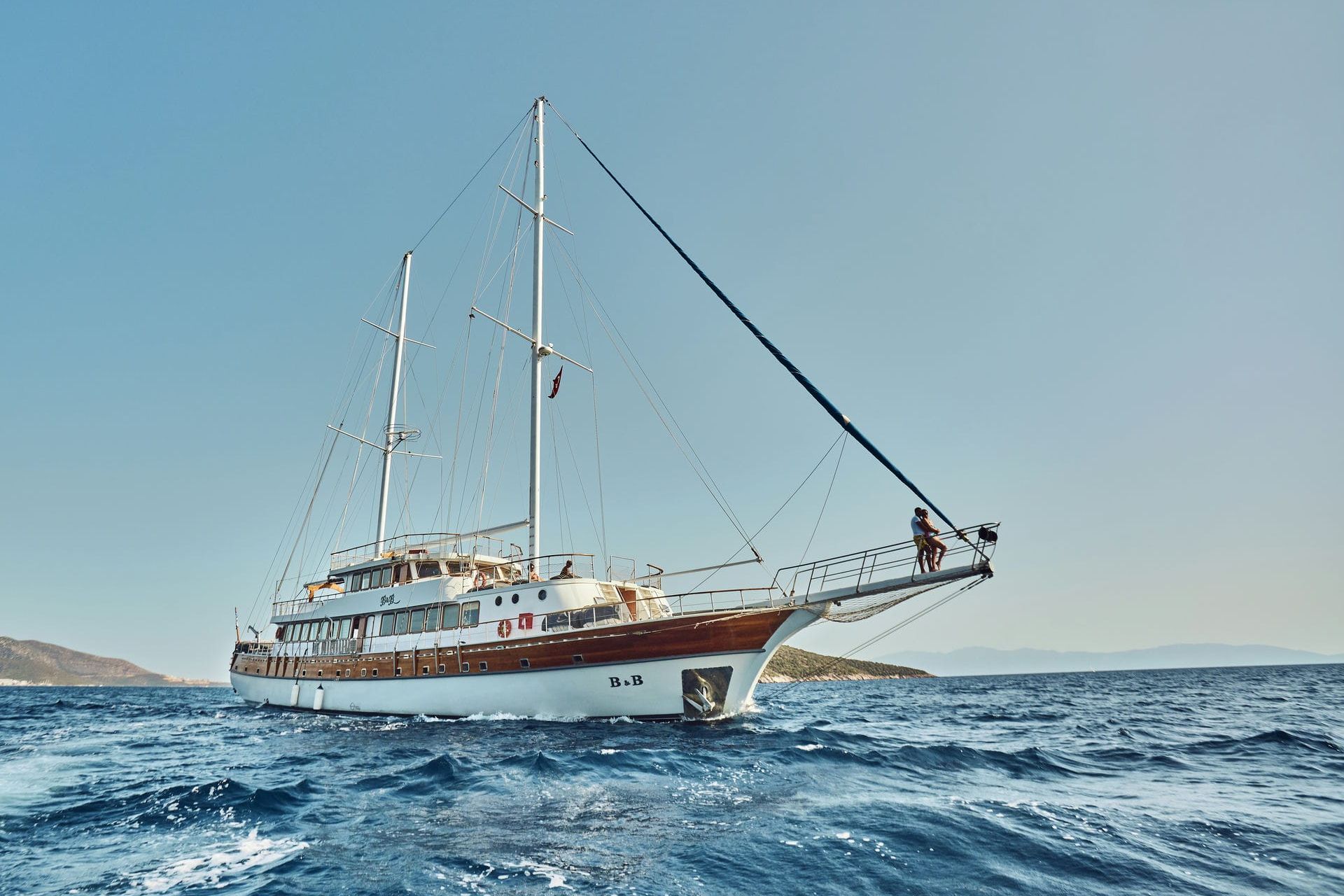 | Die Gulet Boreas ist 43 Meter lang, 2010 gebaut und 2023 renoviert. Sie verfügt über 16 Kabinen – acht Doppel-, sechs Dreibett- und zwei Einzelkabinen – und bietet Platz für bis zu 36 Gäste. Jede Kabine hat ein eigenes Bad, Klimaanlage ist 18 Stunden täglich verfügbar. Mit einer Breite von 10 Metern bietet sie große Außenflächen mit Essbereichen im Schatten, gepolsterten Sitzplätzen und weiten Sonnenbereichen. Der Salon ist geschmackvoll eingerichtet und bietet eine Lounge und einen Essbereich. Zur Wassersportausstattung gehören ein 50 PS Beiboot, SUP-Board, Wasserski, Ringo, Kanu, Schnorchel- und Angelausrüstung. Angetrieben von zwei 450 PS Cummins-Motoren und 115 + 41 + 13 kVA Generatoren, erreicht sie 10 Knoten. Die Boreas ist ideal für große Gruppen, die Komfort und eine unvergessliche Blaue Reise erleben möchten. |