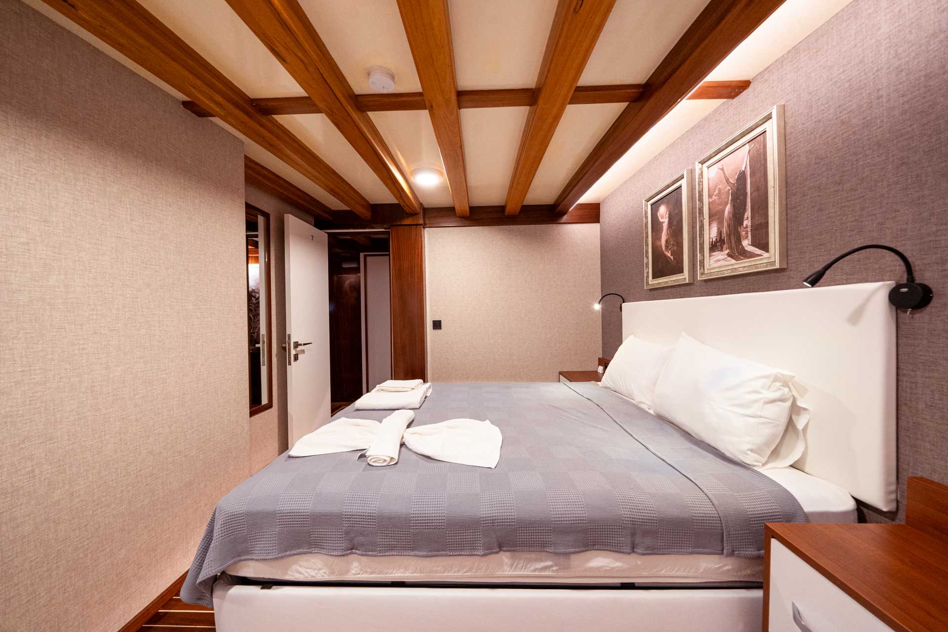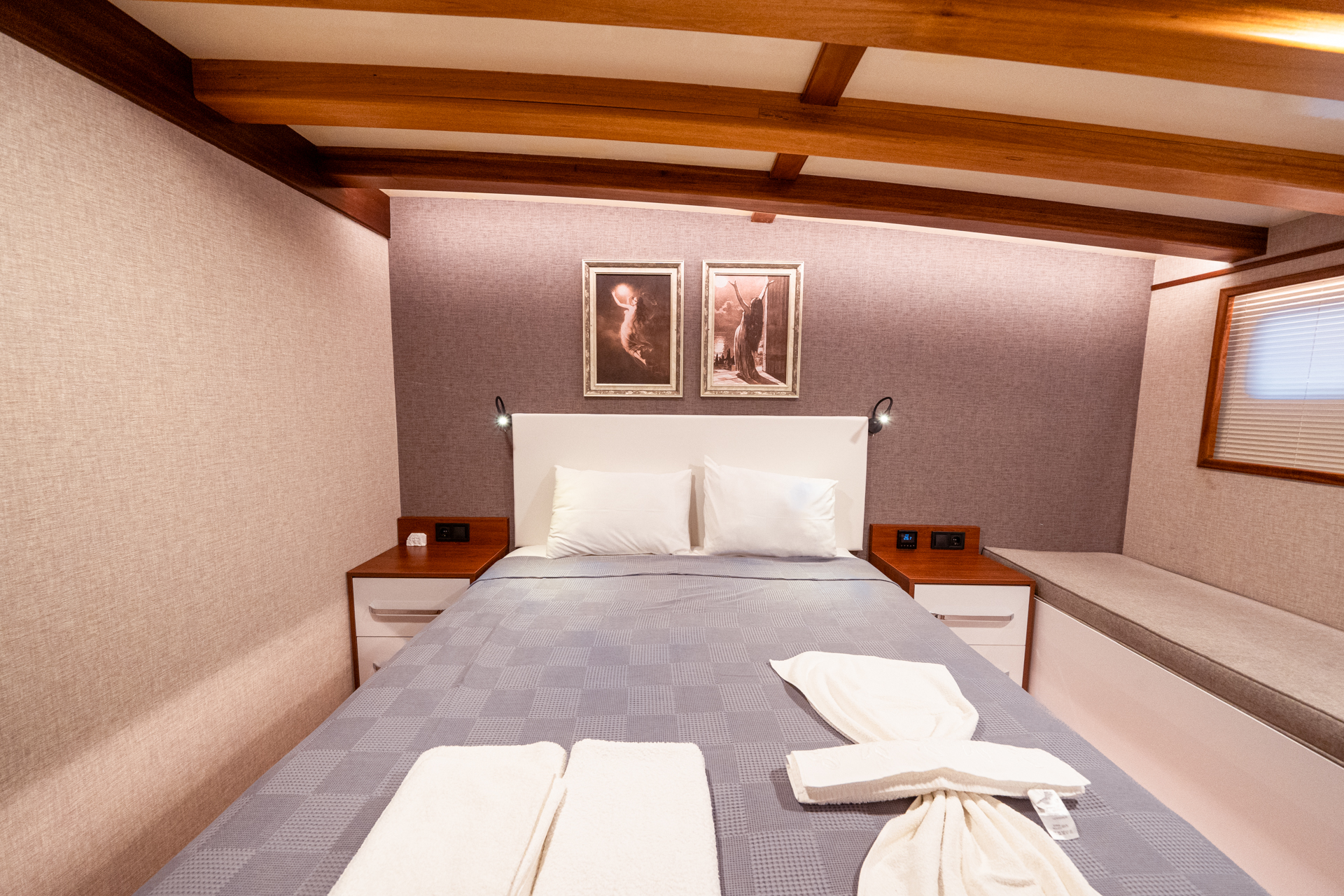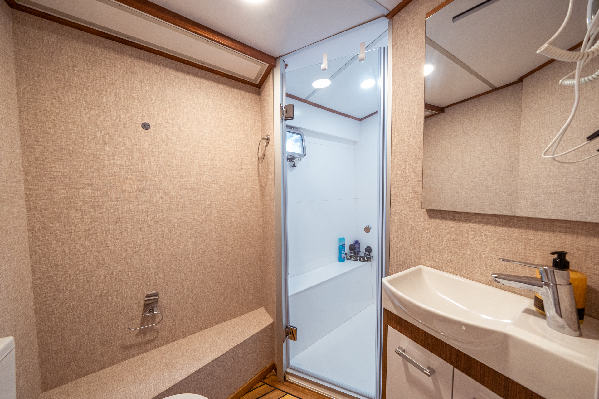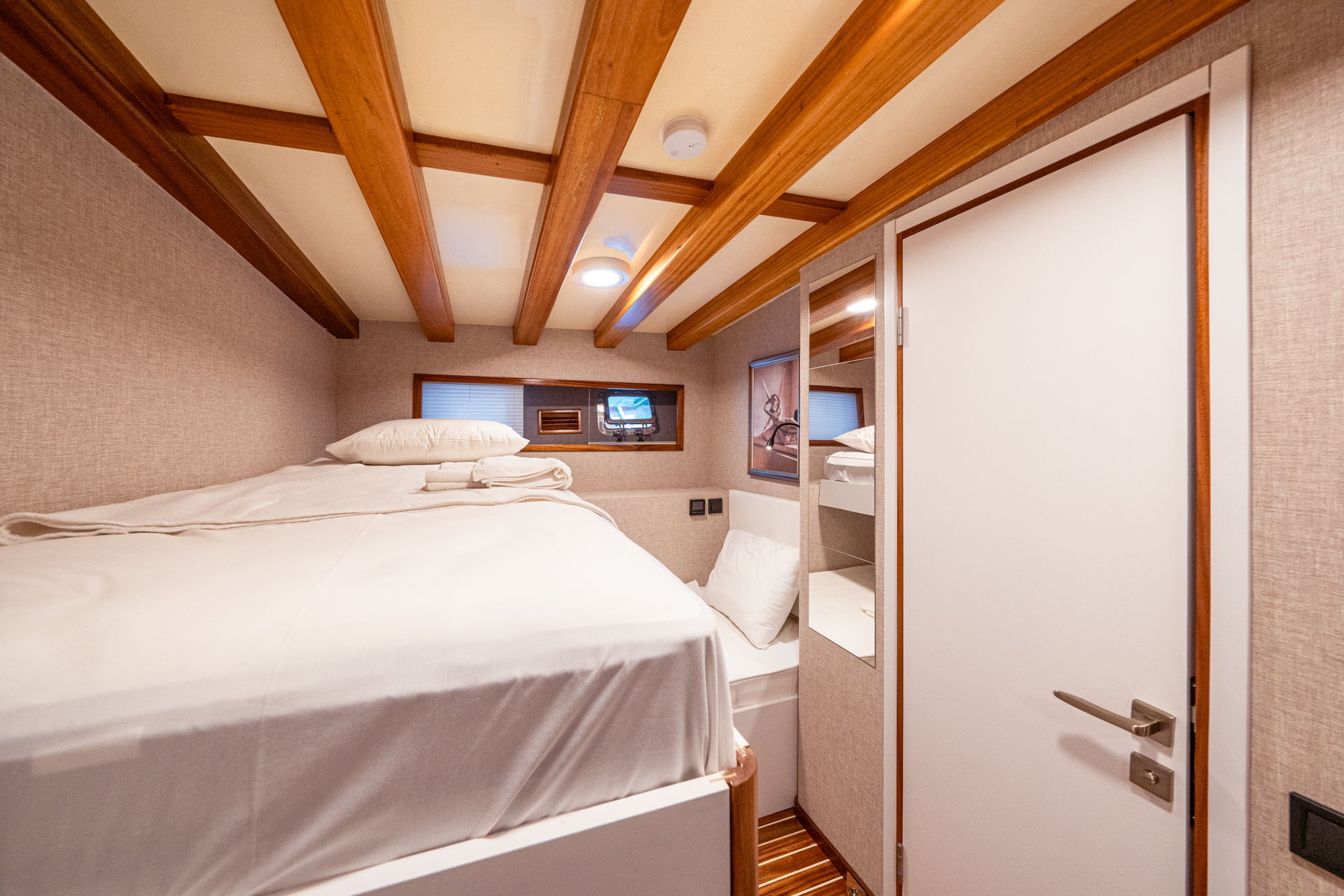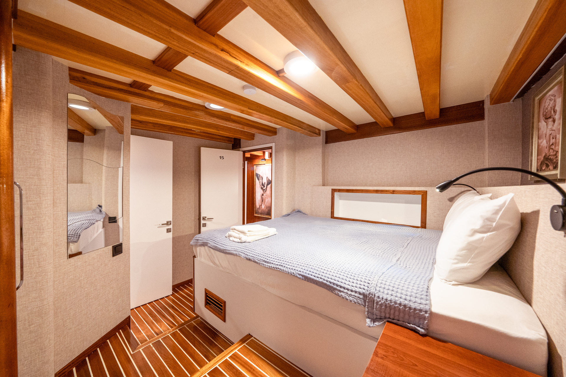 | 16 Kabinen, bis zu 36 Gäste; 4 Master, 8 Twin und 4 Quad-Bett-Kabinen, Salon und alle Kabinen mit Klimaanlage, Fernseher in allen Kabinen, Duschkabine und Haushaltstoiletten in allen Kabinen, separate Mannschaftskabinen |