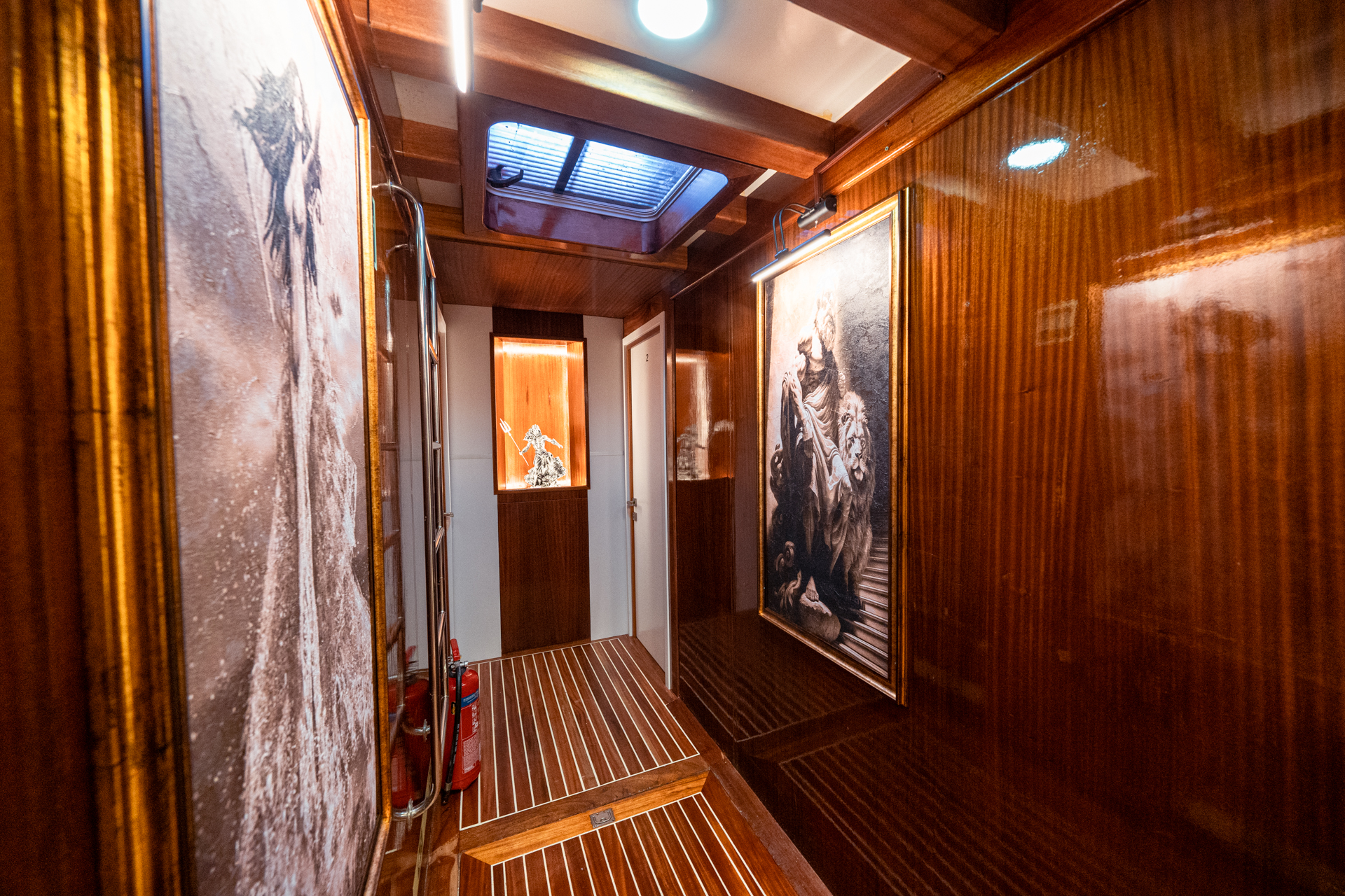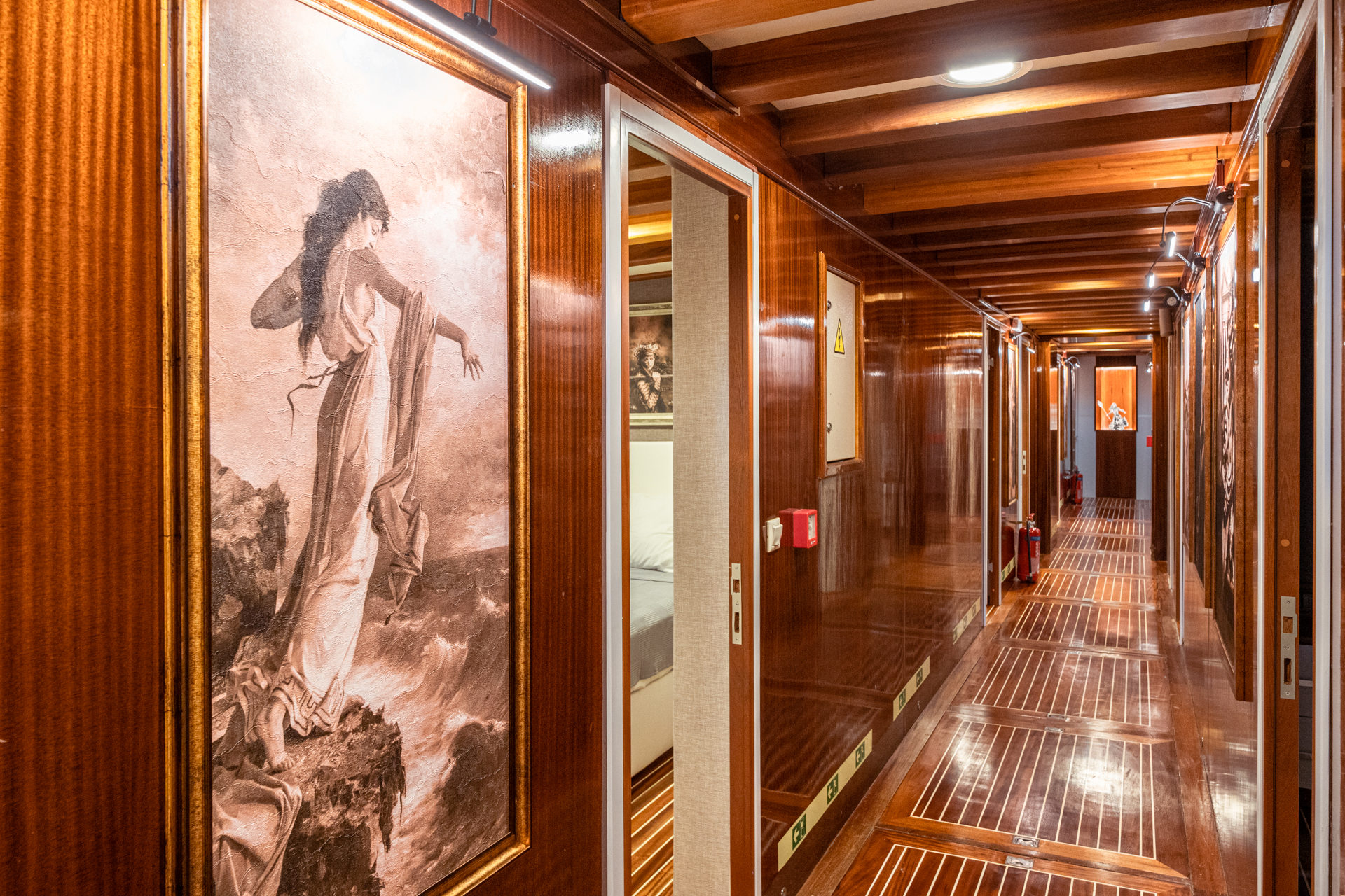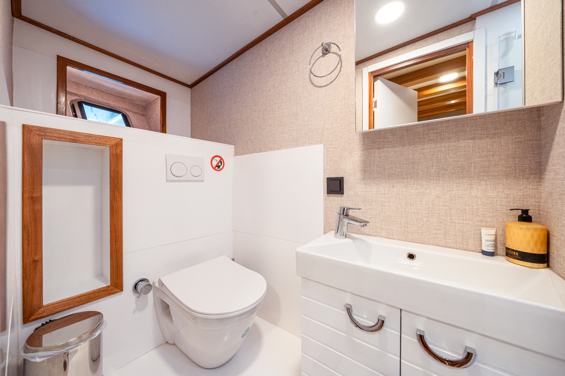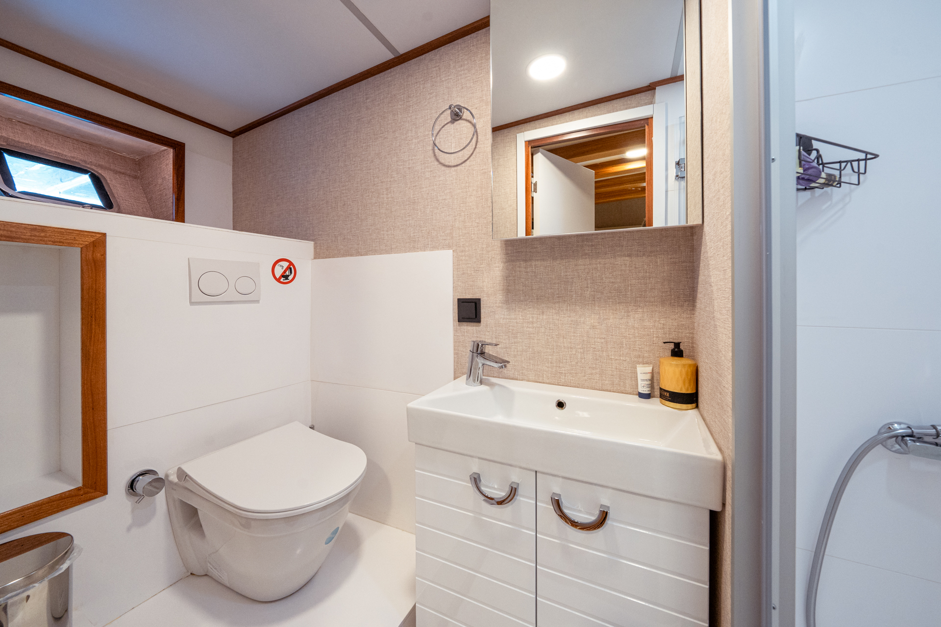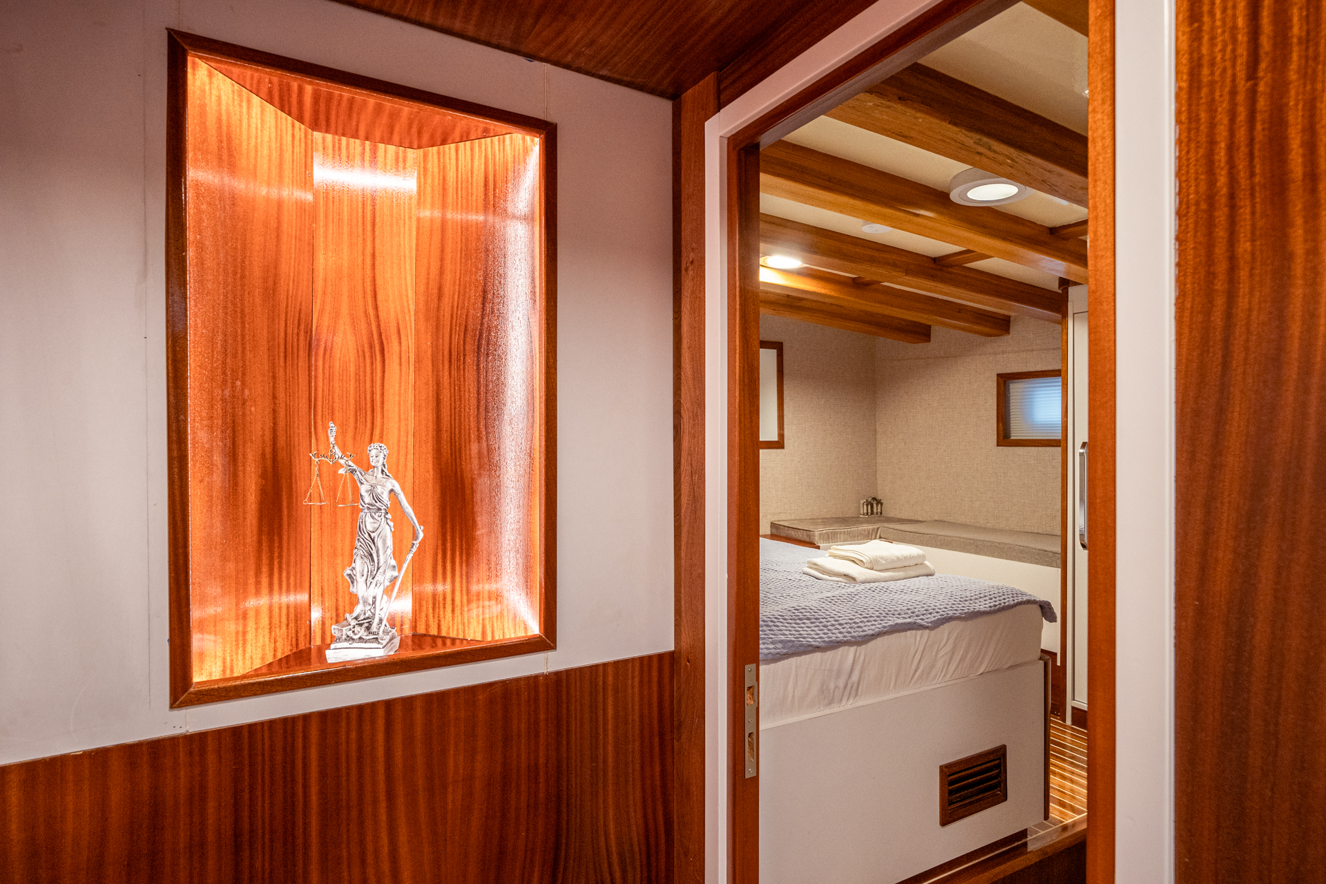 | 16 Kabinen, bis zu 36 Gäste; 4 Master, 8 Twin und 4 Quad-Bett-Kabinen, Salon und alle Kabinen mit Klimaanlage, Fernseher in allen Kabinen, Duschkabine und Haushaltstoiletten in allen Kabinen, separate Mannschaftskabinen |