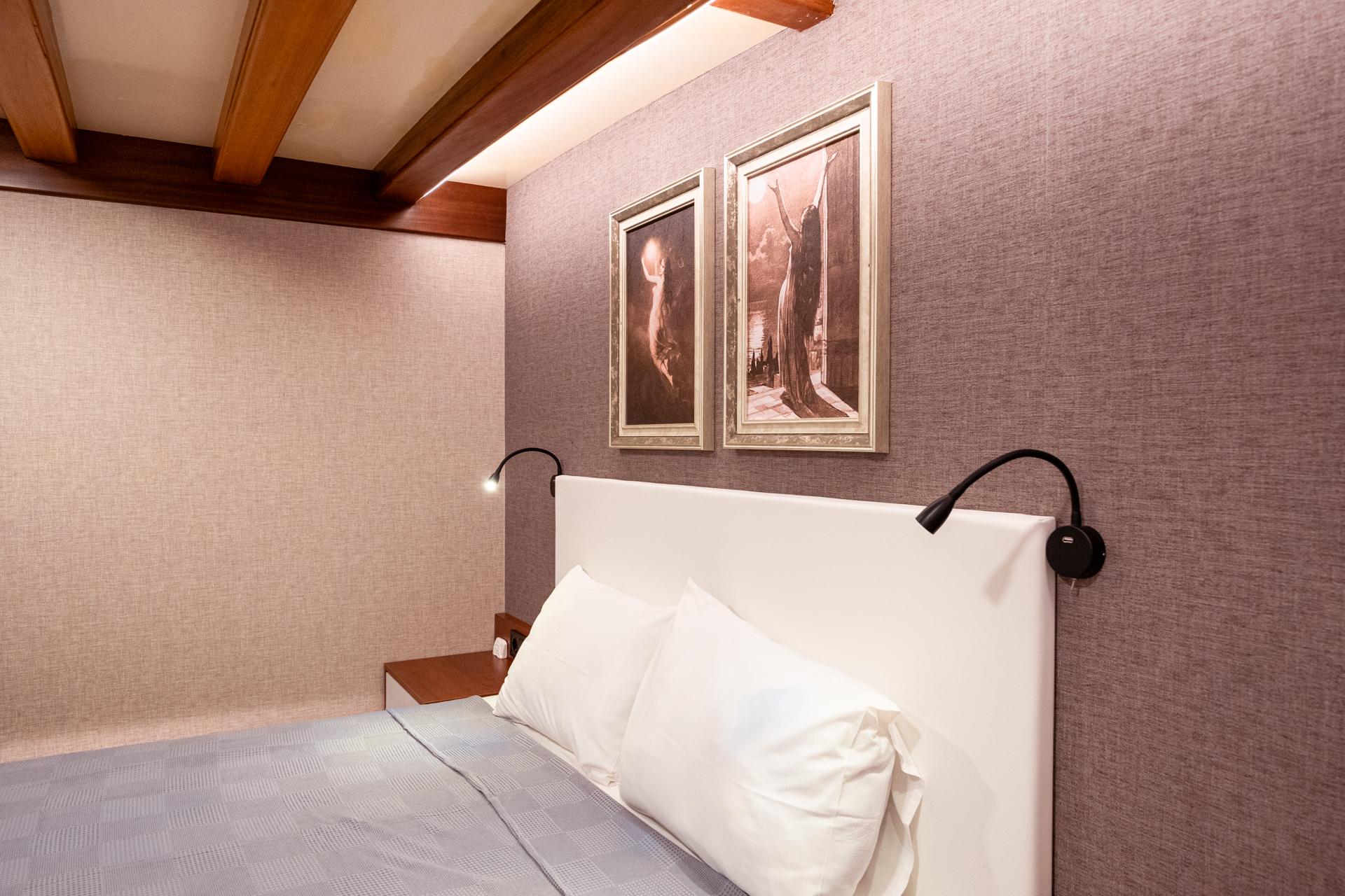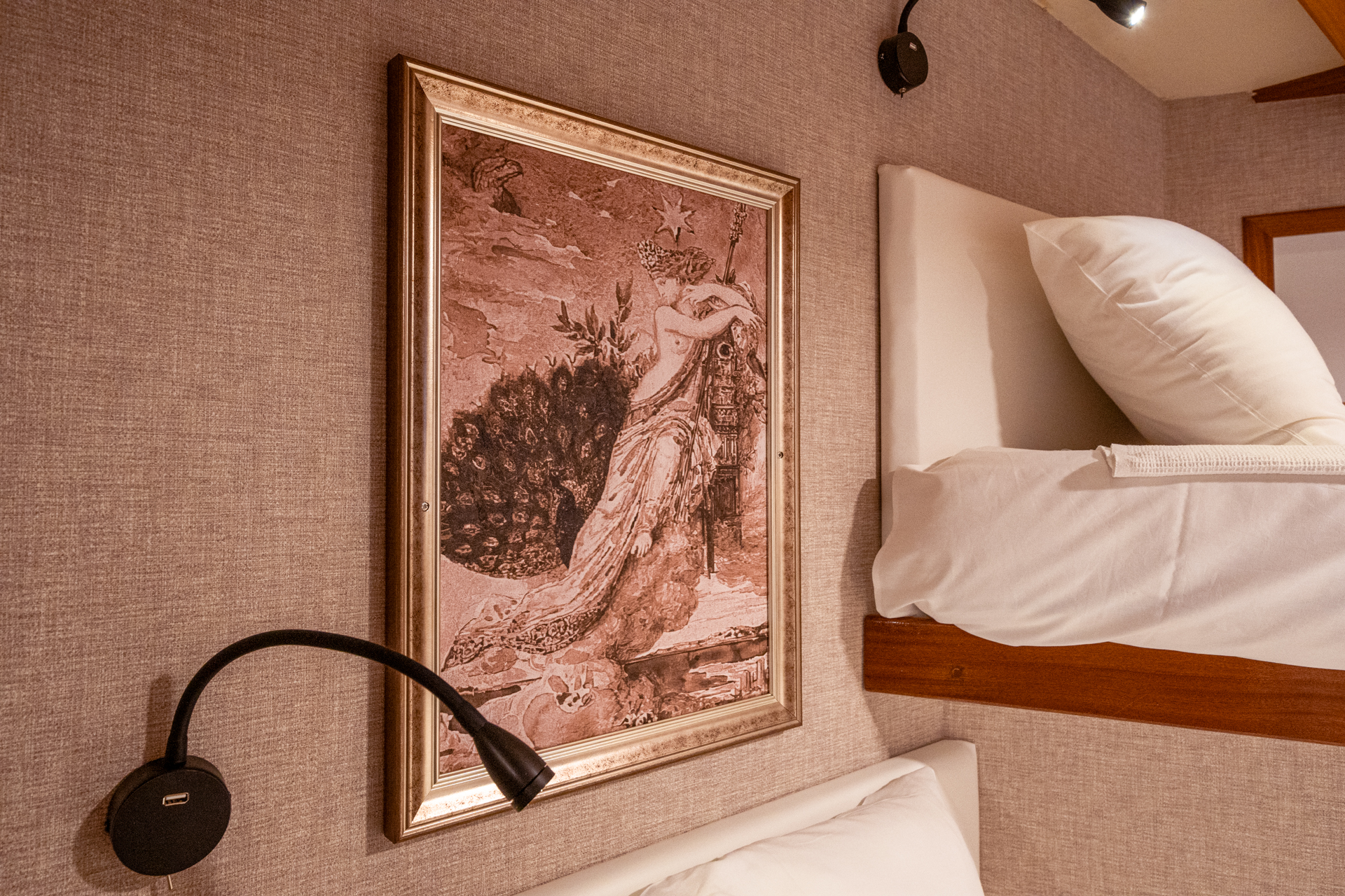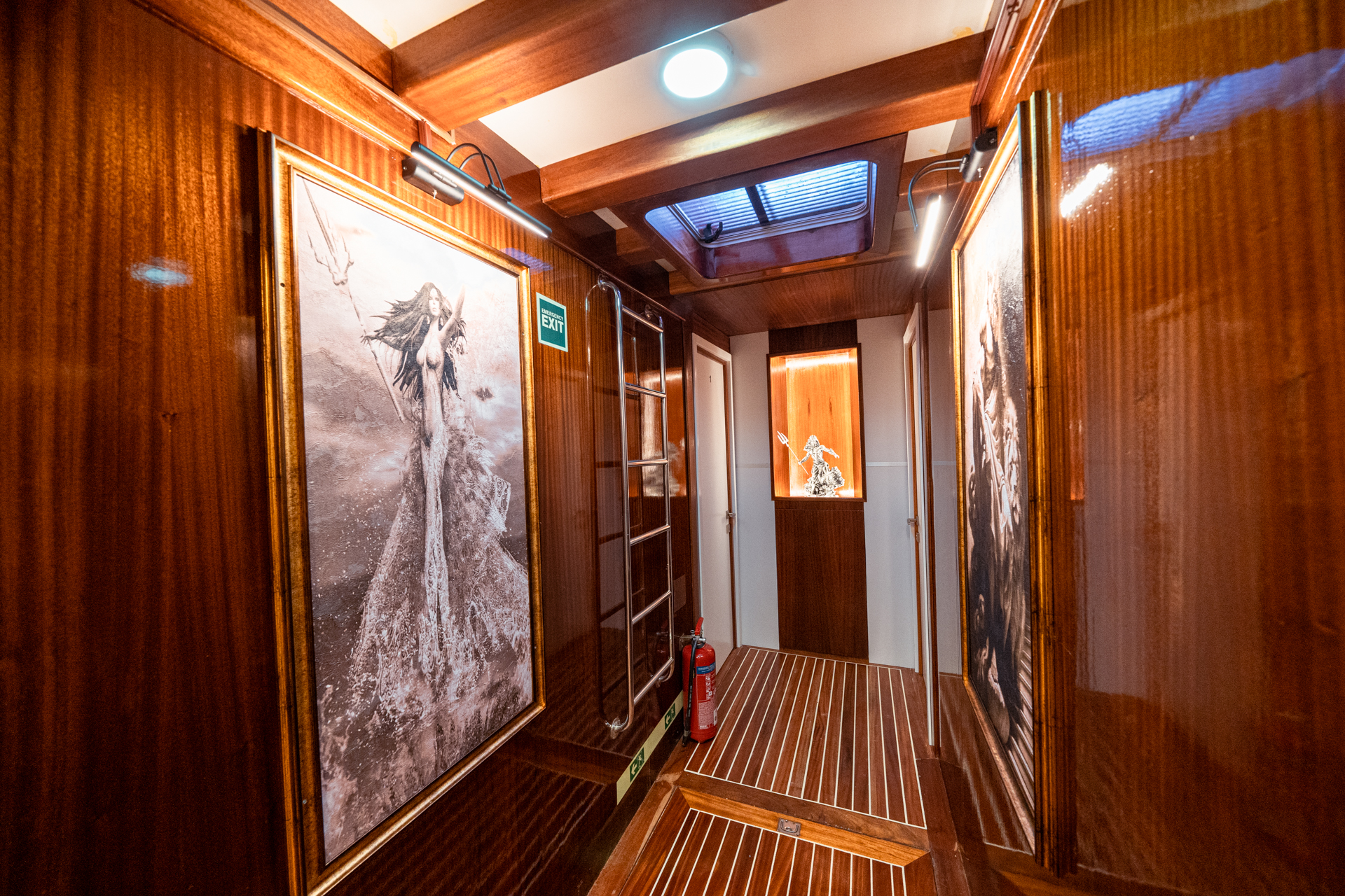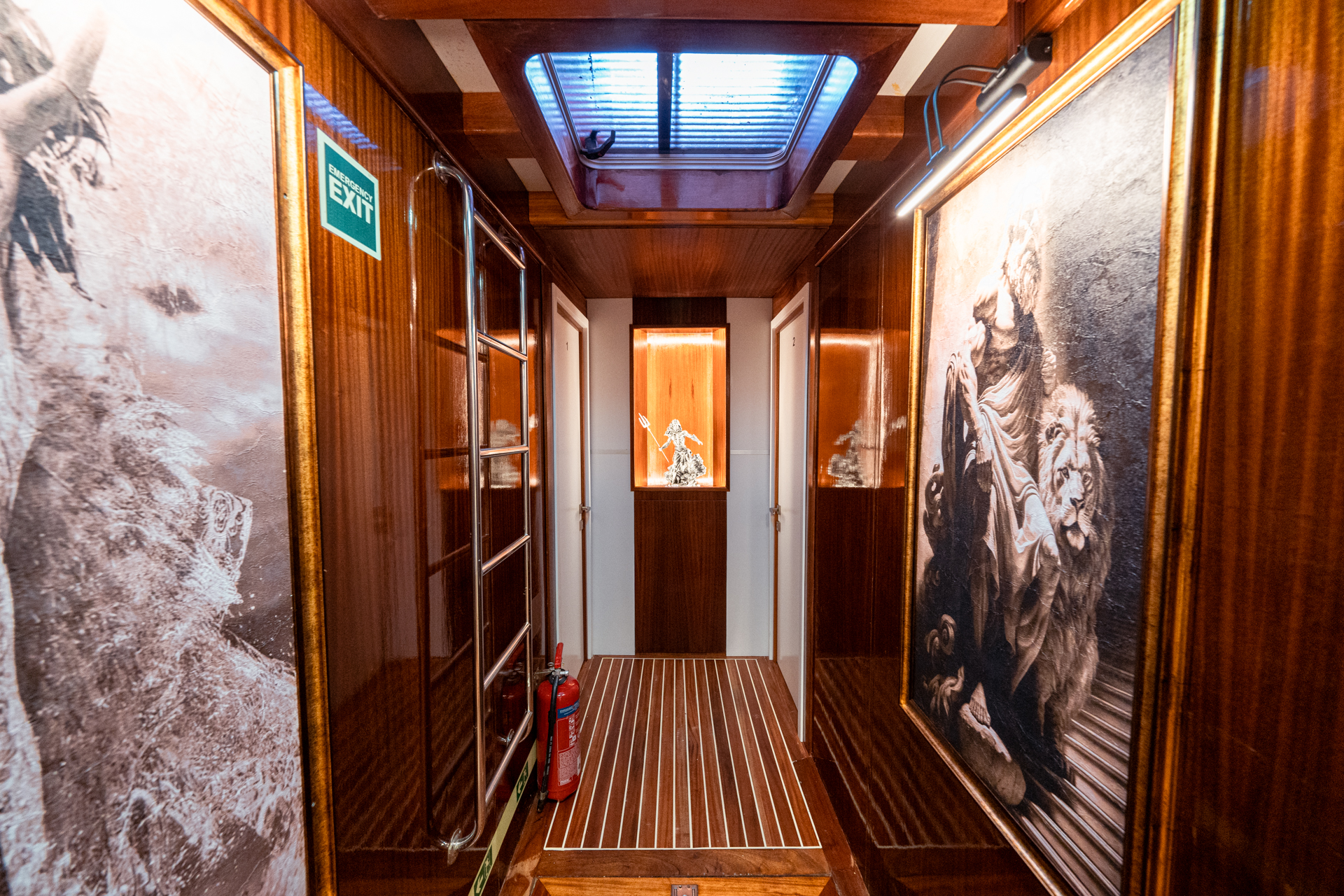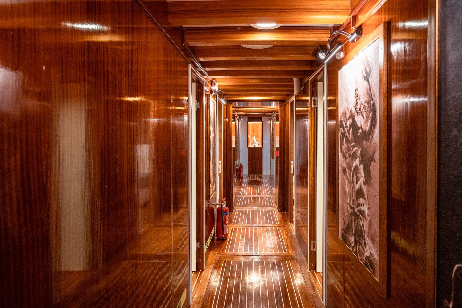 | 16 Kabinen, bis zu 36 Gäste; 4 Master, 8 Twin und 4 Quad-Bett-Kabinen, Salon und alle Kabinen mit Klimaanlage, Fernseher in allen Kabinen, Duschkabine und Haushaltstoiletten in allen Kabinen, separate Mannschaftskabinen |