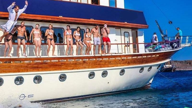 Die Gulet VIP Love Boat ist eine prächtige Yacht, die speziell für ihre Gäste entworfen wurde. Sie verfügt über 16 Luxuskabinen, die bis zu 36 Personen in türkischen Gewässern und im Ausland beherbergen können. Ihre 10 Kabinen befinden sich auf dem Unterdeck, 6 ihrer Kabinen befinden sich auf dem Vordeck mit Meerblick. Die Zimmer werden zwischen dem Ober- und dem Unterdeck geteilt, sodass die Zimmer geräumig und komfortabel sind. Mit 8 freundlichen und gastfreundlichen Besatzungsmitgliedern an Bord erleben Sie eine unvergessliche Kreuzfahrt im klaren Blau der Türkei oder auf den griechischen Inseln. Sie bietet Ihnen außerdem eine große Terrasse mit Esstisch, Bar, Schlafzimmer im zweiten Stock und Ruhebereich auf der Terrasse. Sie können Wassersport treiben, schnorcheln, angeln oder lesen. Love Boat ist die größte und neueste Yacht für große Gruppen. Die blaue Familienyacht und die VIP-Geschäftstreffen-Resortyacht Gulet Love Boat erwarten Sie für Ihren privaten Yachtcharterurlaub in der Türkei und auf den griechischen Inseln. |