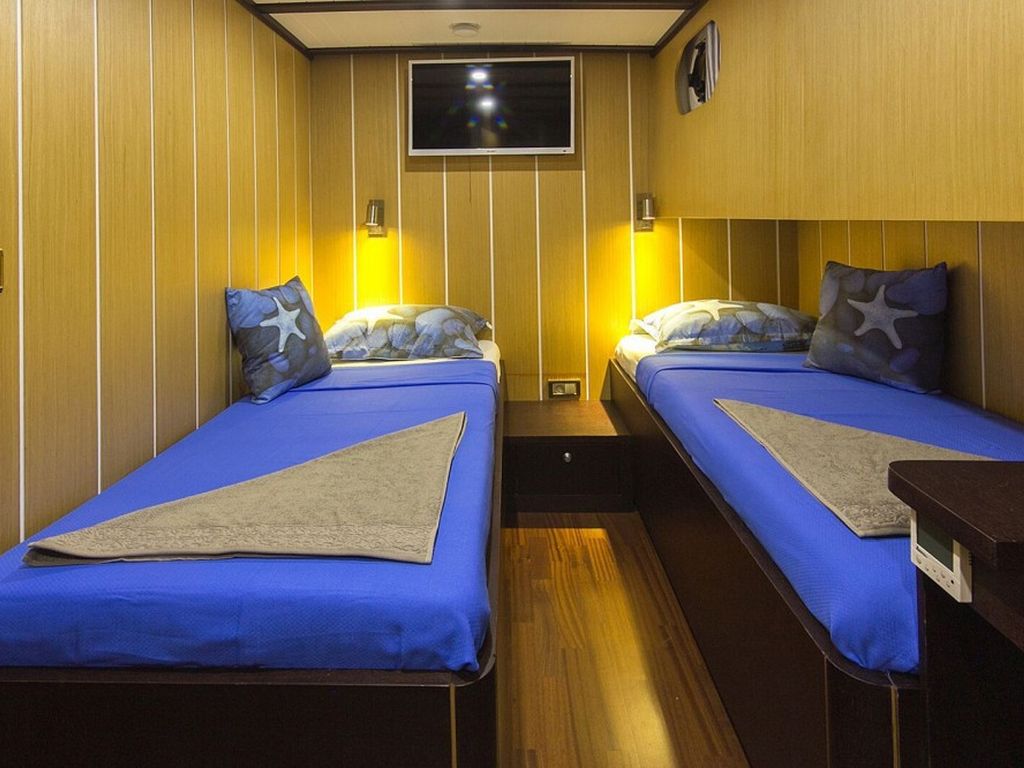 Cenkaya ist eines unserer 2-Kabinen-Boote mit einer Kapazität von 4 Personen, ideal für kleine Gruppen und Familien, und wird am meisten bei unseren Touren nach Bodrum, Gökova, Marmaris, Göcek und Fethiye bevorzugt. Unser Gulet Cenkaya ist speziell dafür konzipiert, seinen Gästen eine unvergessliche Blaue Kreuzfahrt mit Abfahrt von Bodrum, Göcek, Fethiye und Marmaris in einem privaten Bootsverleih zu bieten. Unser 18,50 m langes Gulet wurde 2016 gebaut. In diesem 2-Kabinen-Gulet können Sie den ganzen Komfort Ihres Zuhauses auf dem Meer genießen. Die Cenkaya-Gulet bietet Unterkunft für insgesamt 4 Gäste mit insgesamt 2 Doppelkabinen.