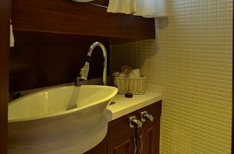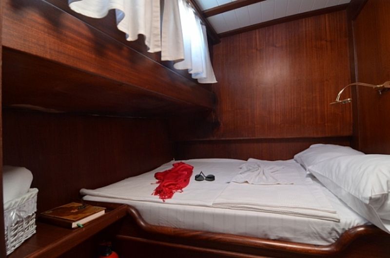 | Bis zu 4 Gästekapazität; 1 Masterkabine (1 Doppelbett + 1 Einzelbett) und 1 Doppelkabine. Alle Kabinen mit Klimaanlage und eigener Dusche und „Hometype“-Toilette. Alle Kabinen mit Bullaugen, Kleiderschrank, Schublade, Spiegel, Rauchmelder. Die Kabinen bestehen aus 1 Masterkabine mit einem Doppelbett plus einem Einzelbett und 1 Gästekabine. 2009 vom Stapel gelassen, bietet Platz für 5 Personen in 2 Kabinen. Das Bett. Alle Zimmer sind mit eigenem Bad, Dusche und WC ausgestattet. Diese Luxusyacht ist voll klimatisiert und verfügt über separate Mannschaftsquartiere. |