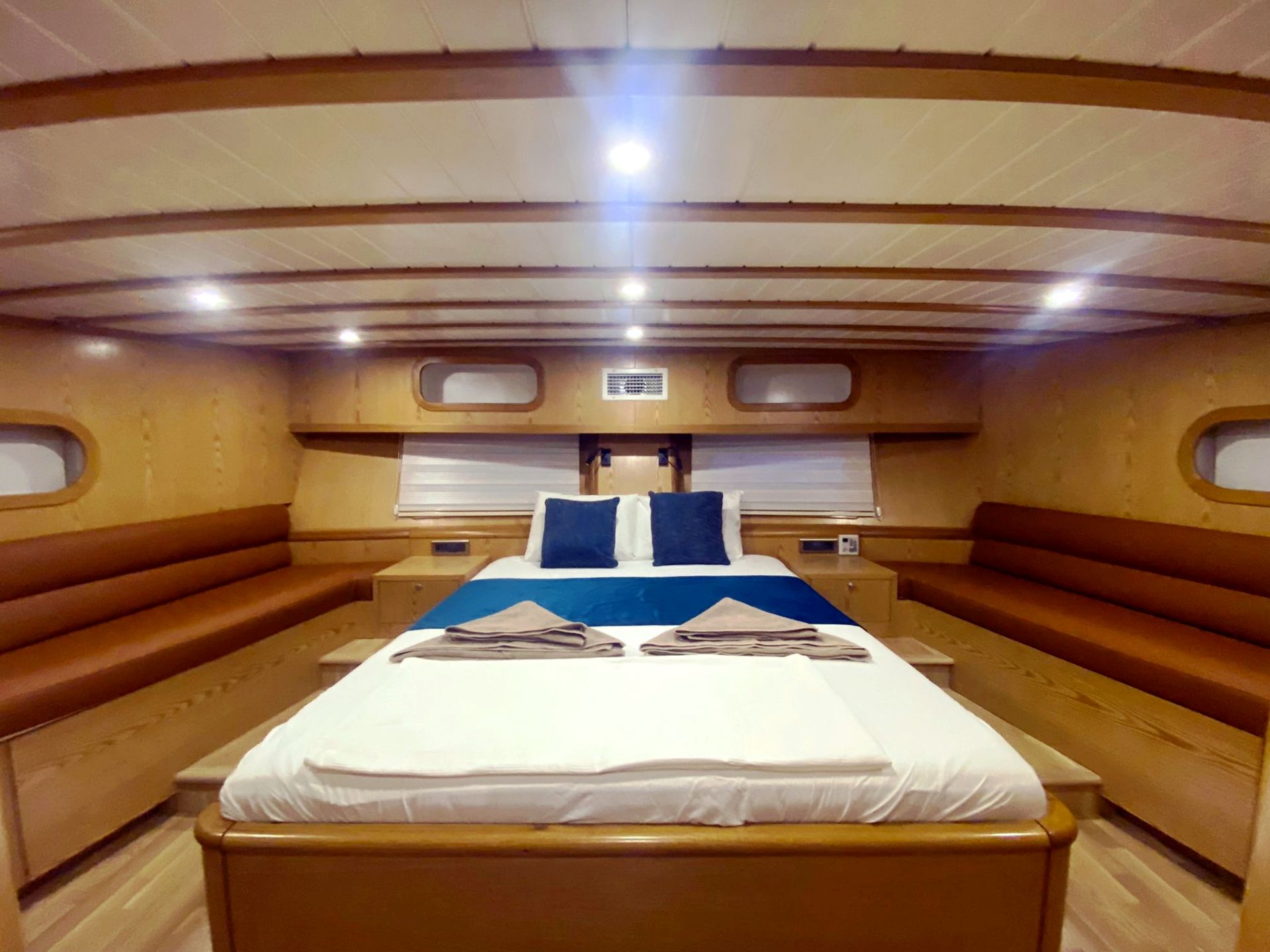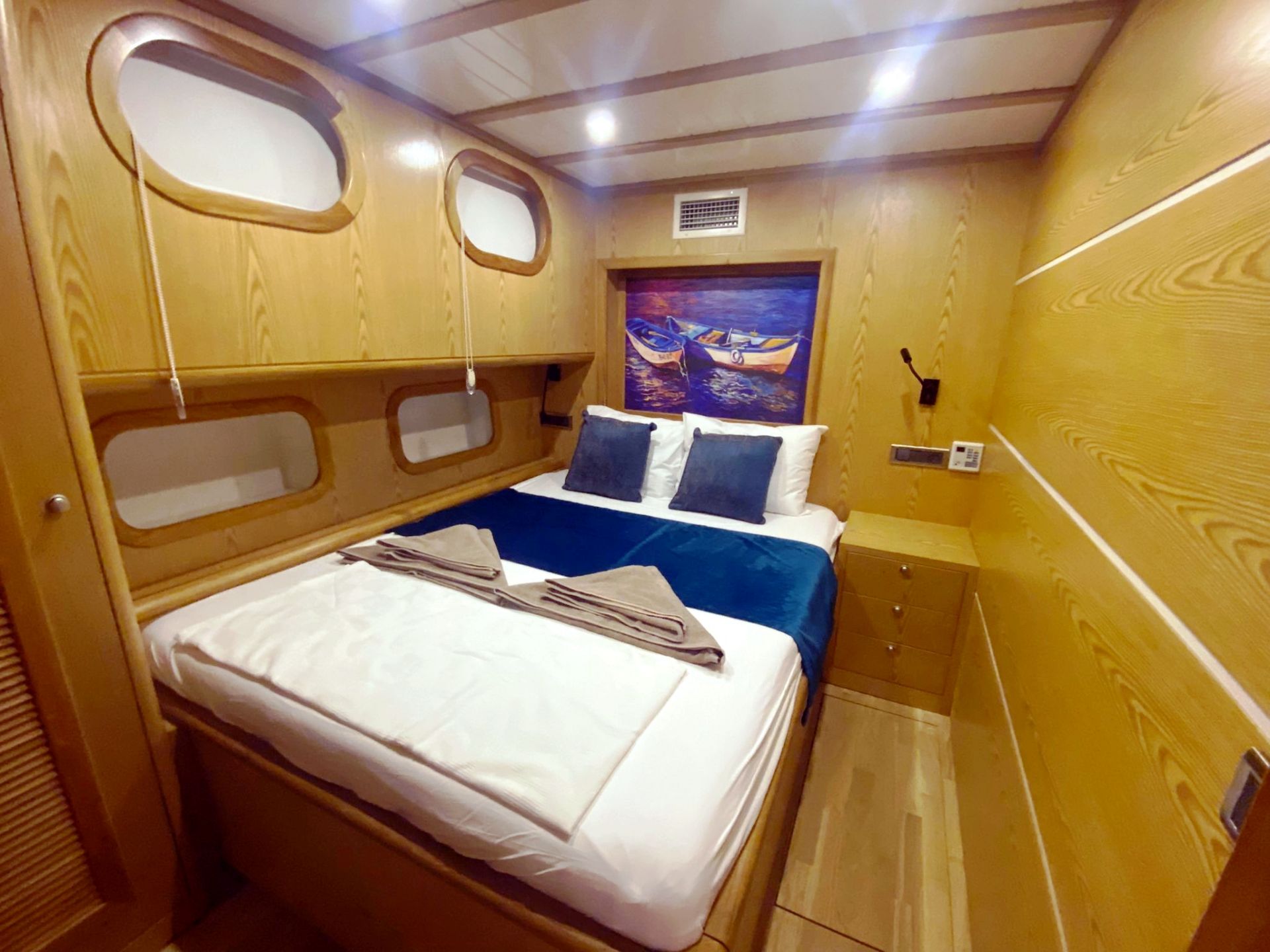 Das Armonica-Gulet bietet Unterkunft für insgesamt 6 Gäste mit insgesamt 3 Doppelkabinen. Die klimatisierten Kabinen unserer Gulets verfügen über komfortable Duschen und WCs. Die Innen- und Außenbereiche, der Salon, das Deck und die Küche unserer Gulets sind geschmackvoll mit hochwertigen Materialien eingerichtet.