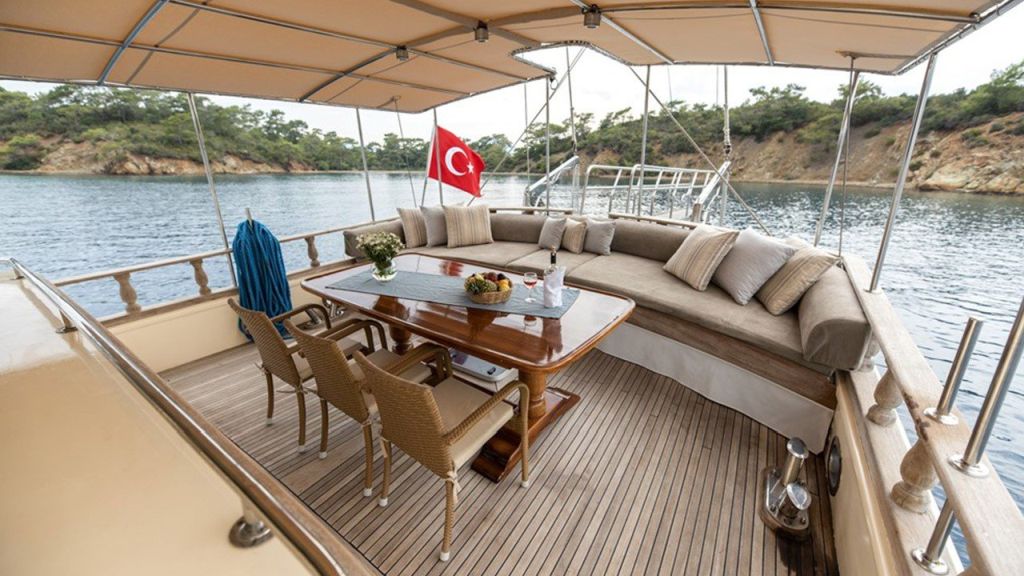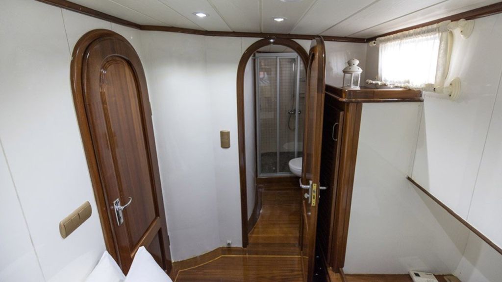 Die Faralya-Gulet bietet mit insgesamt 3 Doppelkabinen Platz für insgesamt 6 Gäste. Die klimatisierten Kabinen unserer Gulets verfügen über komfortable Dusch- und WC-Einrichtungen. Die Innen- und Außenbereiche, die Lounge, das Deck und die Küche unserer Faralya-Gulet sind geschmackvoll mit hochwertigen Materialien eingerichtet.