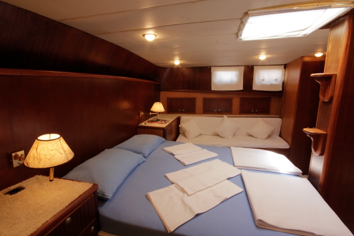 Das Luna-Gulet bietet Unterkunft für insgesamt 6 Gäste mit insgesamt 3 Doppelkabinen. Die klimatisierten Kabinen unserer Gulets verfügen über komfortable Duschen und WCs. Die Innen- und Außenbereiche, der Salon, das Deck und die Küche unserer Gulets sind geschmackvoll mit hochwertigen Materialien eingerichtet.
