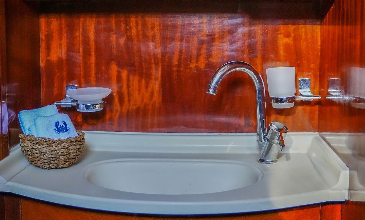 | Die Gulet Oalis ist eine 19 Meter lange traditionelle Holzyacht, gebaut 2011. Sie verfügt über eine Master- und zwei Doppelkabinen, jeweils mit eigenem Bad, und bietet Platz für bis zu sechs Gäste – perfekt für Familien oder kleine Gruppen. Das Deck wurde sorgfältig gestaltet und bietet gemütliche Sitz- und Essbereiche im Freien. Unter Deck befindet sich ein einladender Salon mit Essbereich und voll ausgestatteter Kombüse. Für Wassersport bietet Oalis ein Beiboot mit 25 PS Außenborder, ein Paddleboard, ein Kanu, Schnorchel- und Angelausrüstung. Angetrieben von zwei 280 PS Iveco-Motoren erreicht sie 9 Knoten. Ein 16 kVa Generator und 12V/24V/220V Stromversorgung sorgen für Komfort; Klimaanlage ist bis zu 5 Stunden täglich verfügbar. Die Gulet Oalis segelt entlang der Südwestküste der Türkei – ab Bodrum, Marmaris, Göcek oder Fethiye – und bringt Gäste in verborgene Buchten und türkisfarbene Gewässer. |