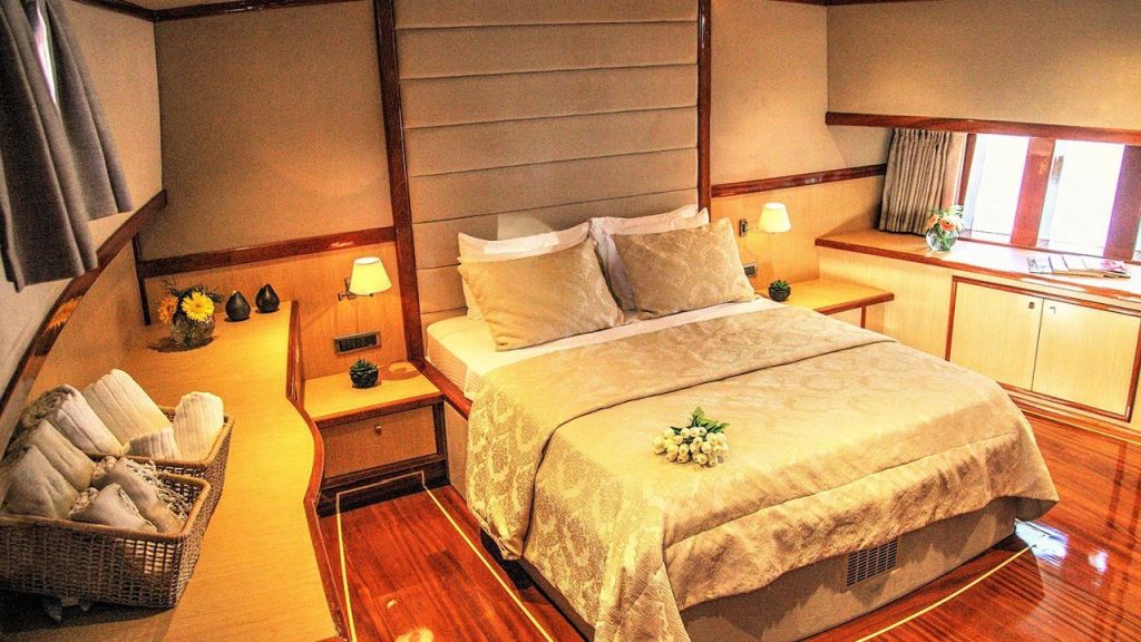 Das Perdue-Gulet bietet Unterkunft für insgesamt 6 Gäste mit insgesamt 3 Doppelkabinen. Die klimatisierten Kabinen unserer Gulets verfügen über komfortable Duschen und WCs. Die Innen- und Außenbereiche, der Salon, das Deck und die Küche unserer Gulets sind geschmackvoll mit hochwertigen Materialien eingerichtet.