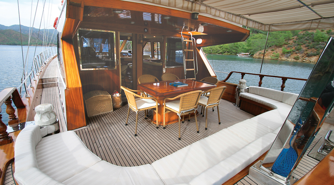 Die Serenity 70 Gulet bietet mit insgesamt 3 Doppelkabinen Platz für insgesamt 6 Gäste. Die klimatisierten Kabinen unserer Gulets verfügen über komfortable Dusch- und WC-Einrichtungen. Die Innen- und Außenbereiche, die Lounge, das Deck und die Küche unserer Gulets sind geschmackvoll mit hochwertigen Materialien eingerichtet.