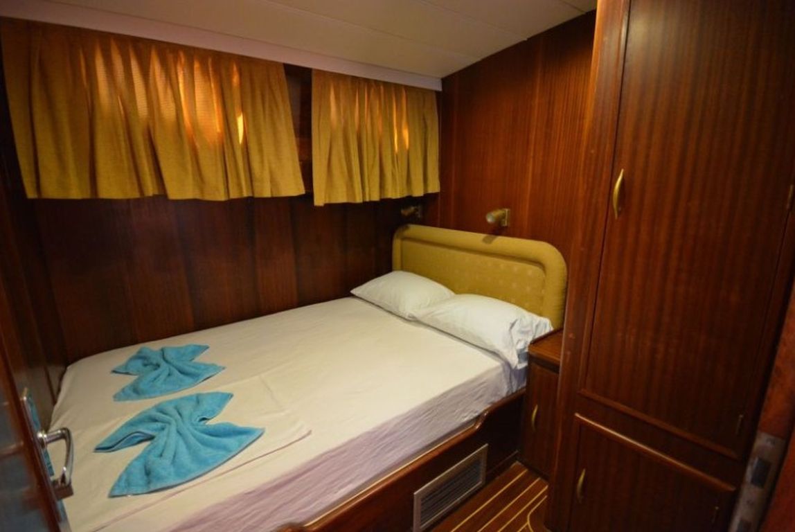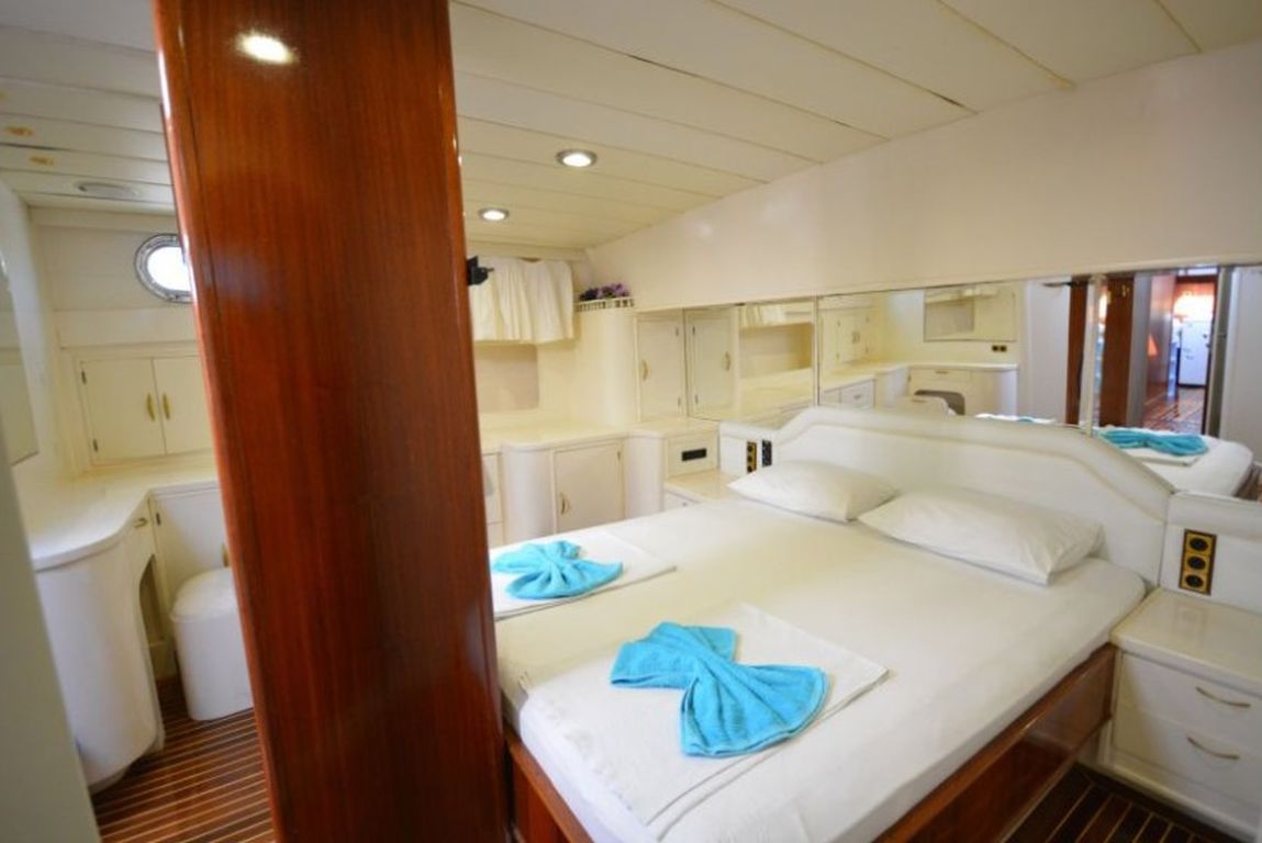 | Bis zu 6 Gästekapazität; 1 Masterkabine, 2 Doppelkabinen, Klimaanlage in allen Kabinen, Duschkabine und Toiletten im Haushaltsstil in allen Kabinen, separate Mannschaftskabinen. |