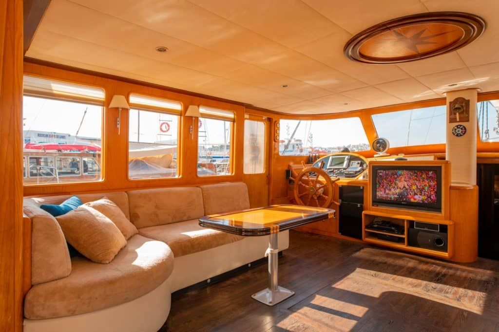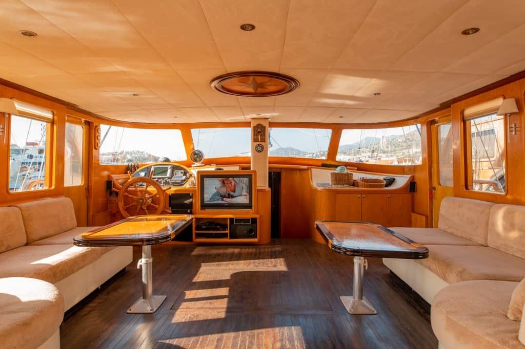 LCD-Fernseher, DVD-Player und Stereoanlage stehen unseren geschätzten Gästen der Blauen Reise in der Lounge unserer Gulet zur Verfügung. Wassersportarten wie Kanufahren, Tauchen und Windsurfen stehen unseren Gästen auf Wunsch optional zur Verfügung. Unser Boot, die Aegean Pearl, bietet unseren Passagieren, die die Blaue Reise in den unberührten Buchten der Türkei genießen möchten, auch Unterhaltung und die Möglichkeit, auf dem Boot zu entspannen. Das Gulet Aegean Pearl heißt unsere geschätzten Gäste willkommen, die eine wöchentliche Gulet-Miete in den Regionen Bodrum, Göcek, Fethiye, Marmaris oder Gökova in Erwägung ziehen.