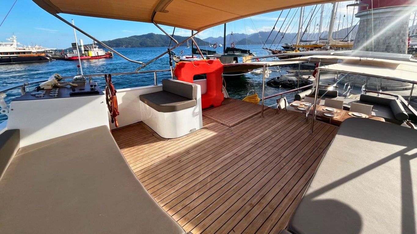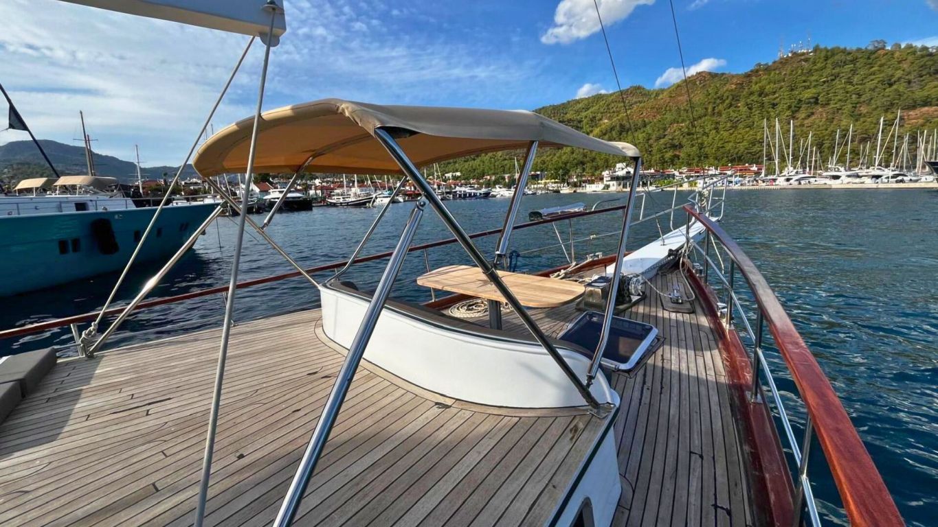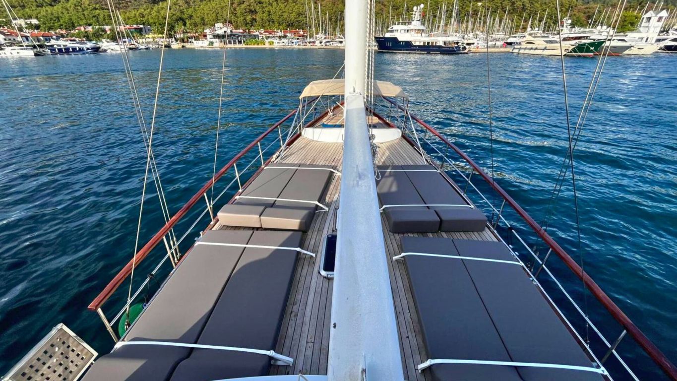 Das Schiff wird von einem 160 PS starken Motor angetrieben und von einem 17 kVA Generator unterstützt, was eine ruhige und komfortable Fahrt entlang der Ägäis- und Mittelmeerküste ermöglicht. Mit 5.000 Litern Frischwasserkapazität, Satellitenantenne, Internet in türkischen Gewässern und Unterwasserbeleuchtung bietet sie Komfort und Funktionalität gleichermaßen. Die Gulet Ahmet Erturk operiert von Marmaris aus und ist die ideale Wahl für Familien oder Freundesgruppen, die ein komfortables und authentisches Gulet-Erlebnis mit modernem Komfort, persönlichem Service und dem Charme traditioneller türkischer Segelkunst suchen.