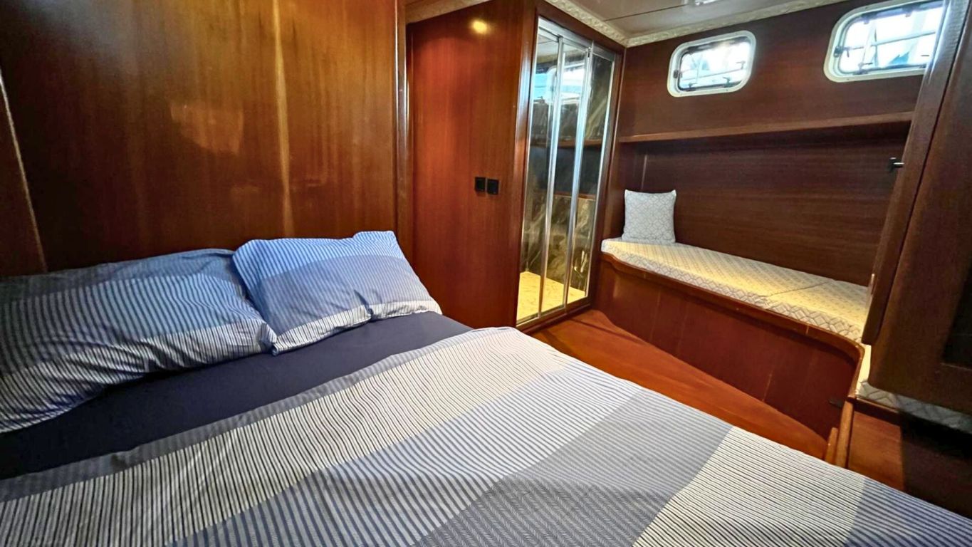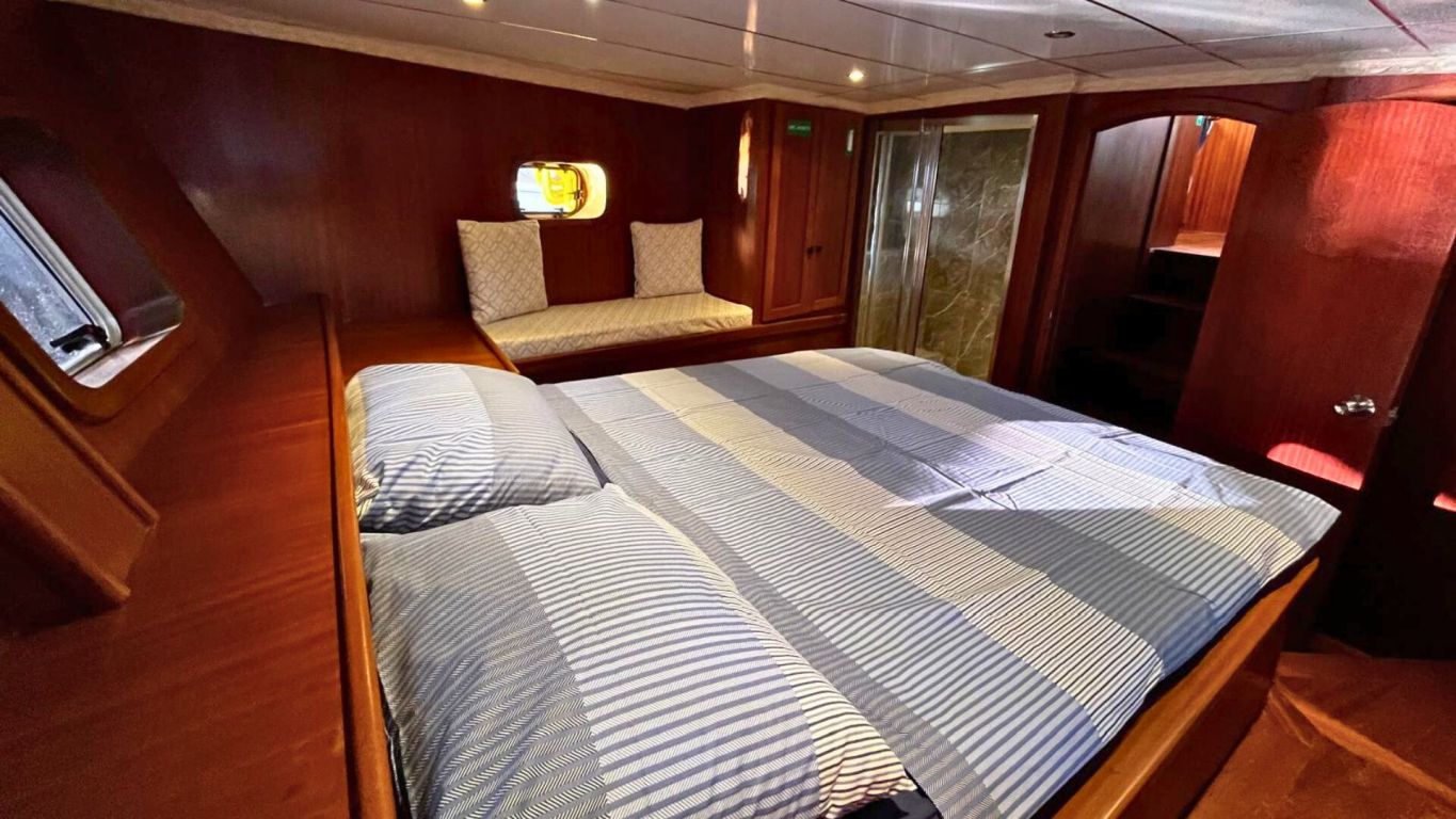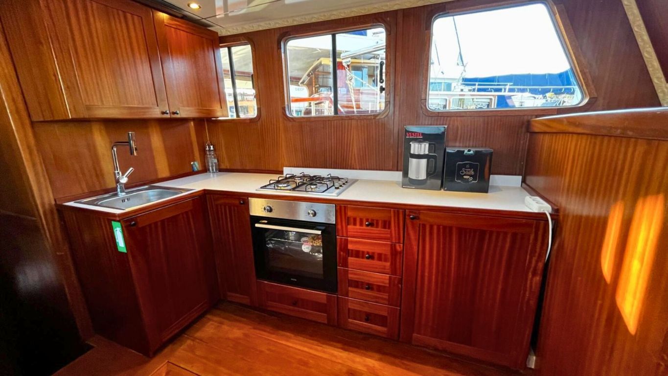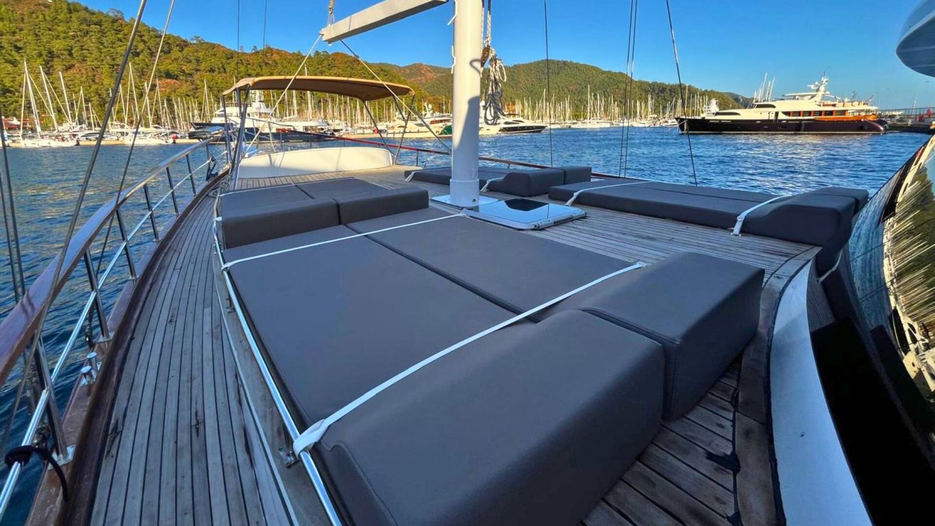 Das Schiff wird von einem 160 PS starken Motor angetrieben und von einem 17 kVA Generator unterstützt, was eine ruhige und komfortable Fahrt entlang der Ägäis- und Mittelmeerküste ermöglicht. Mit 5.000 Litern Frischwasserkapazität, Satellitenantenne, Internet in türkischen Gewässern und Unterwasserbeleuchtung bietet sie Komfort und Funktionalität gleichermaßen. Die Gulet Ahmet Erturk operiert von Marmaris aus und ist die ideale Wahl für Familien oder Freundesgruppen, die ein komfortables und authentisches Gulet-Erlebnis mit modernem Komfort, persönlichem Service und dem Charme traditioneller türkischer Segelkunst suchen.