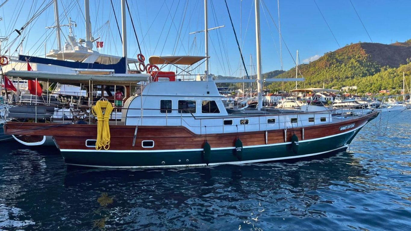 Die Gulet Ahmet Erturk ist eine 19,8 Meter lange Standard Plus Gulet, Baujahr 1989 und 2024 komplett überholt. Dieses Schiff bietet Komfort und traditionelle Eleganz für eine entspannte Blaue Reise. Es verfügt über vier Kabinen, darunter eine Master-Kabine und drei Doppelkabinen. Alle Kabinen sind mit Klimaanlage, eigenem Bad und Dusche ausgestattet und bieten Schlafplätze für bis zu acht Gäste. Eine professionelle zweiköpfige Crew sorgt während der gesamten Reise für einen freundlichen Service.