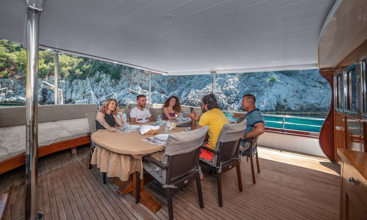| Die Albatros B ist eine unserer Gulets mit 4 Kabinen für bis zu 8 Personen und ideal für kleine Gruppen und Familien. Sie zählt zu den beliebtesten Schiffen für unsere Touren nach Bodrum, Gokova, Marmaris, Gocek und Fethiye. Die Albatros B wurde speziell für unvergessliche Blaue Reisen konzipiert und startet in Bodrum, Gocek, Fethiye und Marmaris. Die 20 Meter lange Gulet wurde 2016 gebaut und 2020 renoviert. Genießen Sie den Komfort von zu Hause an Bord dieser Gulet mit vier Kabinen. Die Albatros B bietet mit ihren vier Doppelbettkabinen Platz für insgesamt acht Gäste. Jede klimatisierte Kabine verfügt über eine komfortable Dusche und ein WC. Die Innen- und Außenbereiche, einschließlich Salon, Deck und Kombüse, sind geschmackvoll mit hochwertigen Materialien eingerichtet. Der erfahrene Kapitän und der Koch der Albatros B stehen Ihnen während Ihrer gesamten Blauen Reise zur Verfügung und sorgen für Ihr Wohlbefinden. Ihr dreikopfiges Team begleitet Sie während Ihres gesamten Urlaubs und kümmert sich um Service, Verpflegung, Reinigung und die Organisation Ihrer täglichen Aktivitäten. Das positive Feedback und die Empfehlungen unserer Kunden zu unseren Gulet-Charterreisen der letzten Jahre garantieren Ihnen 100%ige Kundenzufriedenheit mit unserer Albatros B Yacht. |