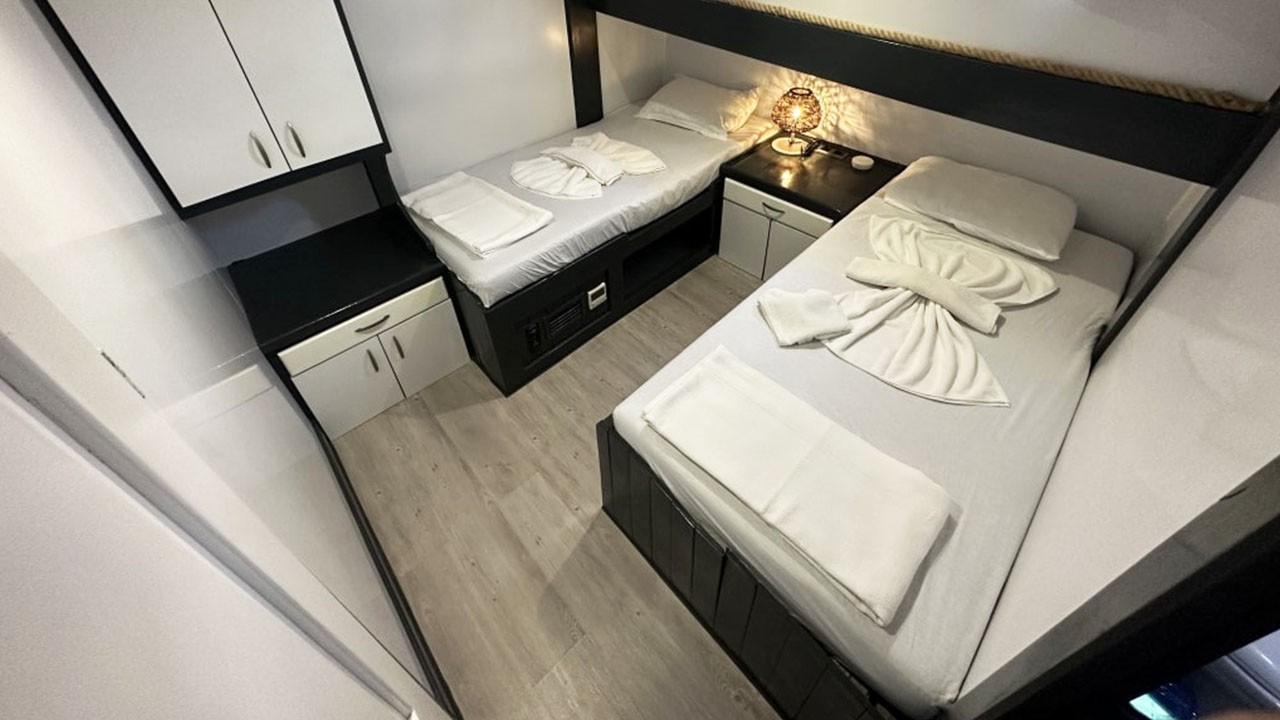 Die Gulet Aria ist eine 27 Meter lange traditionelle Gulet, die 2023 komplett renoviert wurde. Sie bietet eine perfekte Kombination aus Stil, Komfort und Eleganz. Das Anwesen verfügt über sechs Kabinen (eine Master-Kabine, vier Doppelkabinen und eine Zweibettkabine), alle ausgestattet mit Klimaanlage, eigenem Bad und Dusche, und bietet Platz für bis zu 12 Gäste. Die vierköpfige Crew sorgt während Ihres gesamten Aufenthalts für aufmerksamen Service.
