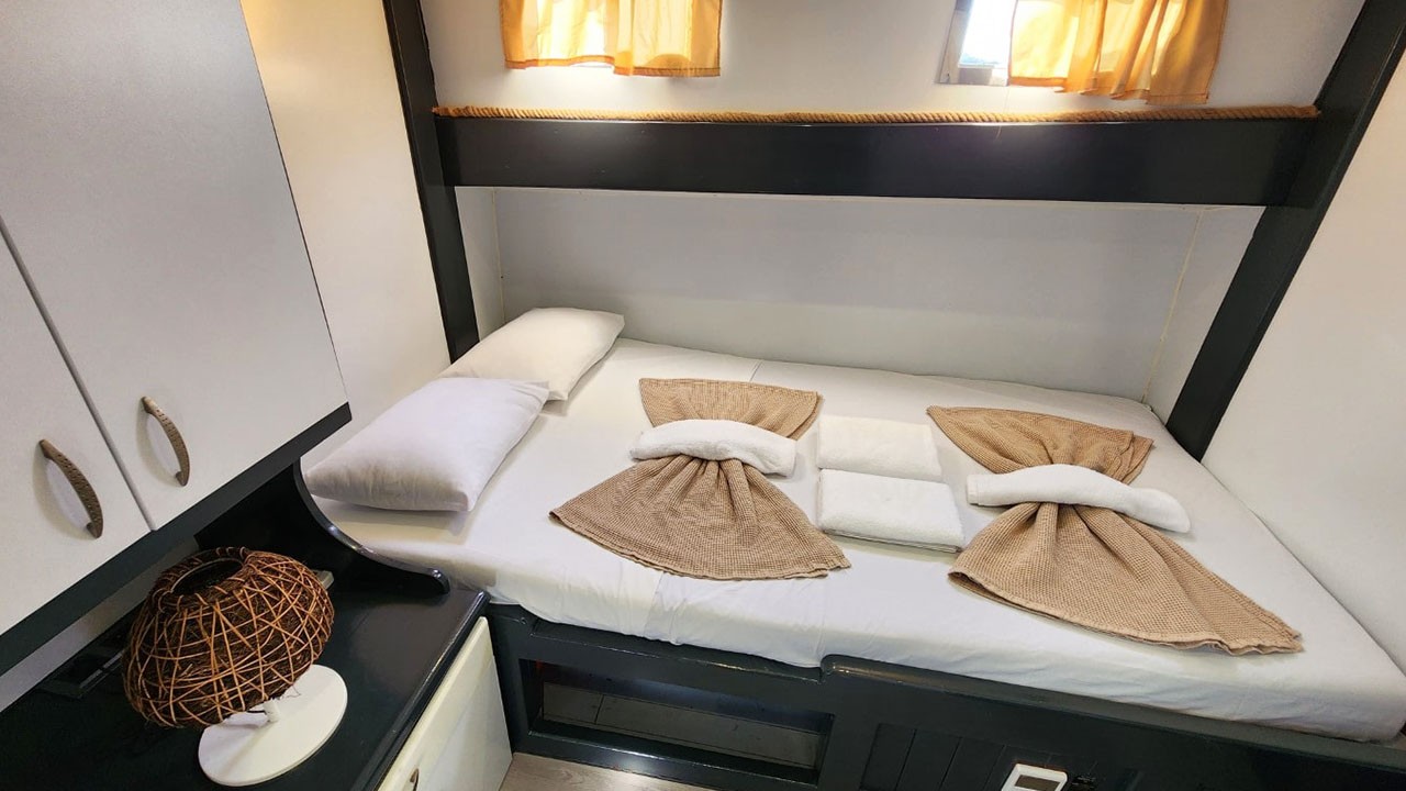 Das Schiff wird von einem 360-PS-Motor angetrieben, der von einem 35-kVA-Generator unterstützt wird, und verfügt über ein komplettes elektrisches System (12 V, 24 V, 220 V). Die Reisegeschwindigkeit beträgt ca. 8 Knoten. Eine Klimaanlage sorgt für angenehme Temperaturen.