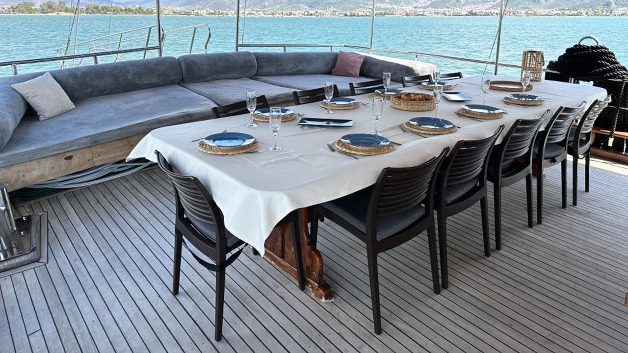 Die Gulet Aria startet in Fethiye (und kann von anderen türkischen Häfen aus gechartert werden) und lädt Sie ein, die türkisfarbenen Buchten, versteckten Buchten und malerischen Inseln der Türkischen Riviera zu entdecken – für eine unvergessliche Blaue Reise.