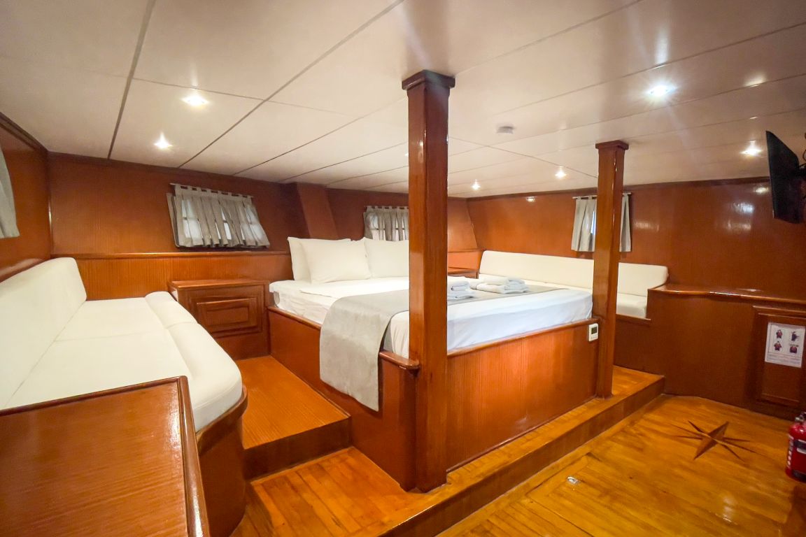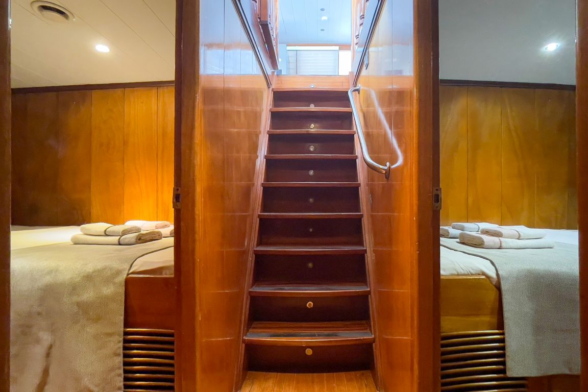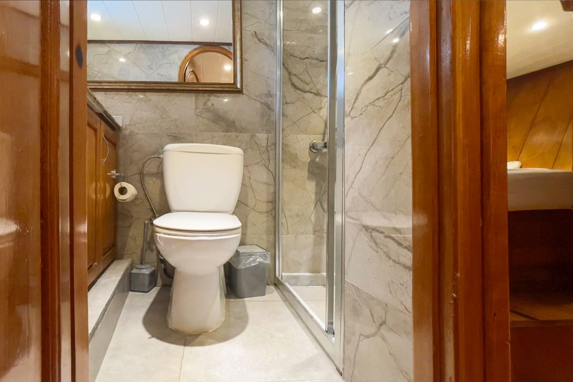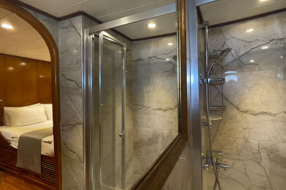 | Bis zu 8 Gästekapazität; 2 Master, 2 Doppelkabinen, Klimaanlage, Duschkabine und Toiletten im Haushaltsstil in allen Kabinen, separate Mannschaftskabinen. |