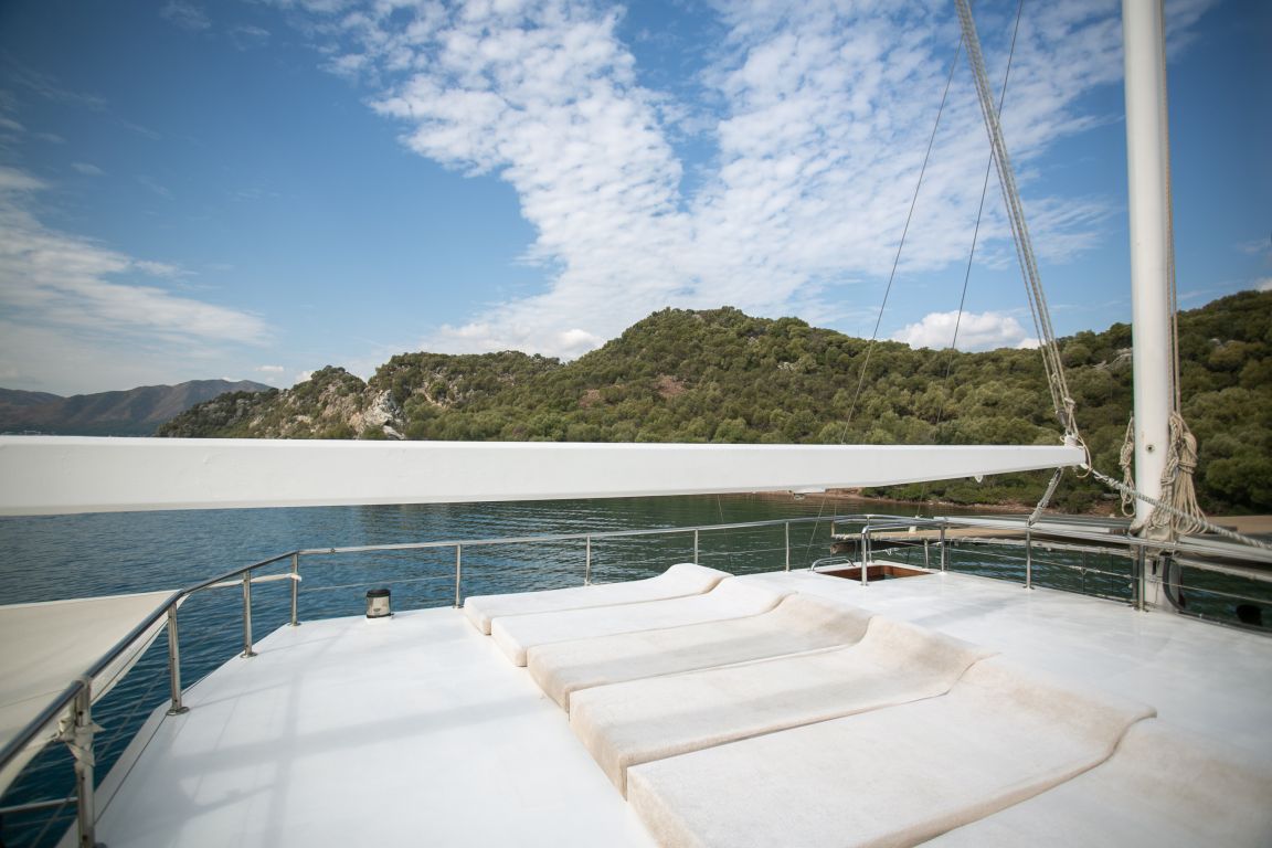 Dieses wunderbare 22 Meter lange Boutique-Gulet bietet einzigartige Blaue-Kreuzfahrten für 8 geschätzte Gäste. Sie könnte die ideale Wahl sein, insbesondere für einzelne Familiengruppen oder 4 Paare. Wasserski, Wakeboard, Ringo, Paddleboard und Kanu sind auf dem Board verfügbar. Darüber hinaus bietet Ihnen der Panorama-Flybridge-Bereich Privatsphäre. Auf dem Auramia - Gulet stehen 2 Esstische und 4 Besatzungsmitglieder zur Verfügung. Basishafen: Marmaris, Türkei, Check-in 16:30 Uhr – Check-out 10:00 Uhr |