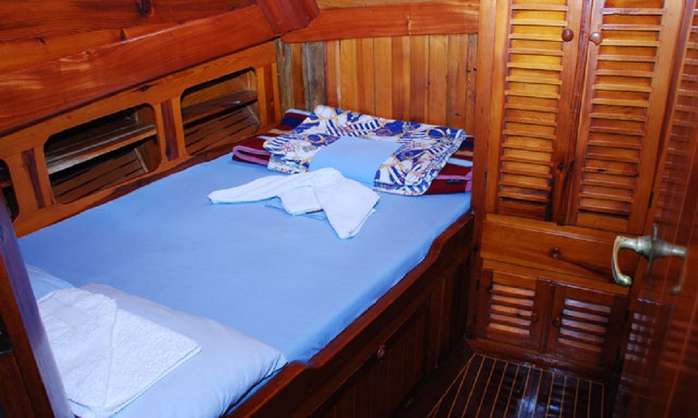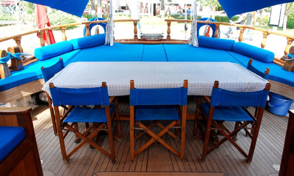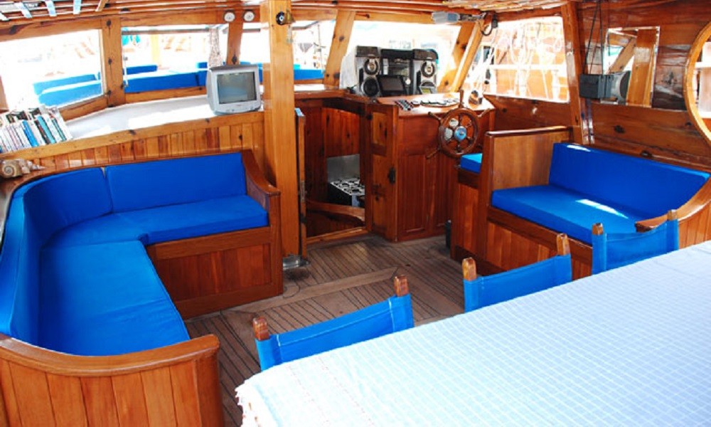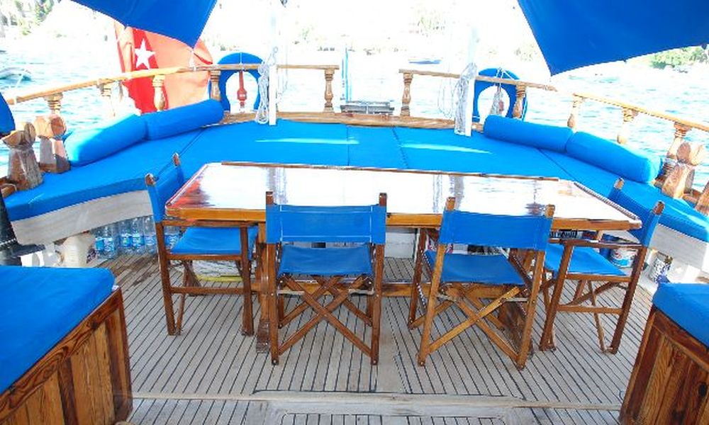 Unser 20 m langes Gulet Deniz C wurde 1987 gebaut. Seine endgültige Form erhielt es mit der Renovierung und Sanierung, die es 2010 durchlief. Unser Boot verfügt über 4 Doppelkabinen, jede stilvoller und komfortabler als die andere, mit eigener Dusche, WC und Klimaanlage. 3 Es gibt separate Wohnbereiche, eine voll ausgestattete Küche, Essbereiche im Innen- und Außenbereich sowie Ruhebereiche für die Besatzung.