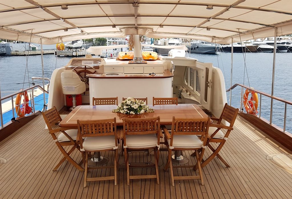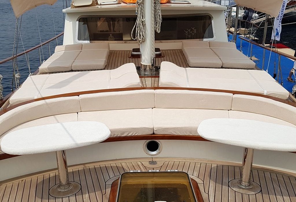 Es gibt ausreichend Sonnenkissen, Stühle und Serviersets für alle Gäste. Die Gulet Elifim 11 verfügt dank ihrer vollwertigen Radio-, GSM-Telefon- und Navigationsausrüstung über Bodrum, Göcek, Marmaris, Fethiye usw. Sie können sicher zu unseren Zielen der blauen Kreuzfahrt segeln. LCD-Fernseher, DVD-Player und Stereoanlage stehen unseren geschätzten Gästen der Blauen Reise in der Lounge unserer Gulet zur Verfügung.
