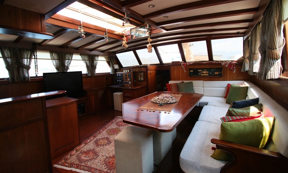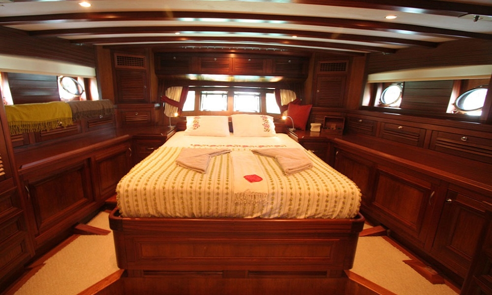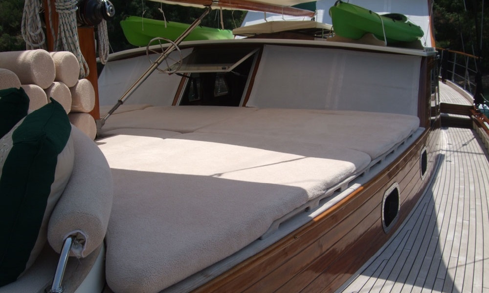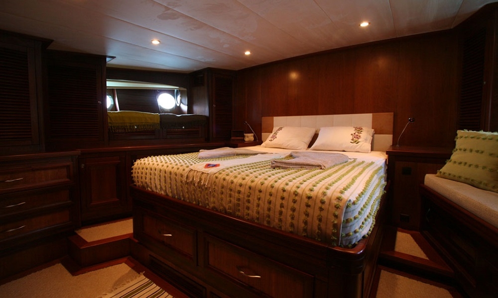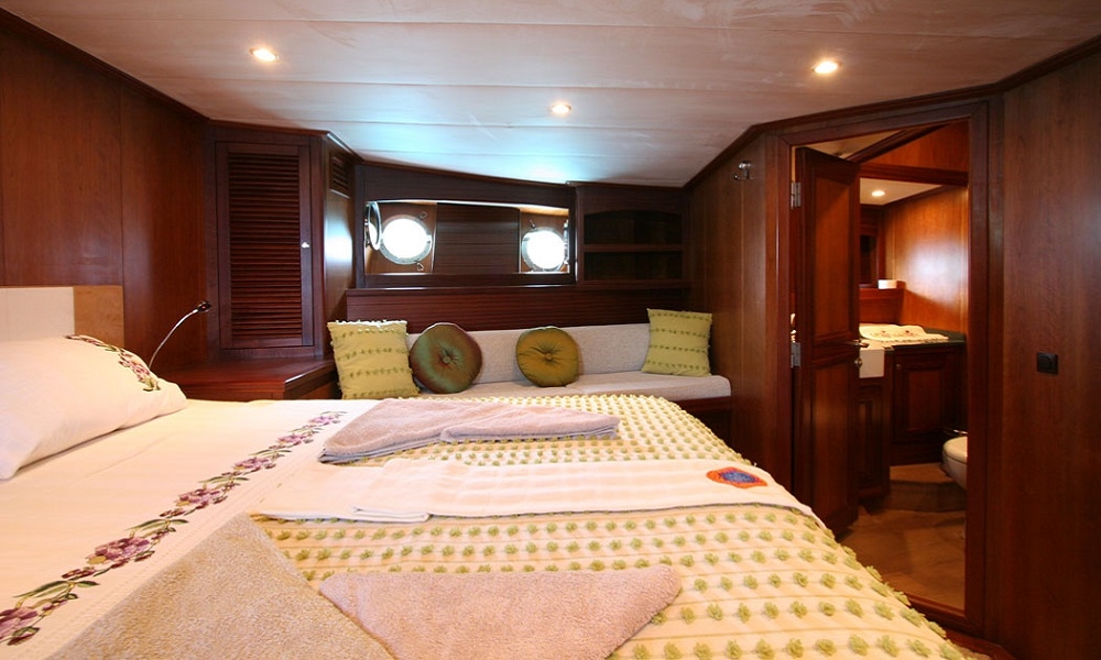 Unsere 22,60 m lange Gulet Freya wurde 2008 gebaut. Unser Boot verfügt über 4 Kabinen, 2 Master- und 2 Doppelkabinen, jede stilvoller und komfortabler, mit eigener Dusche, WC und Klimaanlage. 3 Es gibt separate Wohnbereiche, eine voll ausgestattete Küche, Essbereiche im Innen- und Außenbereich sowie Ruhebereiche für die Besatzung.