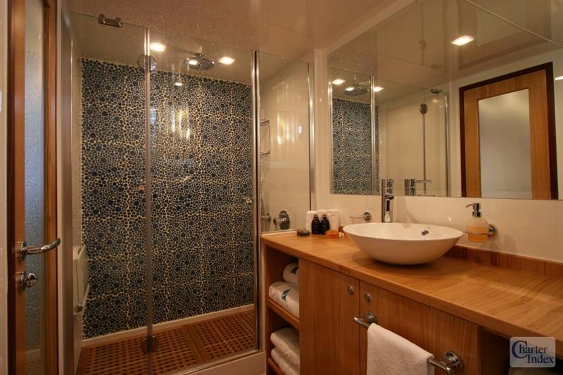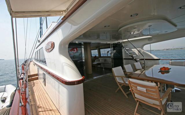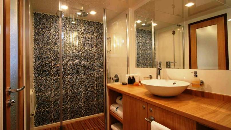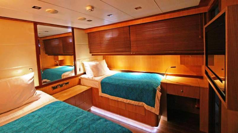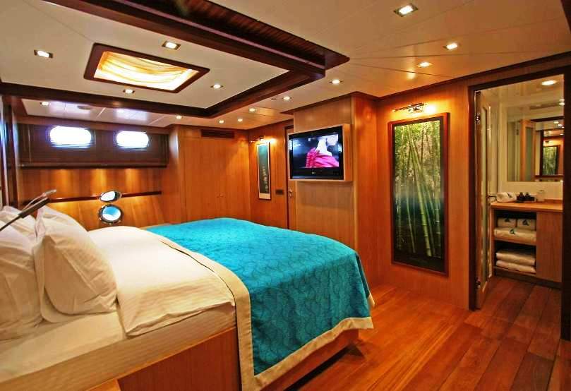 Unsere 31,60 m lange Gulet Getaway wurde 2009 gebaut. Ihre endgültige Form erhielt sie mit der Renovierung und Sanierung, die sie 2016 durchlief. Unser Boot verfügt über 4 Kabinen, 2 Master- und 2 Doppelkabinen, jede stilvoller und komfortabler, mit eigener Dusche, WC und Klimaanlage. 3 Es gibt separate Wohnbereiche, eine voll ausgestattete Küche, Essbereiche im Innen- und Außenbereich sowie Ruhebereiche für die Besatzung.