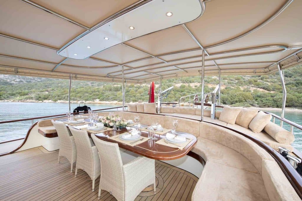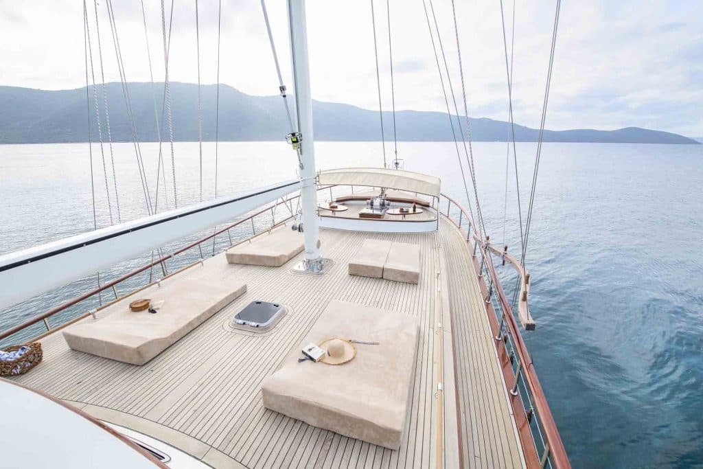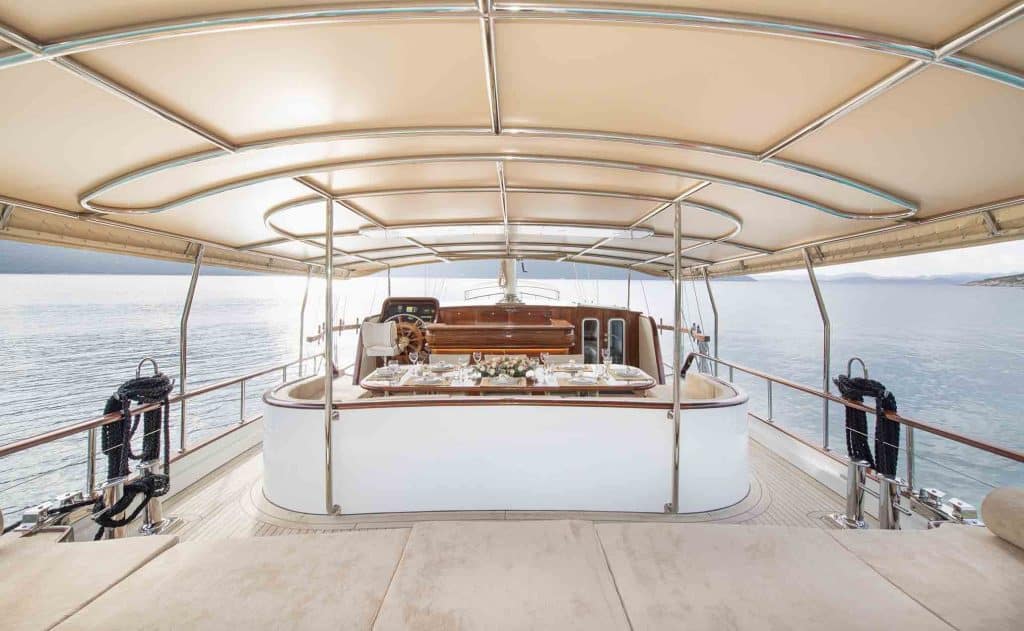 Es gibt ausreichend Sonnenkissen, Stühle und Serviersets für alle Gäste. Gulet Gozdem The One verfügt dank seiner vollwertigen drahtlosen GSM-Telefonnavigationsausrüstung über eine vollwertige drahtlose GSM-Telefonnavigationsausrüstung. Bodrum, Göcek, Marmaris, Fethiye usw. Sie können sicher zu unseren Zielen der Blauen Kreuzfahrt segeln.