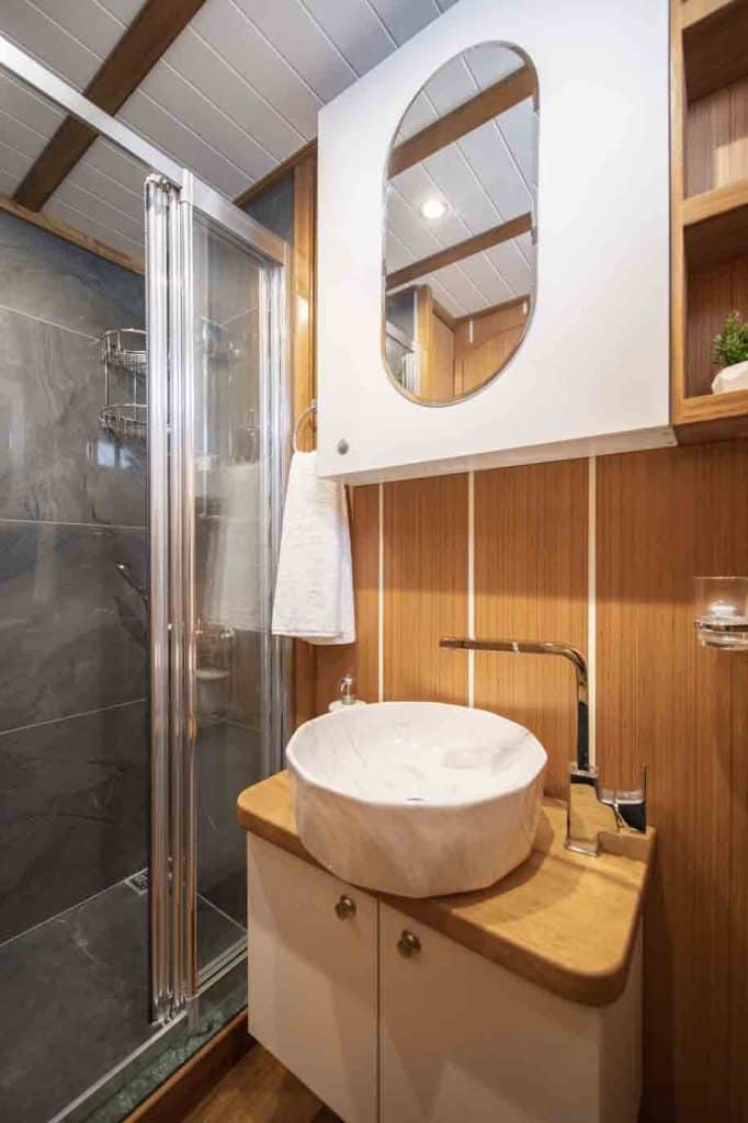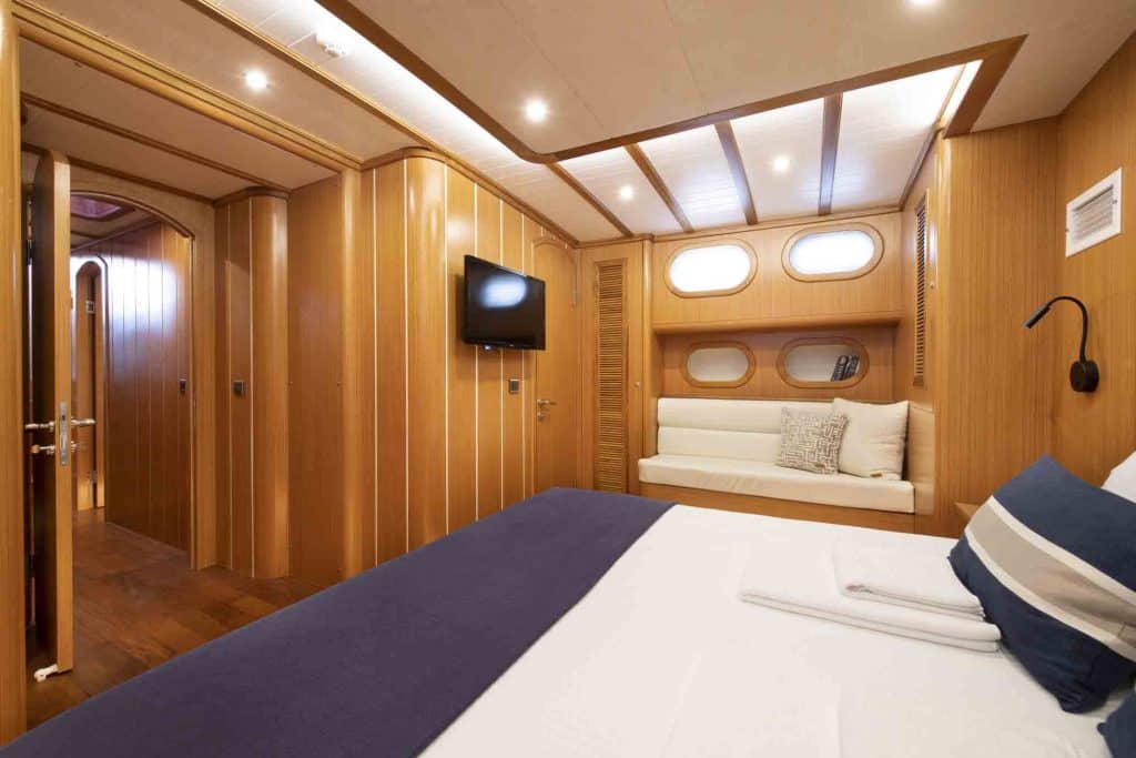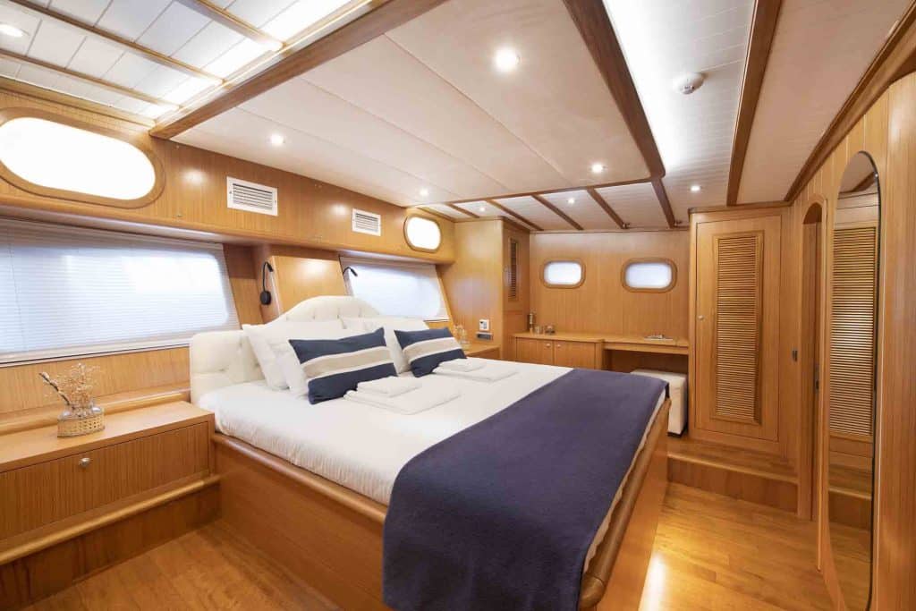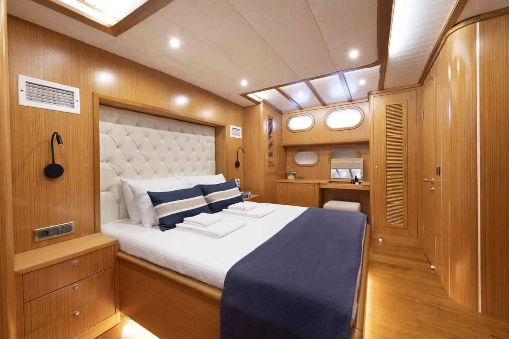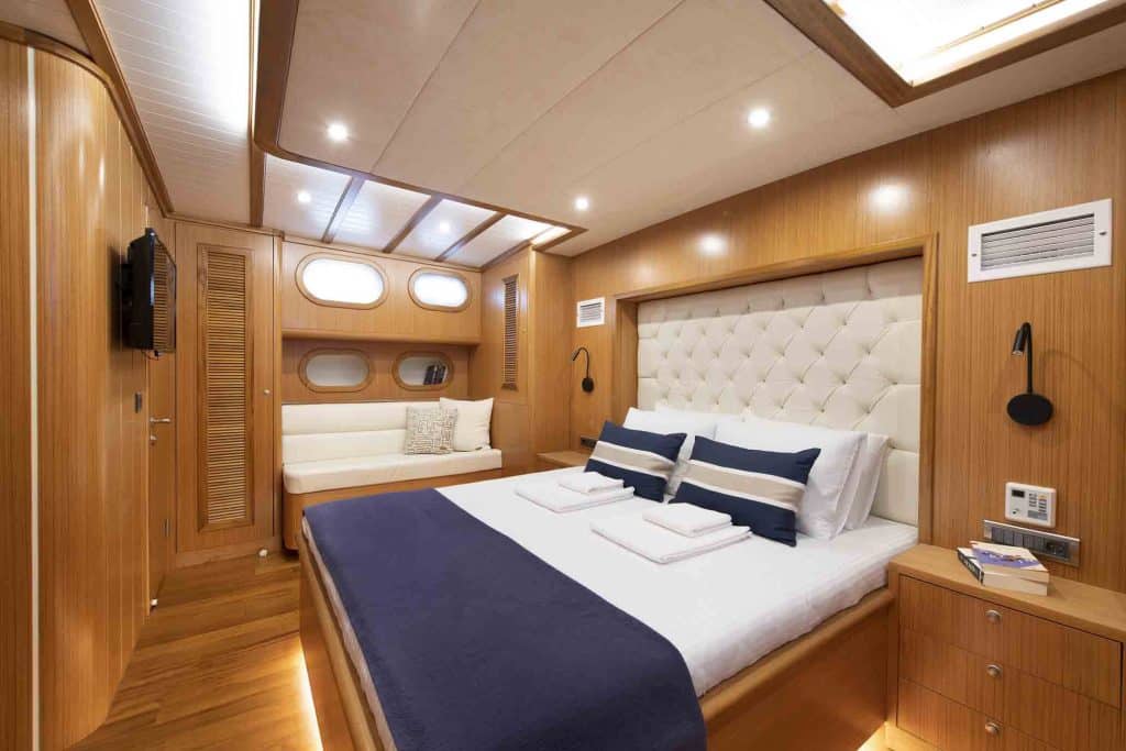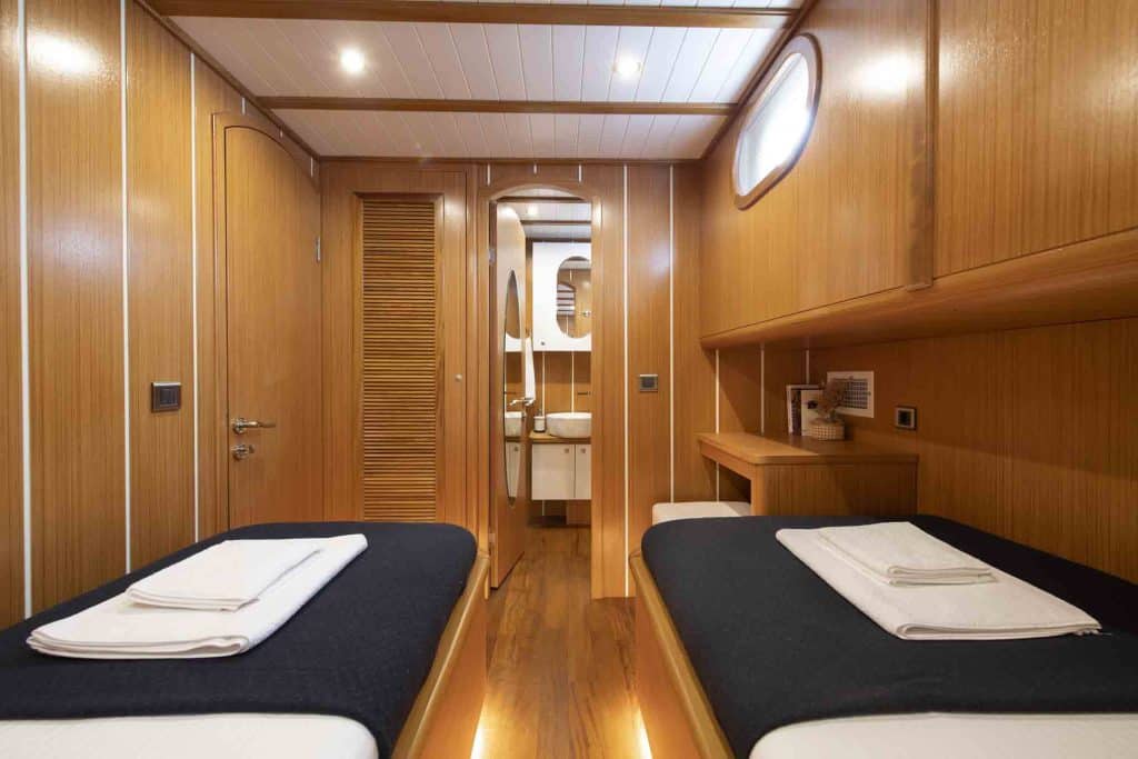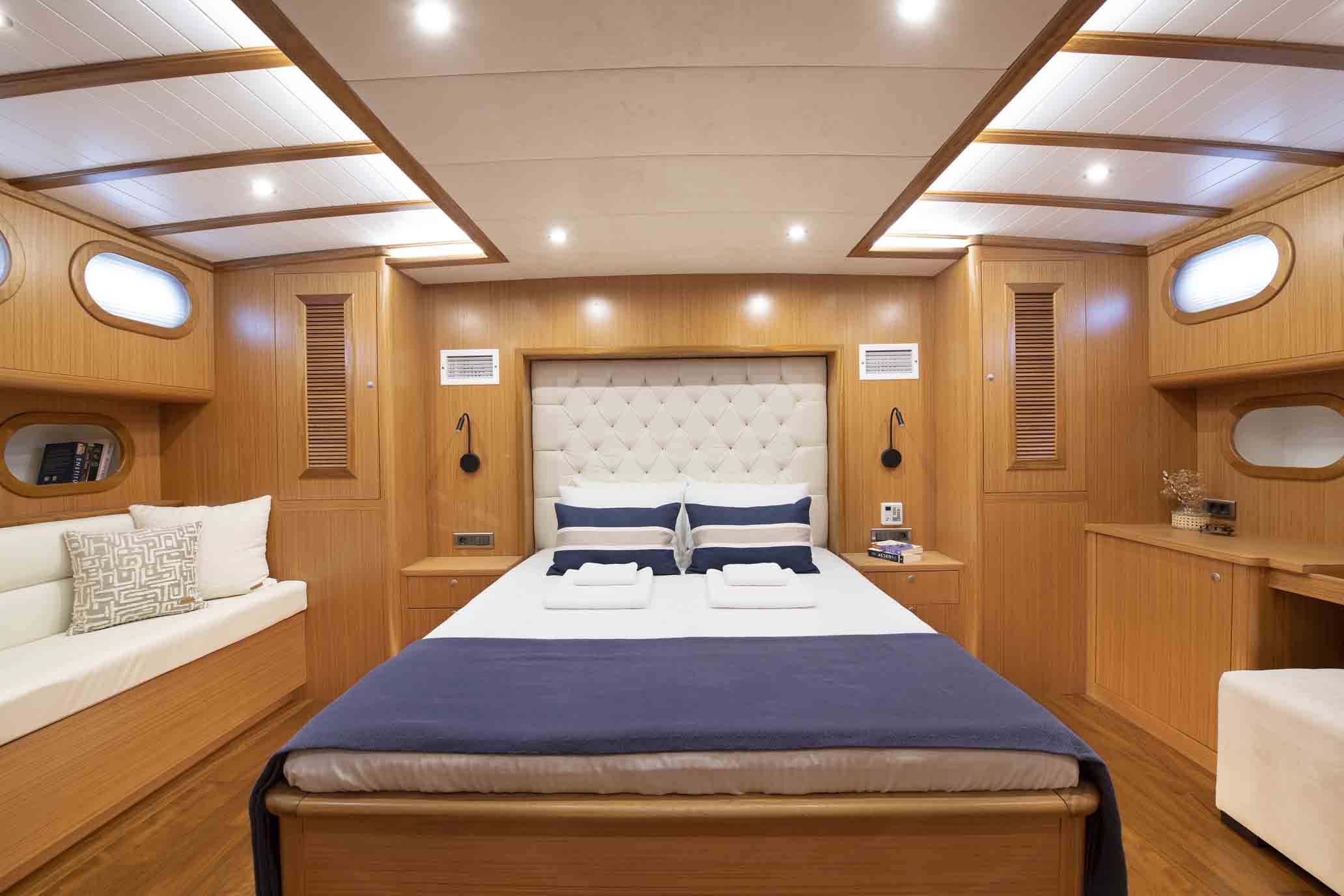 Unser 26 m langes Gulet Gozdem The One wurde 2022 gebaut. Unser Boot verfügt über 5 Kabinen, darunter 2 Doppel- und 3 Zweibettkabinen, jede stilvoller und komfortabler, mit eigener Dusche, WC und Klimaanlage. 3 Es gibt separate Wohnbereiche, eine voll ausgestattete Küche, Essbereiche im Innen- und Außenbereich sowie Ruhebereiche für die Besatzung.