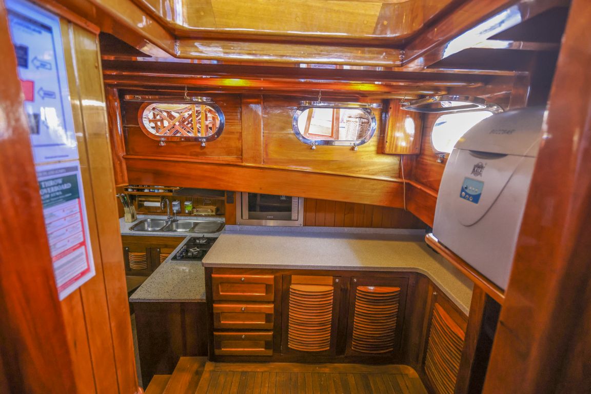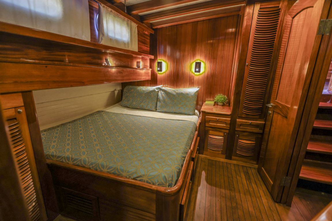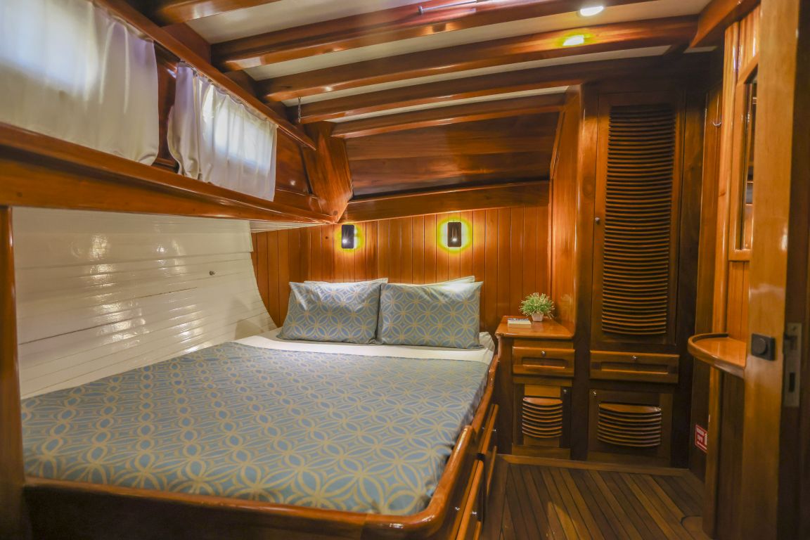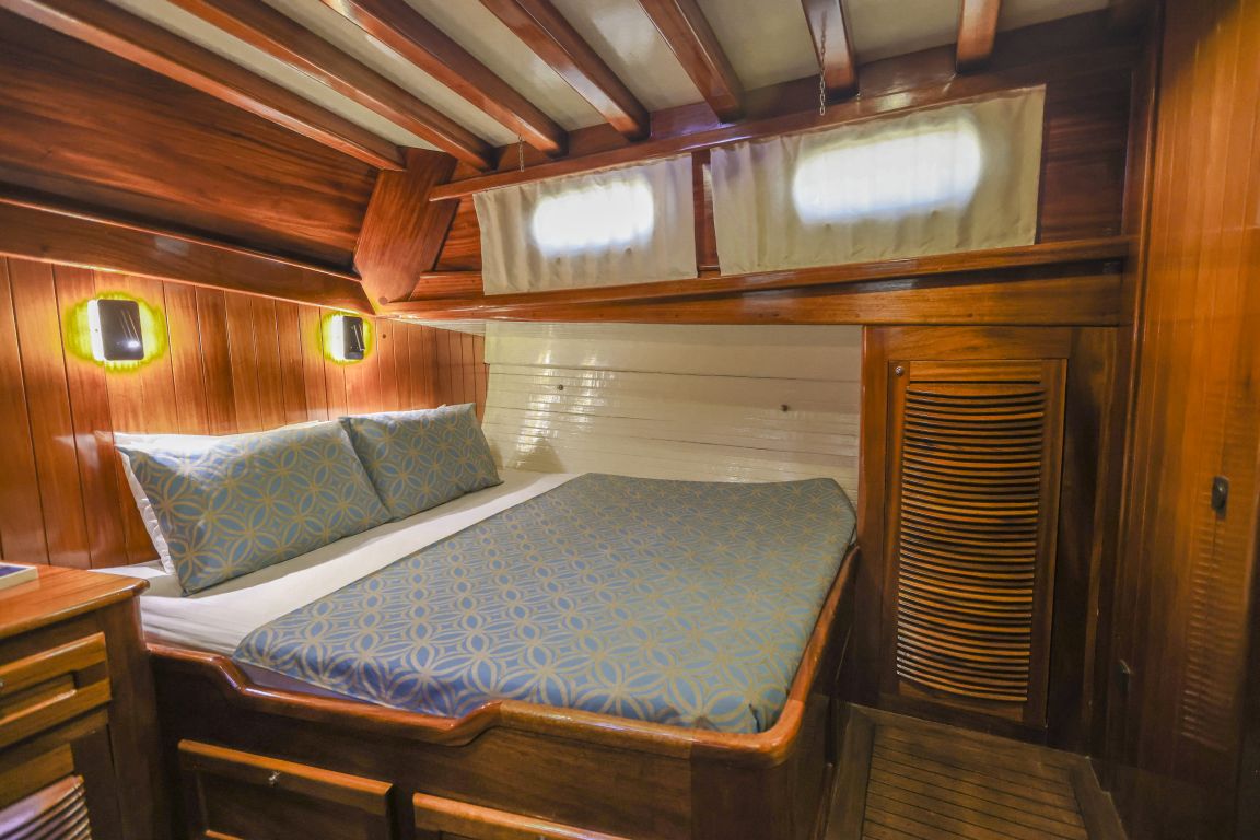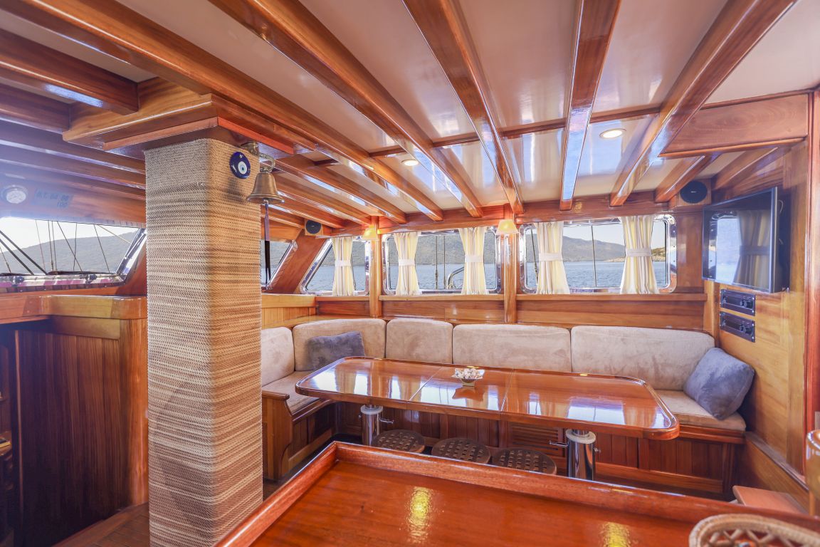 Unsere 24 m lange Gulet Il Fratello wurde 2002 gebaut. Sie verfügt über vier Kabinen: drei Doppelkabinen und eine Zweibettkabine. Jede Kabine ist stilvoller und komfortabler als die andere und mit eigener Dusche, WC und Klimaanlage ausgestattet. Es gibt separate Wohnbereiche, eine voll ausgestattete Küche, Essbereiche im Innen- und Außenbereich sowie Ruhebereiche für die Crew.