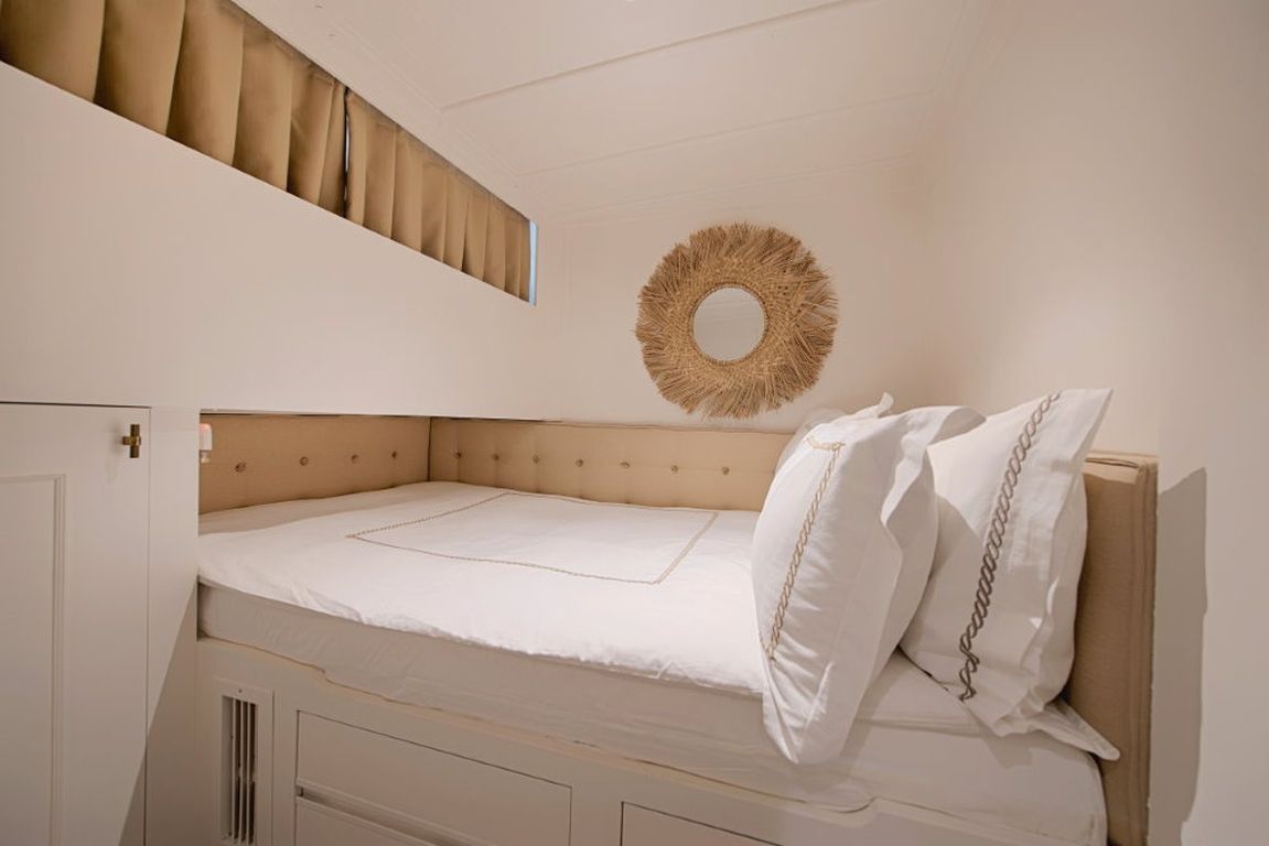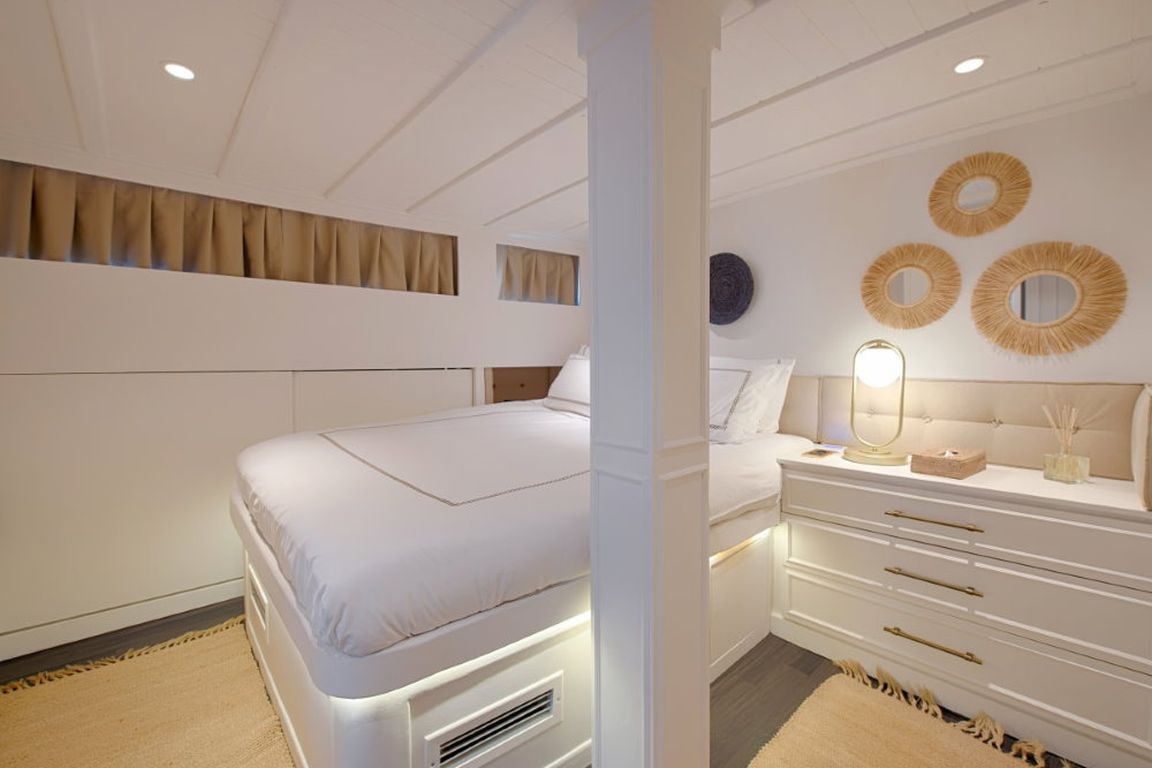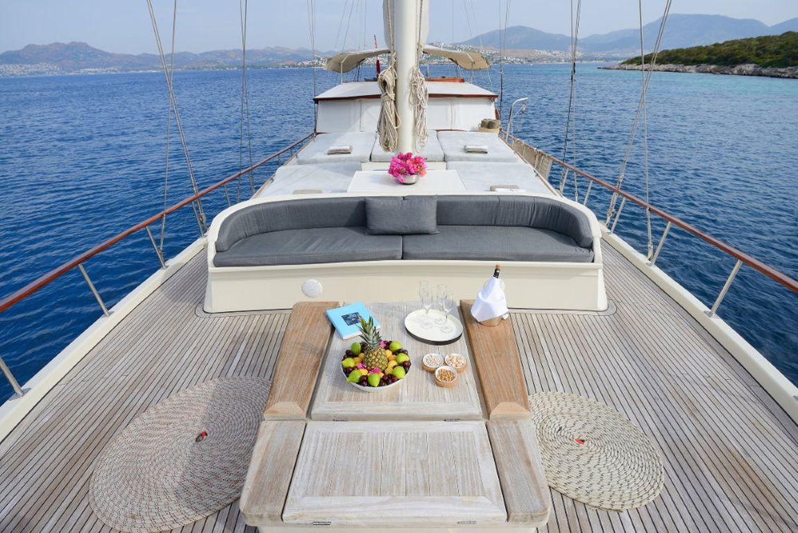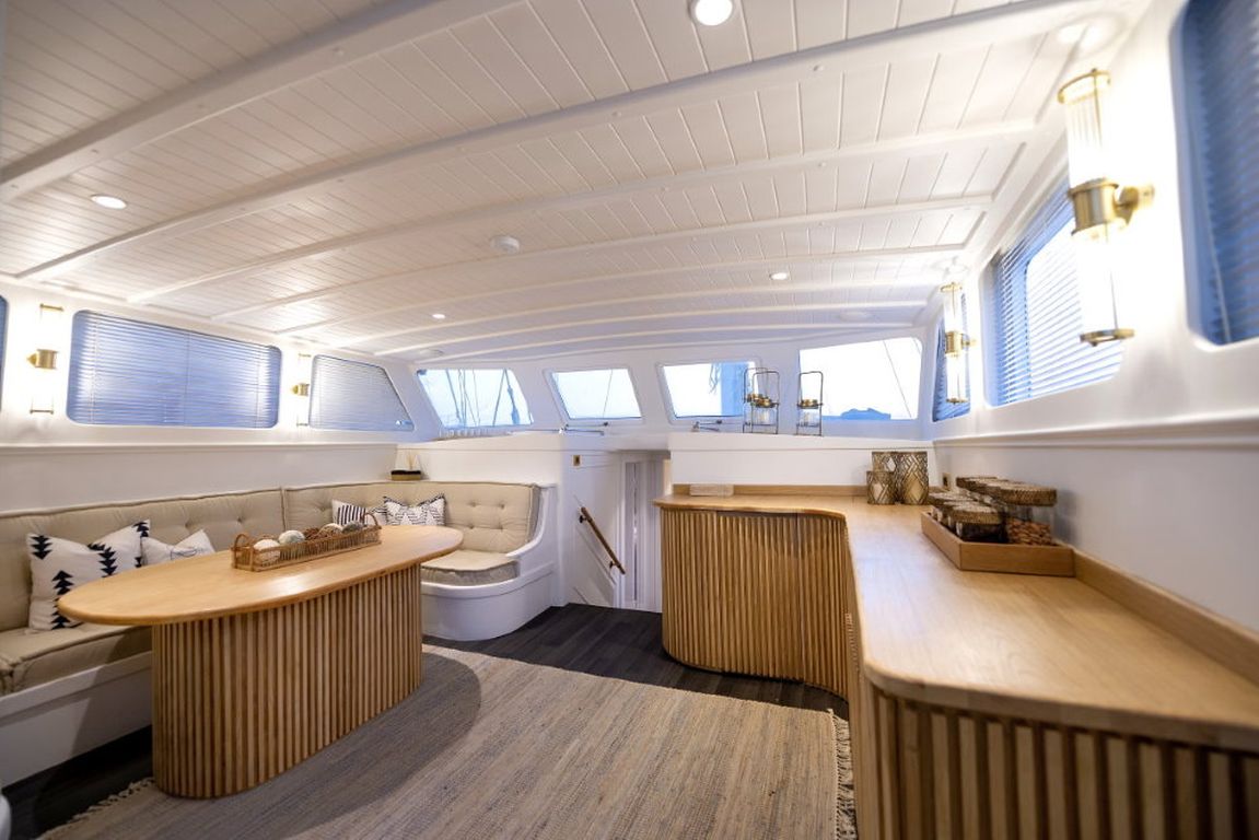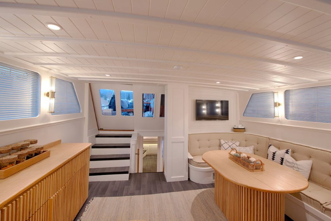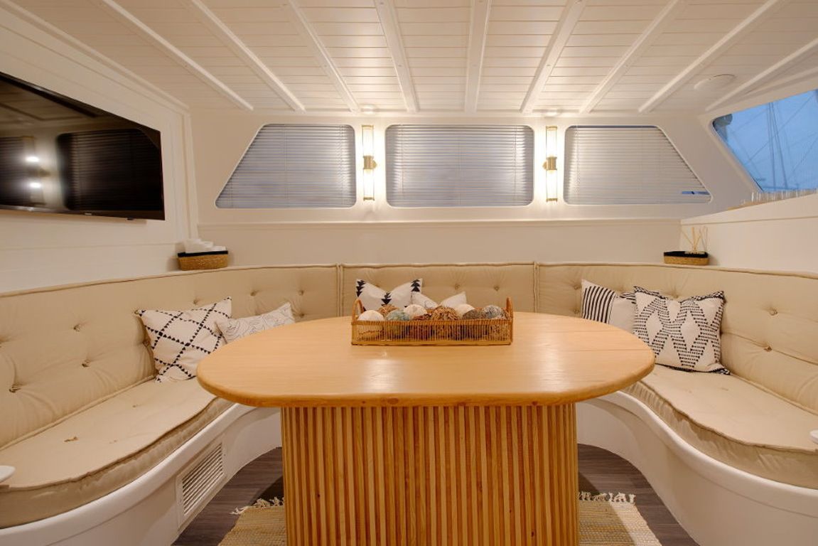 Das Deck bietet sowohl Entspannung als auch Möglichkeiten zum geselligen Beisammensein, darunter Sonnenliegen, schattige Sitzplätze und ein komfortables Achterdeck, das sich ideal für Mahlzeiten im Freien eignet. Im Inneren sorgen ein komfortabler Salon und eine voll ausgestattete Kombüse für ein angenehmes und komfortables Leben an Bord.