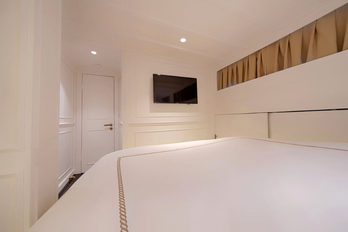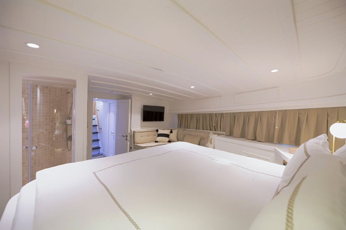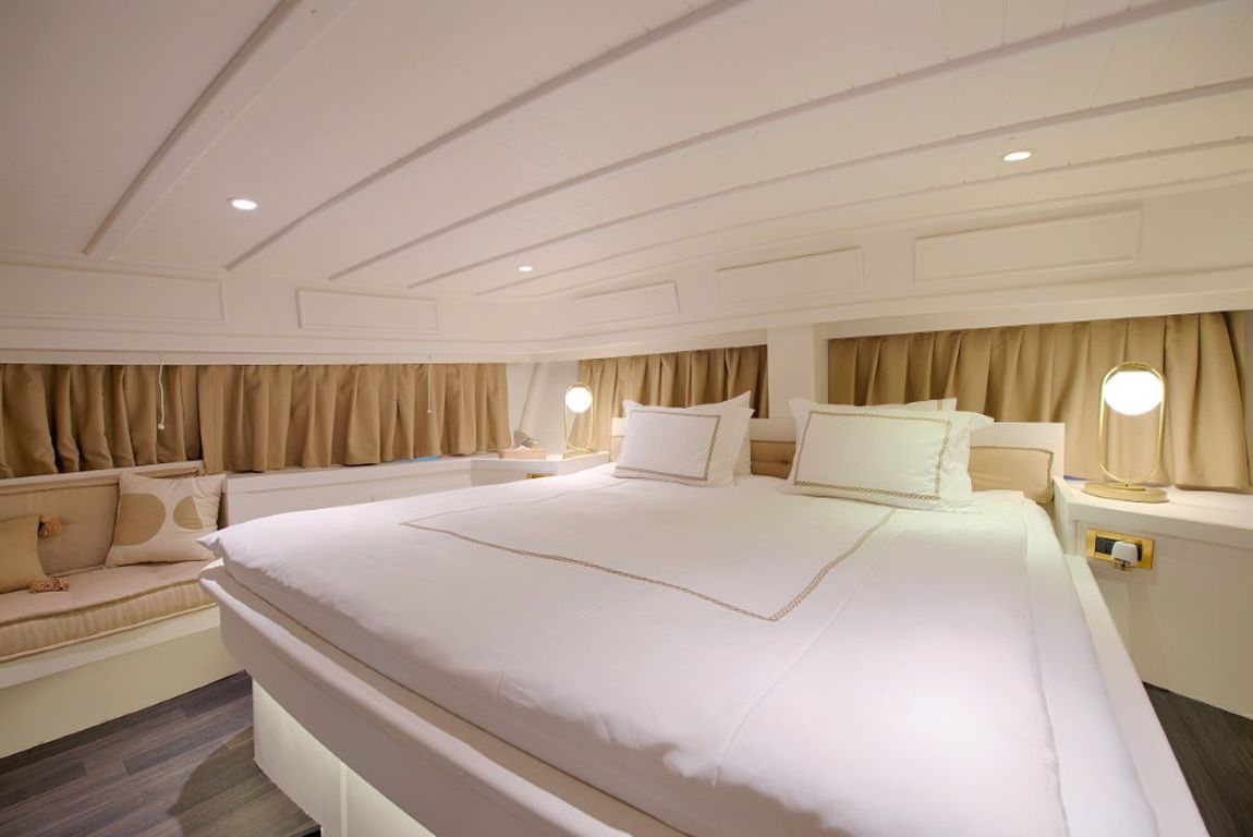 Die Gulet Liberte 11 ist eine 27 Meter lange traditionelle Gulet, die 1990 gebaut und 2018 renoviert wurde. Sie vereint klassischen Charme mit modernem Komfort. Das Schiff verfügt über vier Kabinen, darunter zwei Master-Kabinen und zwei Doppelkabinen, alle mit eigenem Bad, und bietet Platz für bis zu acht Gäste. Die Breite von 6,10 Metern sorgt für viel Platz im Schiff und an Deck.