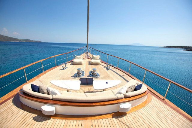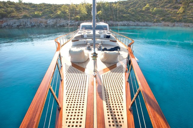 Es gibt ausreichend Sonnenkissen, Stühle und Serviersets für alle Gäste. Dank seiner vollwertigen Radio-, GSM-Telefon- und Navigationsausrüstung bietet die Gulet Miss B; Bodrum, Göcek, Marmaris, Fethiye usw. Sie können sicher zu unseren Zielen der Blauen Kreuzfahrt segeln.