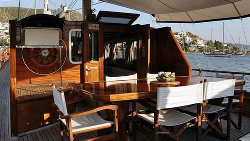 Unsere 21 m lange Gulet Neptun wurde 2010 gebaut. Unser Boot verfügt über 4 Doppelkabinen, jede stilvoller und komfortabler als die andere, mit eigener Dusche, WC und Klimaanlage. 4 Es gibt separate Wohnbereiche, eine voll ausgestattete Küche, Essbereiche drinnen und draußen sowie Ruhebereiche für die Crew.