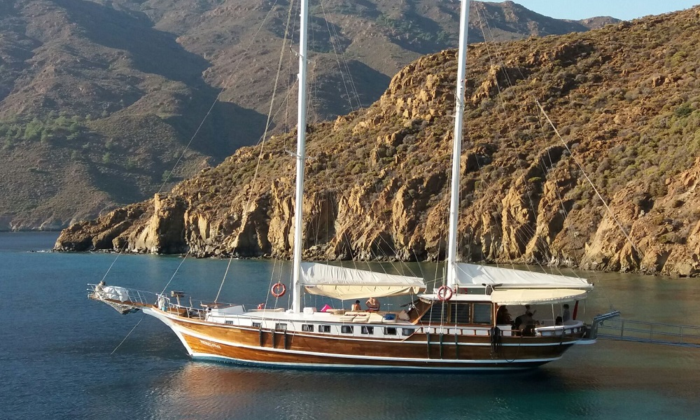 Unser 20 m langes Gulet Prenses Gulce wurde 2007 gebaut. Unser Boot verfügt über 4 Kabinen: 2 Master und 2 Double-Kabinen, jede stilvoller und komfortabler, mit eigener Dusche, WC und Klimaanlage. 3 Es gibt separate Wohnbereiche, eine voll ausgestattete Küche, Essbereiche im Innen- und Außenbereich sowie Ruhebereiche für die Besatzung. Es gibt ausreichend Sonnenkissen, Stühle und Serviersets für alle Gäste. Dank seiner vollwertigen Radio und GSM-Telefonnavigationsausrüstung können Sie mit dem Gulet Prenses Gulce sicher zu unseren Zielen der blauen Reise segeln: Bodrum, Göcek, Marmaris, Fethiye usw.