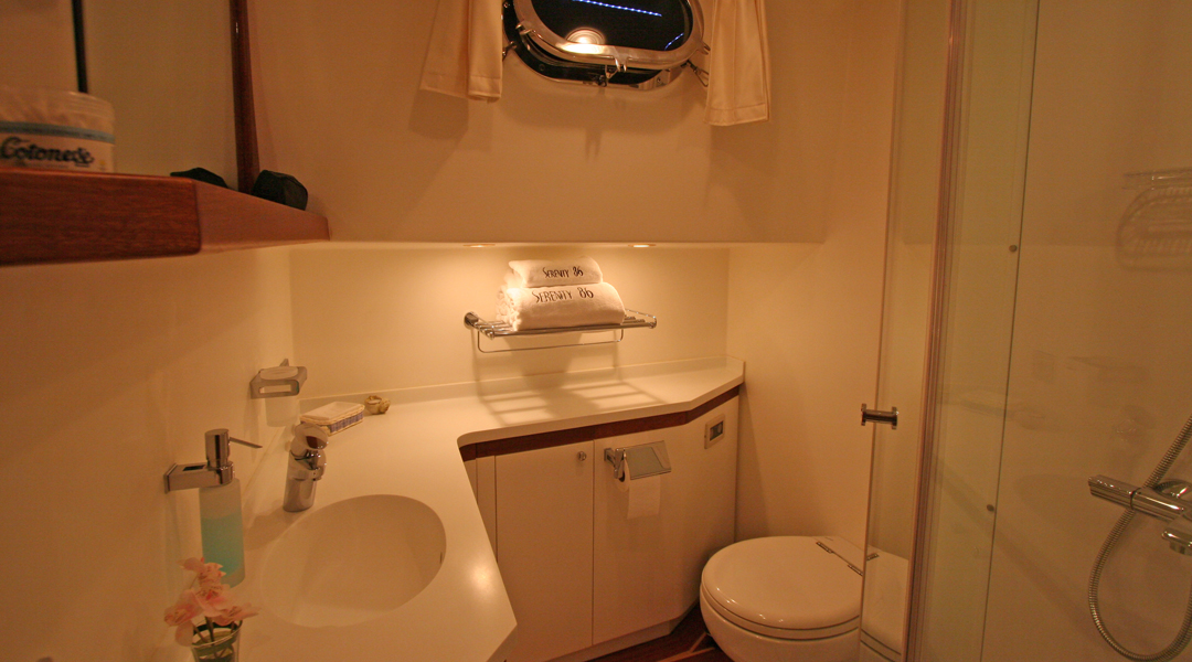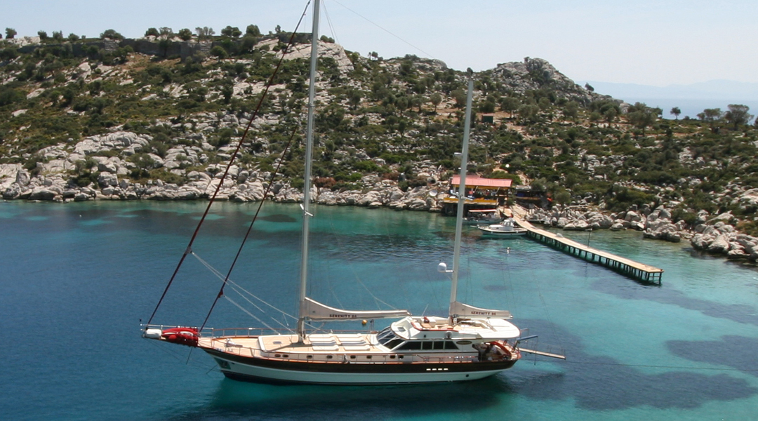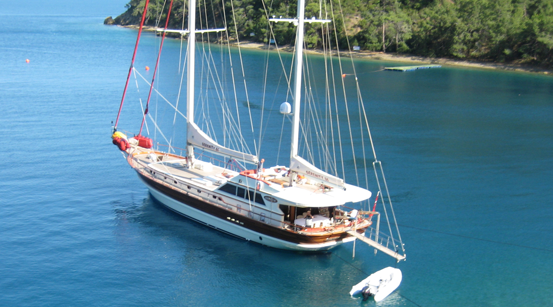 Unsere 30 m lange Gulet Serenity 86 wurde 2007 gebaut. Ihre endgültige Form erhielt sie mit der Renovierung und Sanierung im Jahr 2019. Unser Boot verfügt über 6 Kabinen, darunter 1 Master-, 3 Doppel- und 2 Zweibettkabinen, jede stilvoller und komfortabler, mit eigener Dusche, WC und Klimaanlage. 3 Es gibt separate Wohnbereiche, eine voll ausgestattete Küche, Essbereiche im Innen- und Außenbereich sowie Ruhebereiche für die Crew.