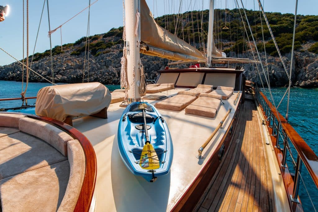 und Windsurfen stehen unseren Gästen auf Wunsch optional zur Verfügung. Unser Boot, Sani Kaptan, bietet unseren Passagieren, die die Blaue Reise in den unberührten Buchten der Türkei