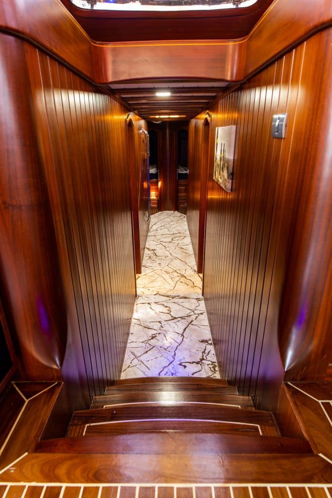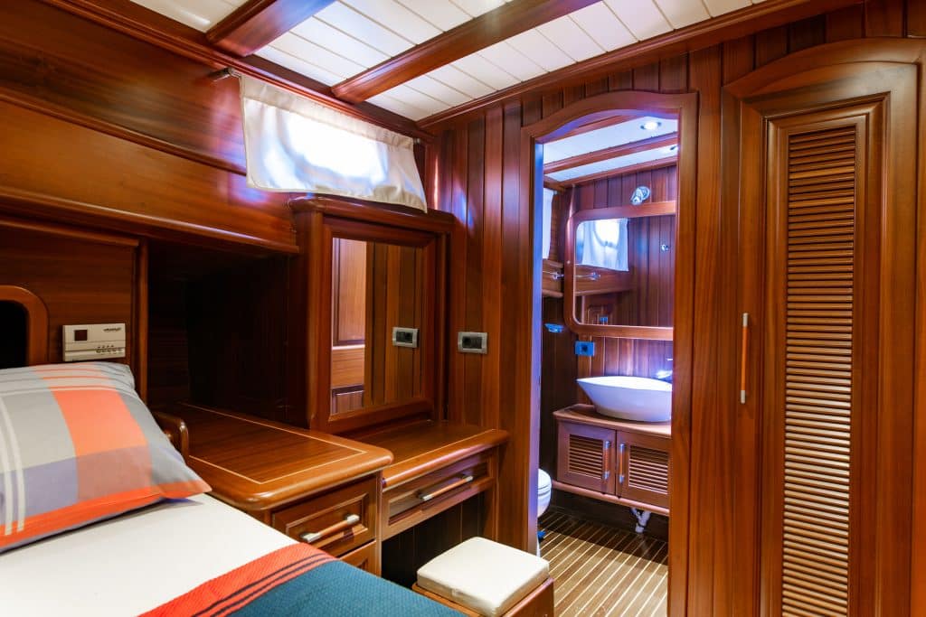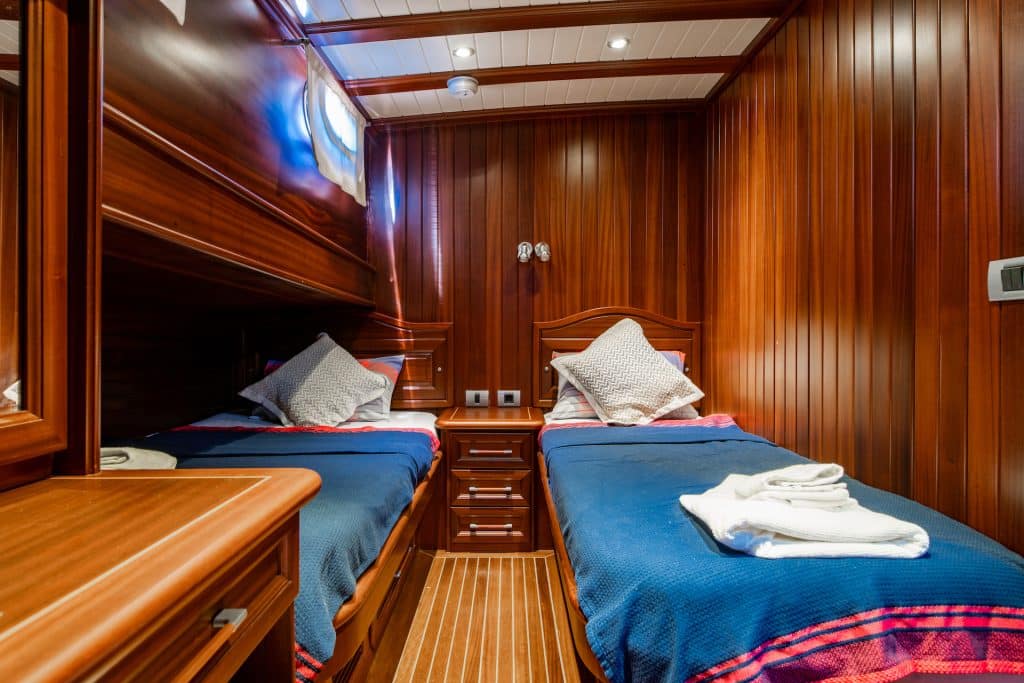 Unser 24 m langes Gulet Sani Kaptan wurde 2006 gebaut. Seine endgültige Form erhielt es mit der Renovierung und Sanierung im Jahr 2020. Unser Boot verfügt über 4 Kabinen,