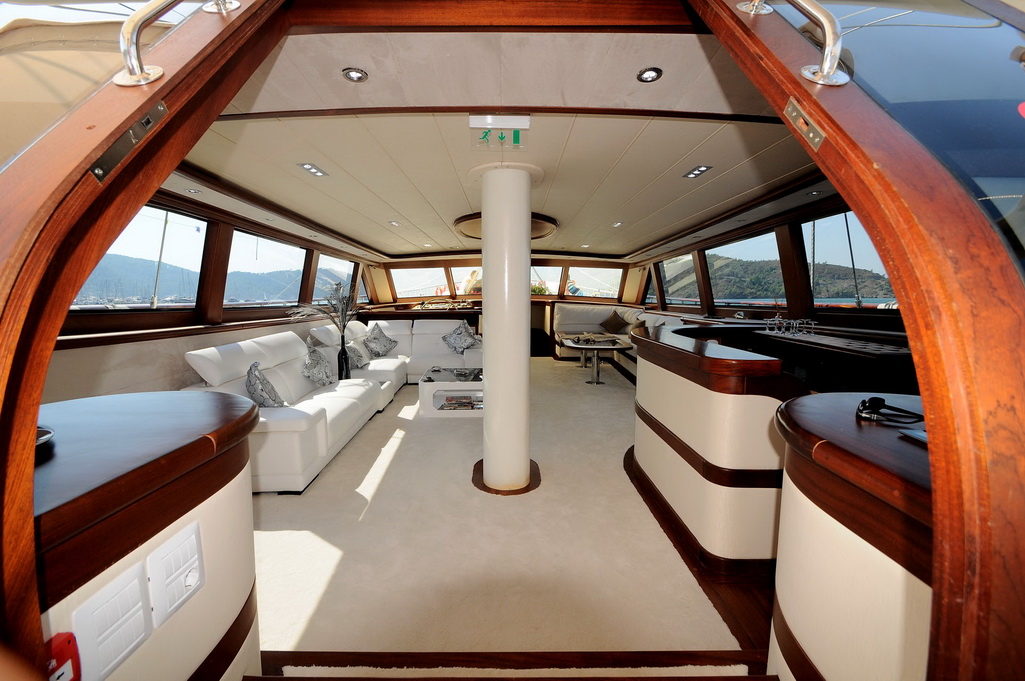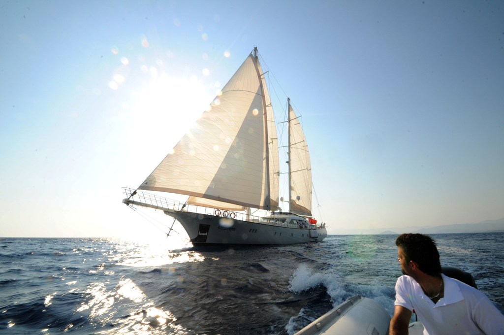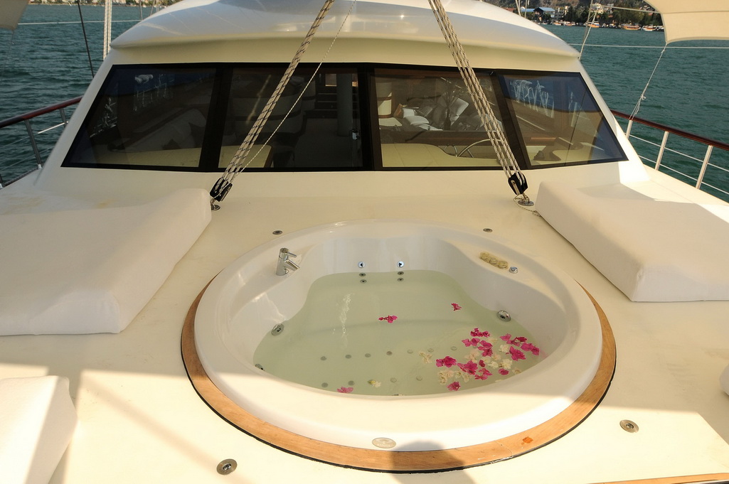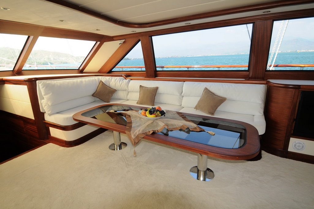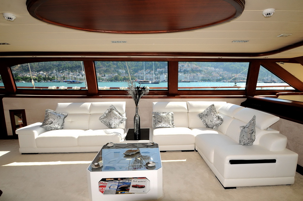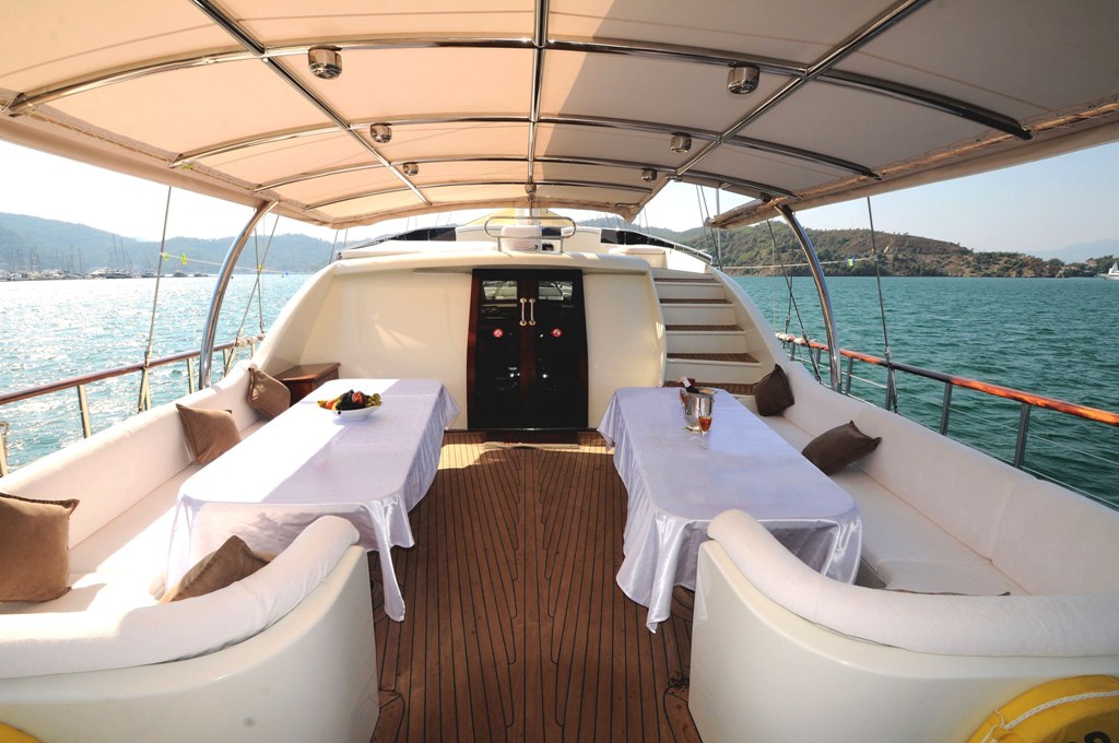 Unser 40 m langes Gulet Alessandro wurde 2011 gebaut. Unser Boot verfügt über 5 Kabinen, darunter 1 VIP-, 3 Master- und 1 Twin-Kabine, jede stilvoller und komfortabler, mit eigener Dusche, WC und Klimaanlage. 6 Es gibt separate Wohnbereiche, eine voll ausgestattete Küche, Essbereiche im Innen- und Außenbereich sowie Ruhebereiche für die Besatzung. Es gibt ausreichend Sonnenkissen, Stühle und Serviersets für alle Gäste. Gulet Alessandro verfügt dank seiner vollwertigen Radio-, GSM-Telefon-Navigationsausrüstung; Bodrum, Göcek, Marmaris, Fethiye usw. Sie können sicher zu unseren Zielen der Blauen Kreuzfahrt segeln.