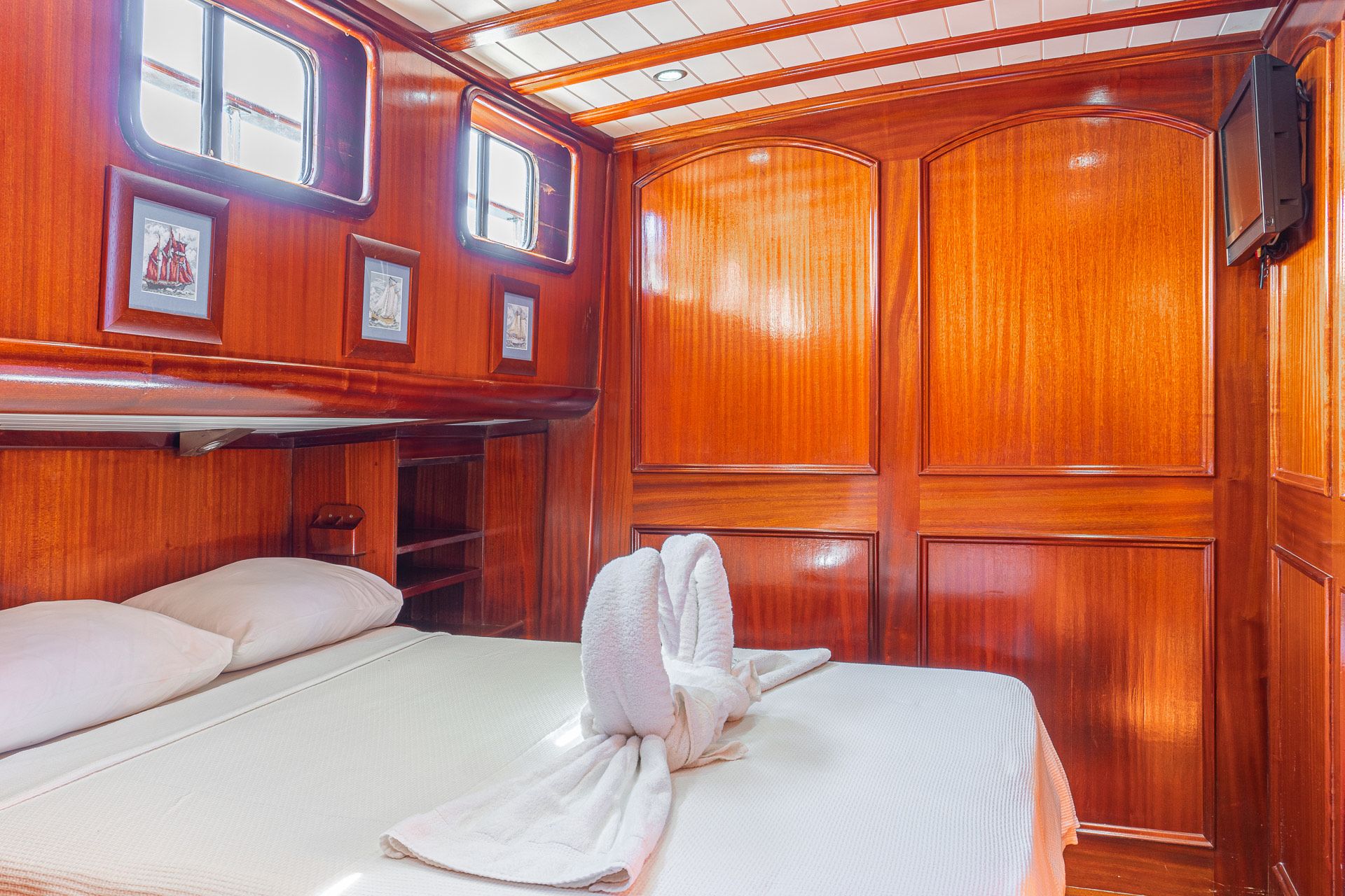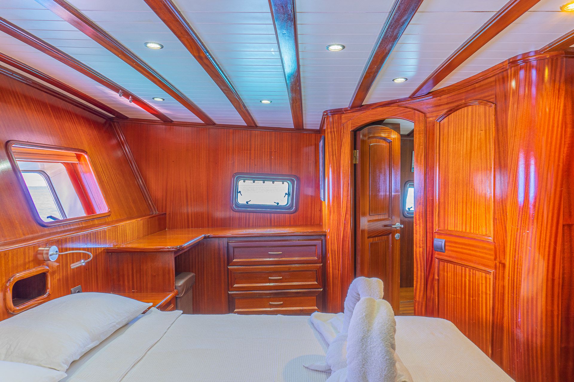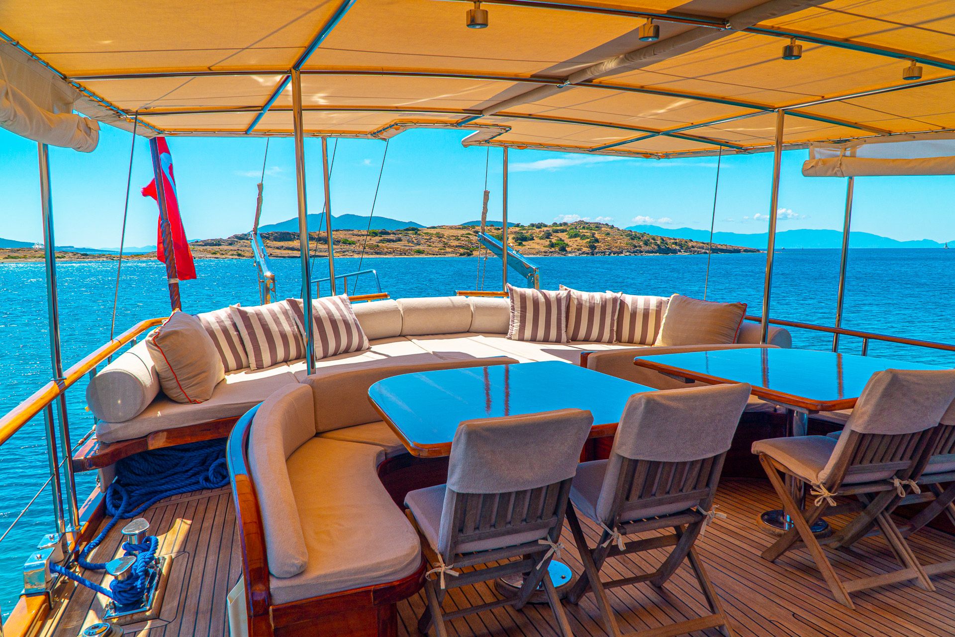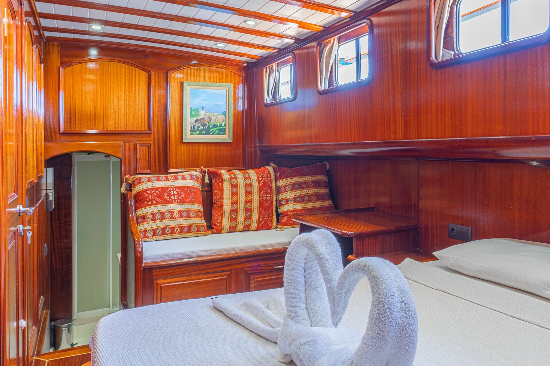 Unser 19 m langes Gulet Avrasya wurde 1994 gebaut. Seine endgültige Form erhielt es mit der Renovierung und Sanierung, die es 2018 durchlief. Unser Boot verfügt über 5 Kabinen Doppel, jede stilvoller und komfortabler als die andere, mit eigener Dusche, WC und Klimaanlage. 4 Es gibt separate Wohnbereiche, eine voll ausgestattete Küche, Essbereiche im Innen- und Außenbereich sowie Ruhebereiche für die Besatzung. Es gibt ausreichend Sonnenkissen, Stühle und Serviersets für alle Gäste. Gulet Avrasya verfügt dank seiner vollwertigen Radio-, GSM-Telefon- und Navigationsausrüstung; Bodrum, Göcek, Marmaris, Fethiye usw. Sie können sicher zu unseren Zielen der Blauen Kreuzfahrt segeln.