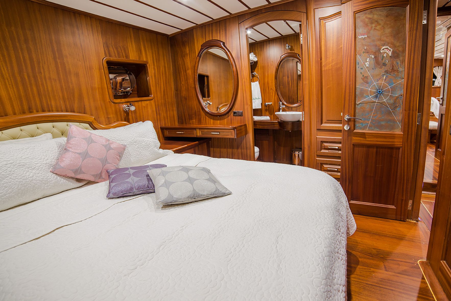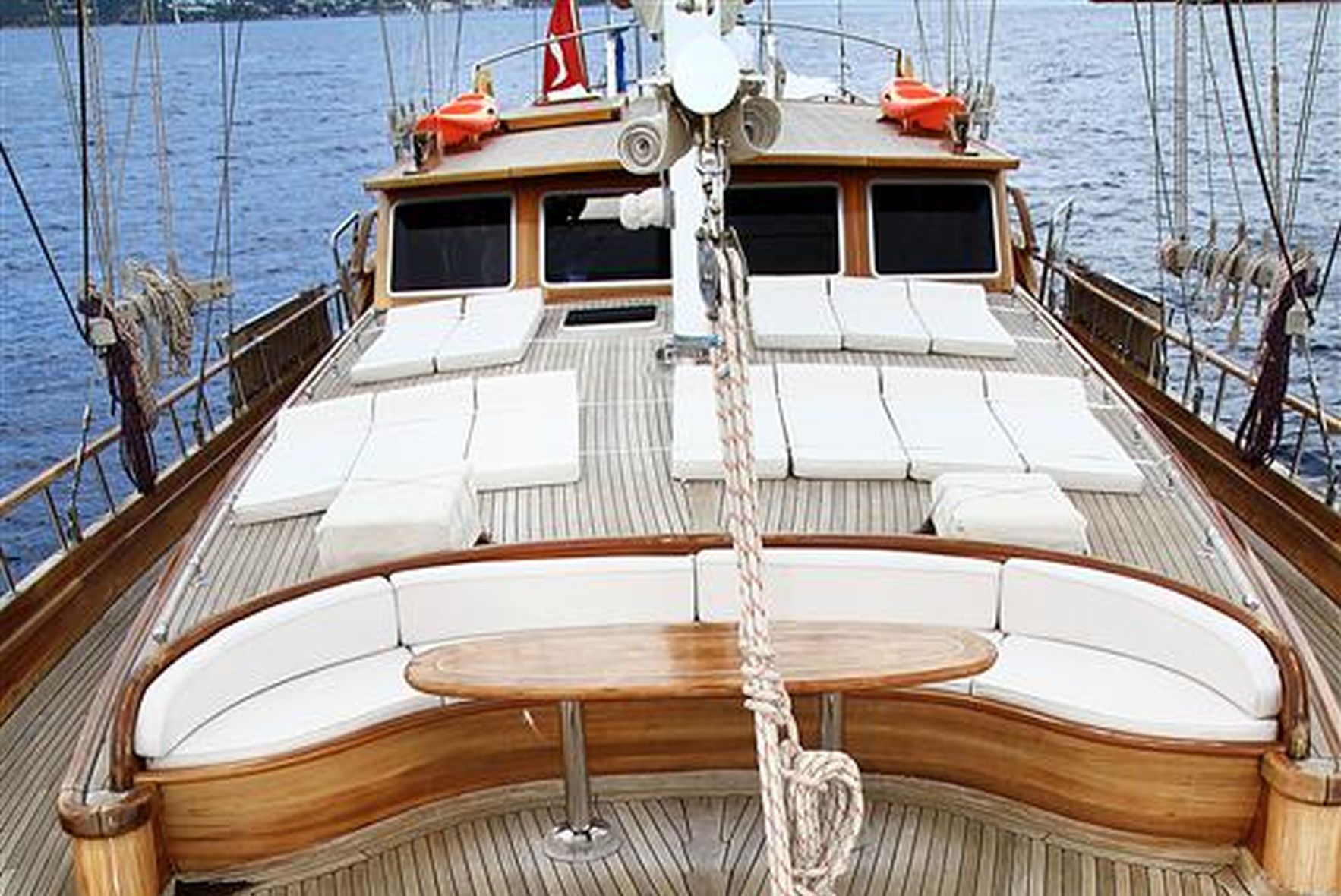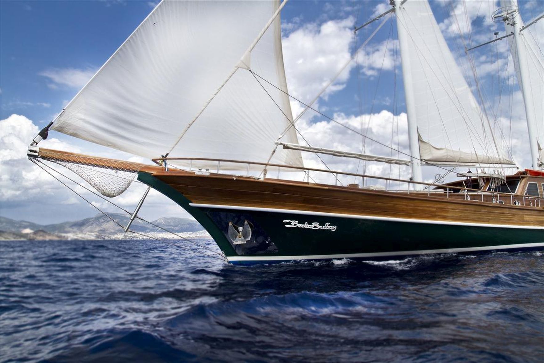 Unser 35 m langes Gulet Bedia Sultan wurde 2008 gebaut. Unser Boot verfügt über 5 Kabinen, 2 Master- und 3 Doppelkabinen, jede stilvoller und komfortabler als die andere, mit eigener Dusche, WC und Klimaanlage. 5 Es gibt separate Wohnbereiche, eine voll ausgestattete Küche, Essbereiche im Innen- und Außenbereich sowie Ruhebereiche für die Besatzung. Es gibt ausreichend Sonnenkissen, Stühle und Serviersets für alle Gäste. Gulet Bedia Sultan verfügt dank seiner vollwertigen Wireless-, GSM-Telefon- und Navigationsausrüstung; Bodrum, Göcek, Marmaris, Fethiye usw. Sie können sicher zu unseren Zielen der Blauen Kreuzfahrt segeln.