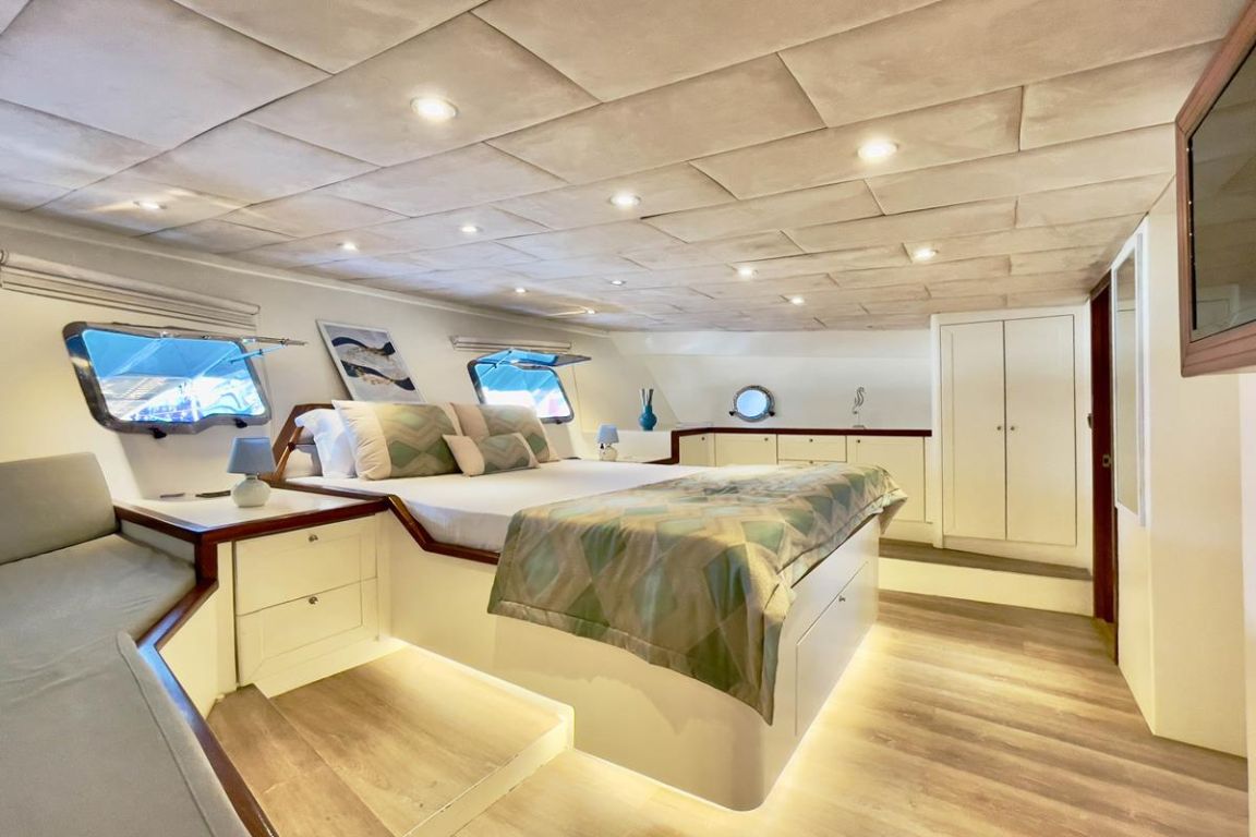 Unser 24 m langes Gulet Derya Deniz wurde 2008 gebaut. Seine endgültige Form erhielt es mit der Renovierung und Sanierung, die es 2021 durchlief. Unser Boot verfügt über 5 Kabinen, 2 Master- und 3 Doppelkabinen, jede stilvoller und komfortabler als die andere, mit eigener Dusche, WC und Klimaanlage. 4 Es gibt separate Wohnbereiche, eine voll ausgestattete Küche, Essbereiche im Innen- und Außenbereich sowie Ruhebereiche für die Crew. Es gibt ausreichend Sonnenkissen, Stühle und Serviersets für alle Gäste. Gulet Derya Deniz verfügt dank seiner vollwertigen Radio-, GSM-Telefon- und Navigationsausrüstung; Bodrum, Göcek, Marmaris, Fethiye usw. Sie können sicher zu unseren Zielen der Blauen Kreuzfahrt segeln.